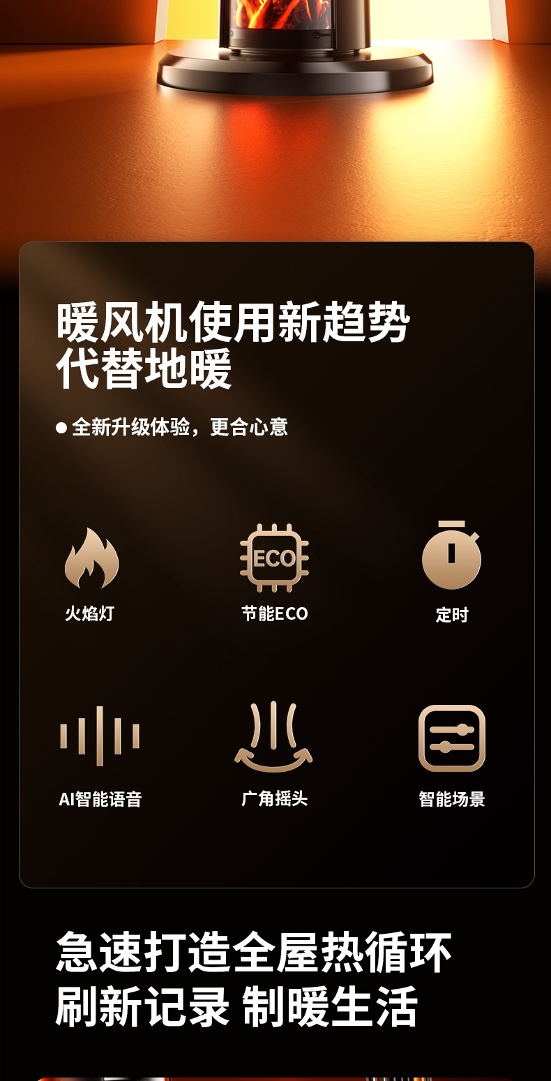 电暖取暖器家用电暖气烤火炉大面积热风节能取暖全屋即热式暖风机
