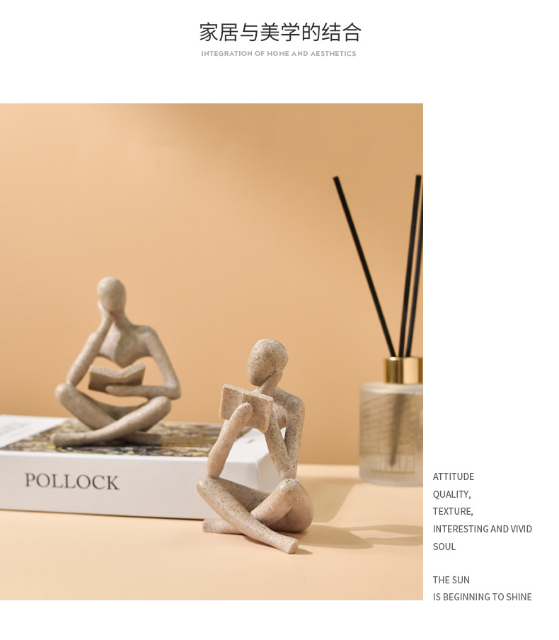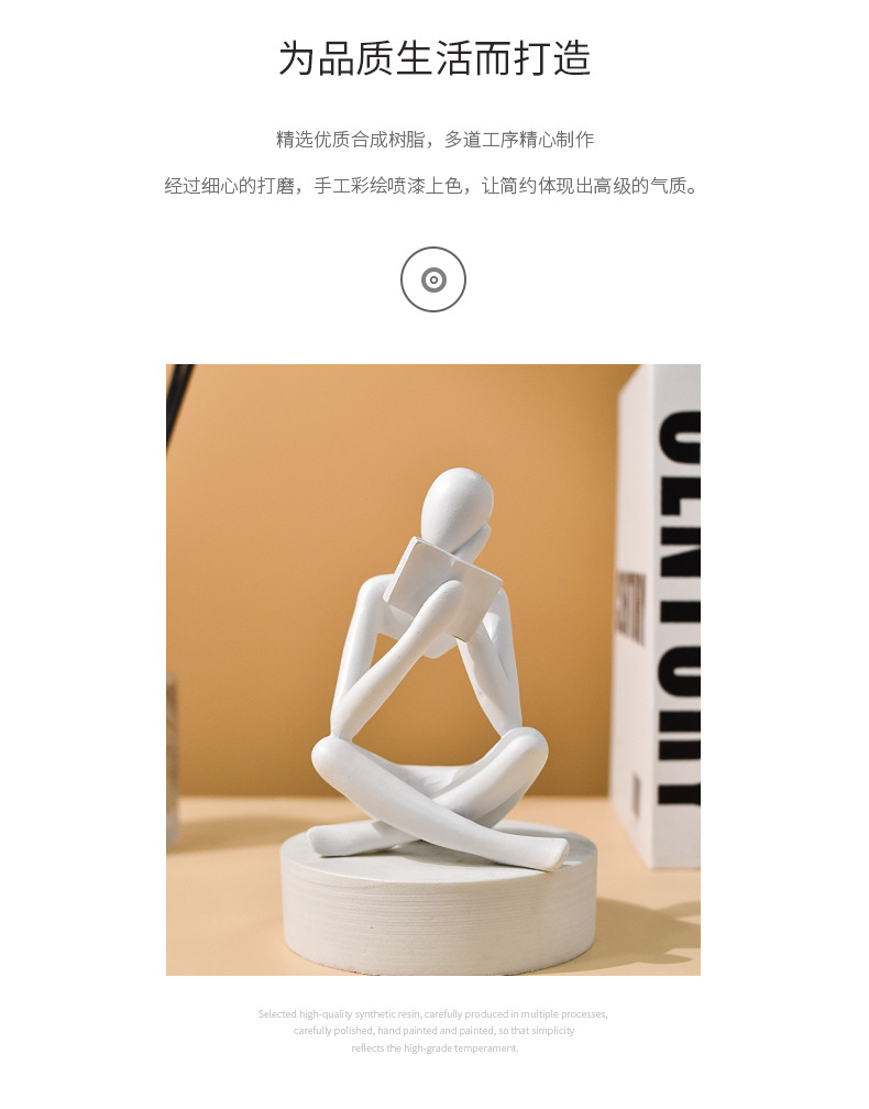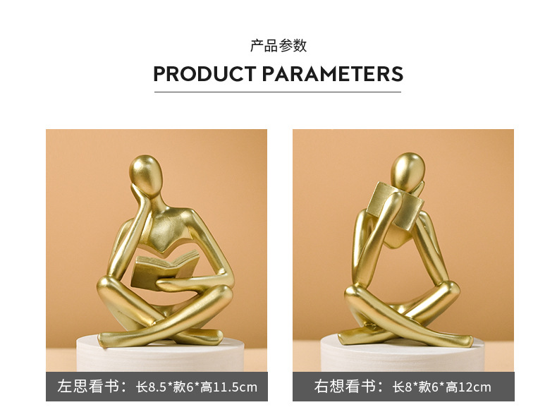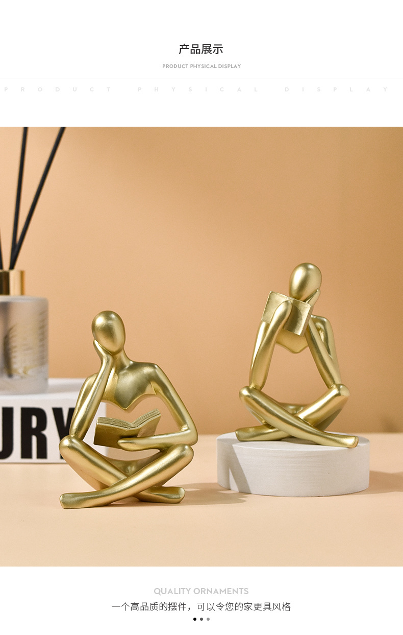 亚马逊爆款抽象看书人物雕像家居客厅书架桌面树脂工艺品装饰摆件