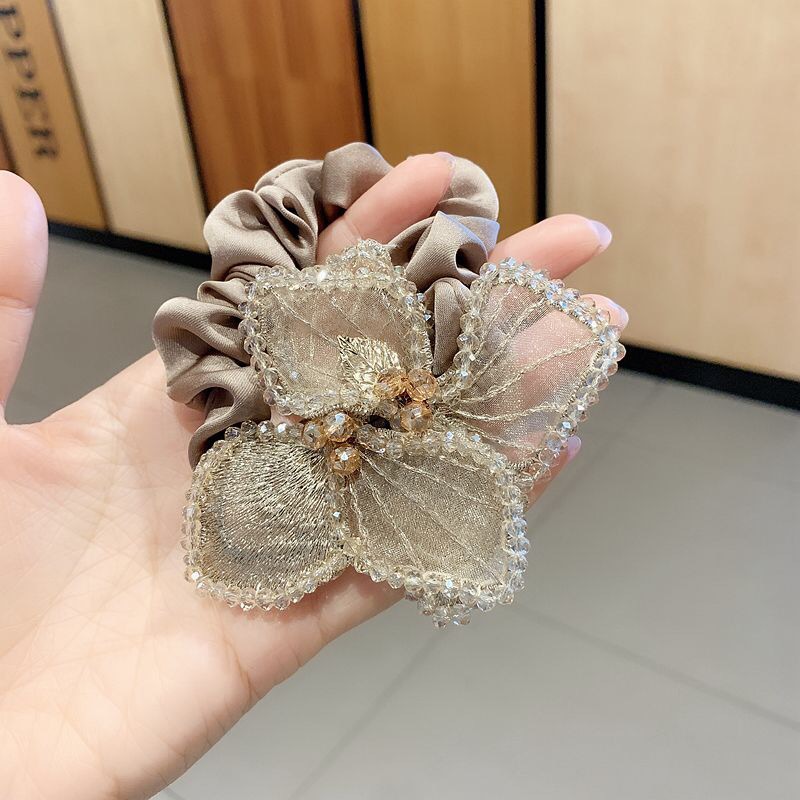花桥饰品重工水晶刺绣花朵发圈盘发马尾皮筋优雅扎头发绳发饰
