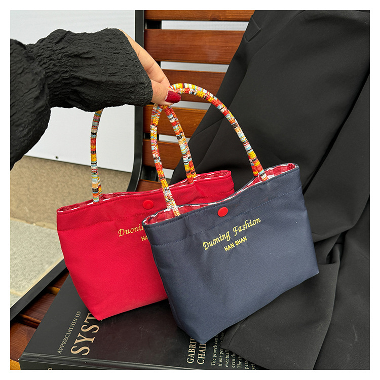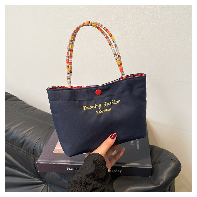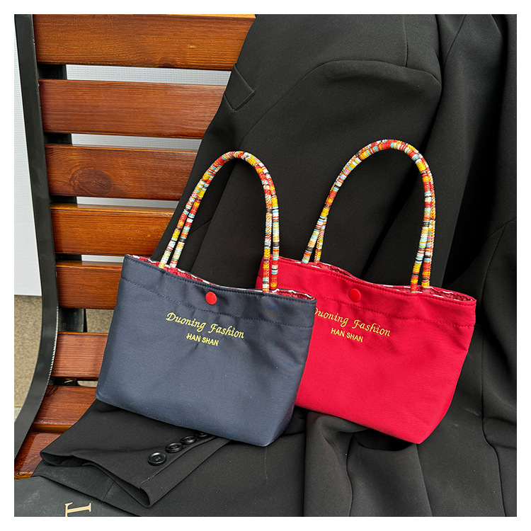 跨境新款包包大容量女简约双面手提帆布包休闲时尚小众韩系单肩包