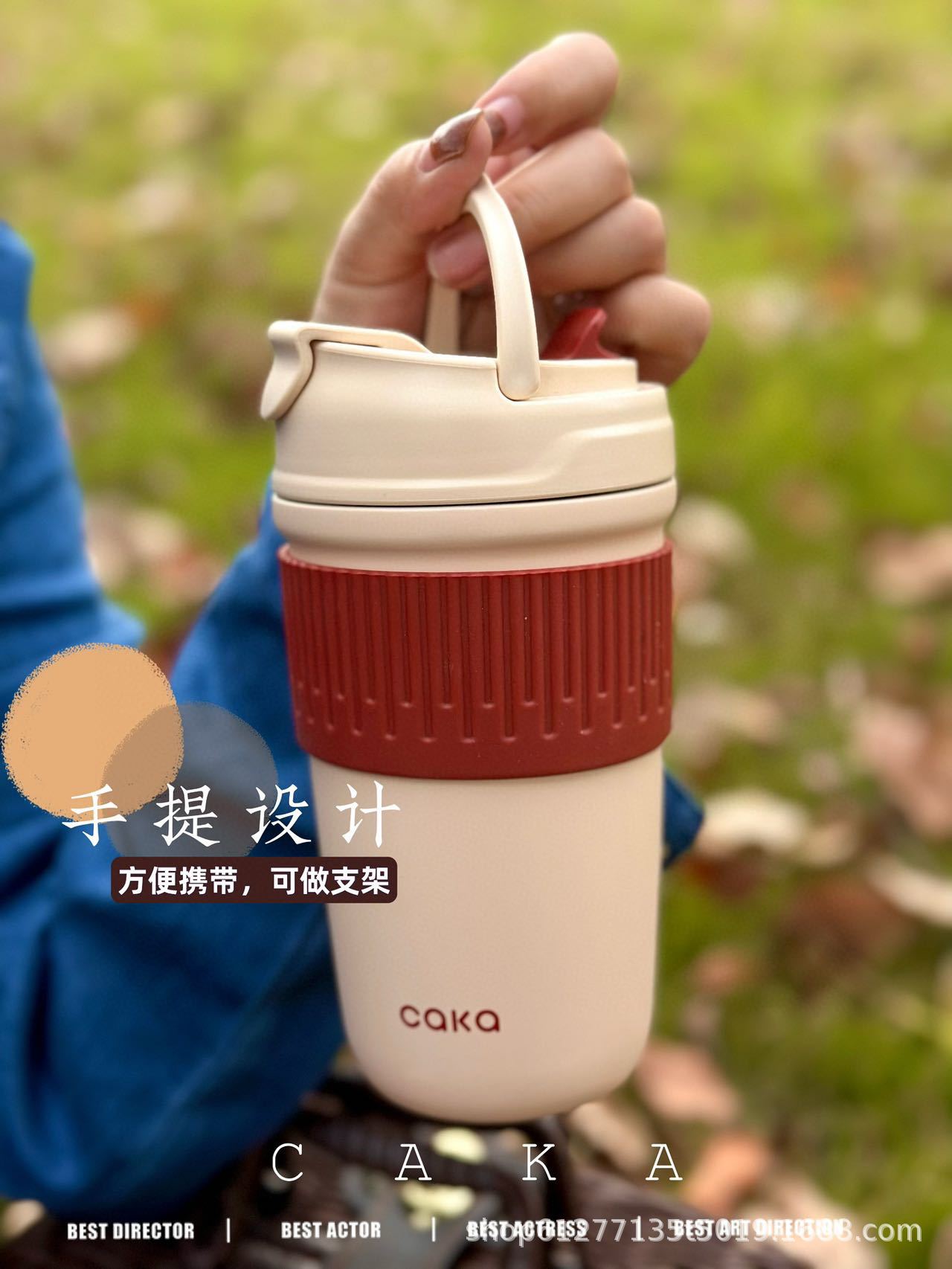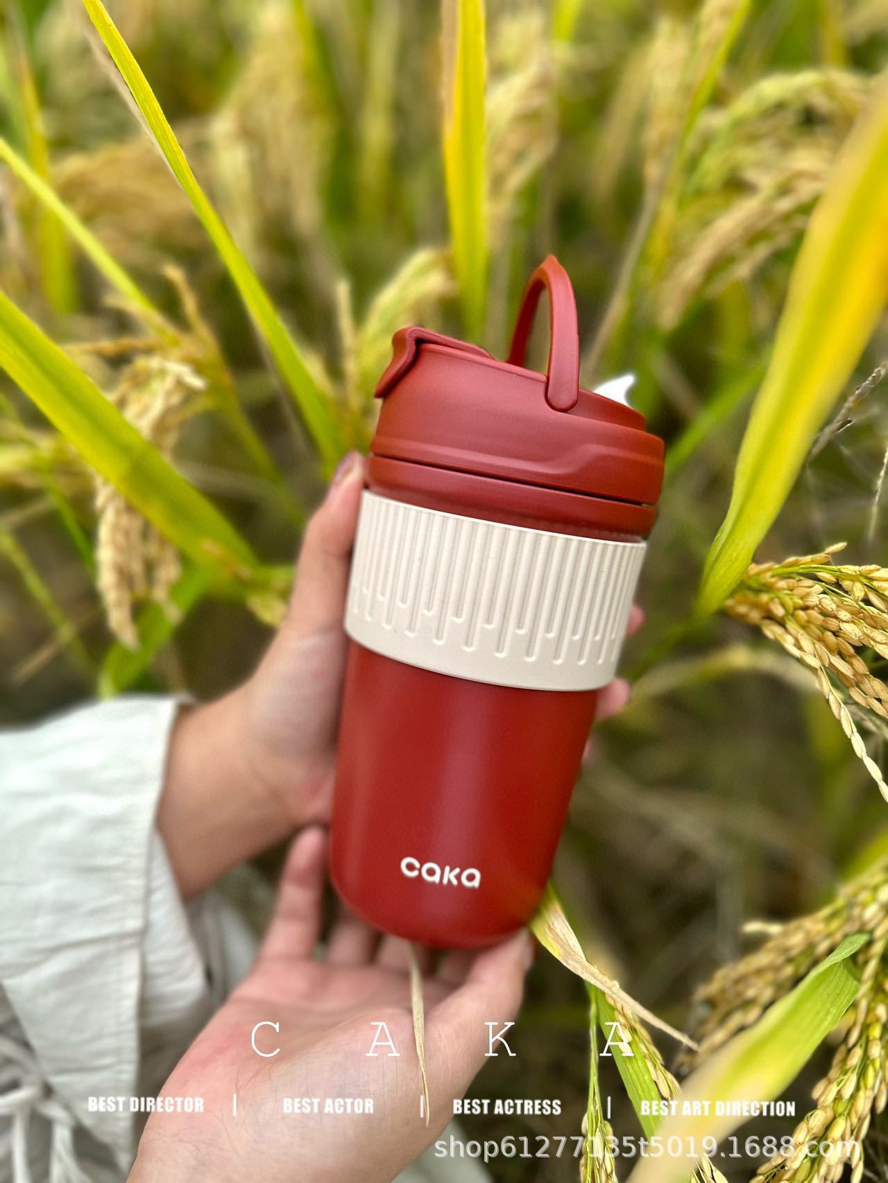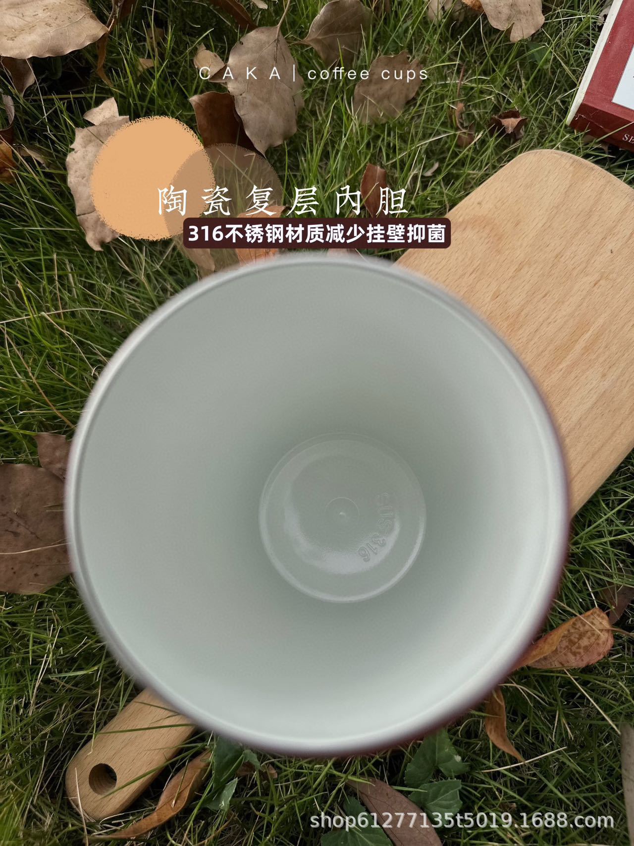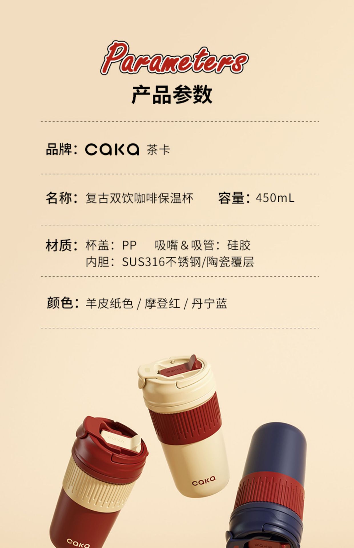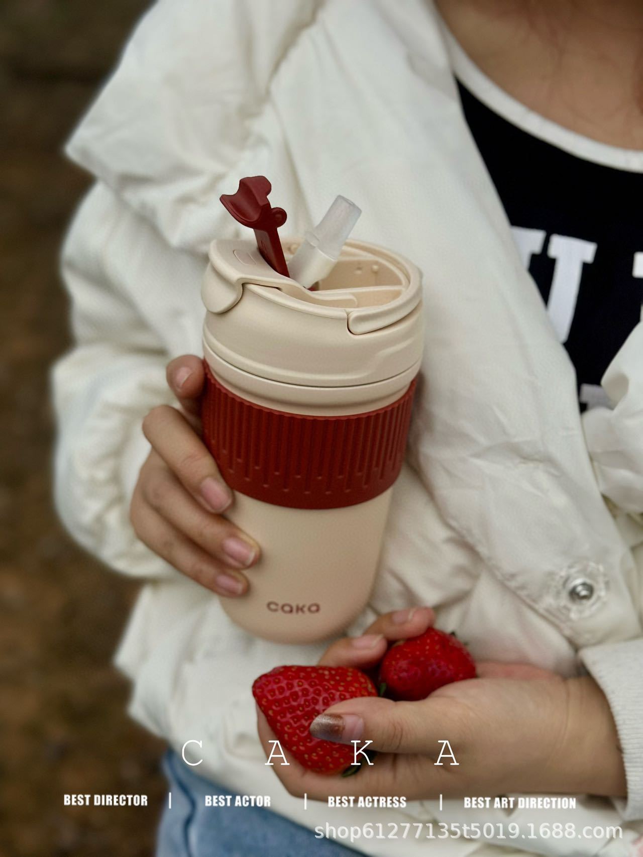 caka复古吸管双饮陶瓷保温杯男女学生高颜值随行简约便携咖啡水杯