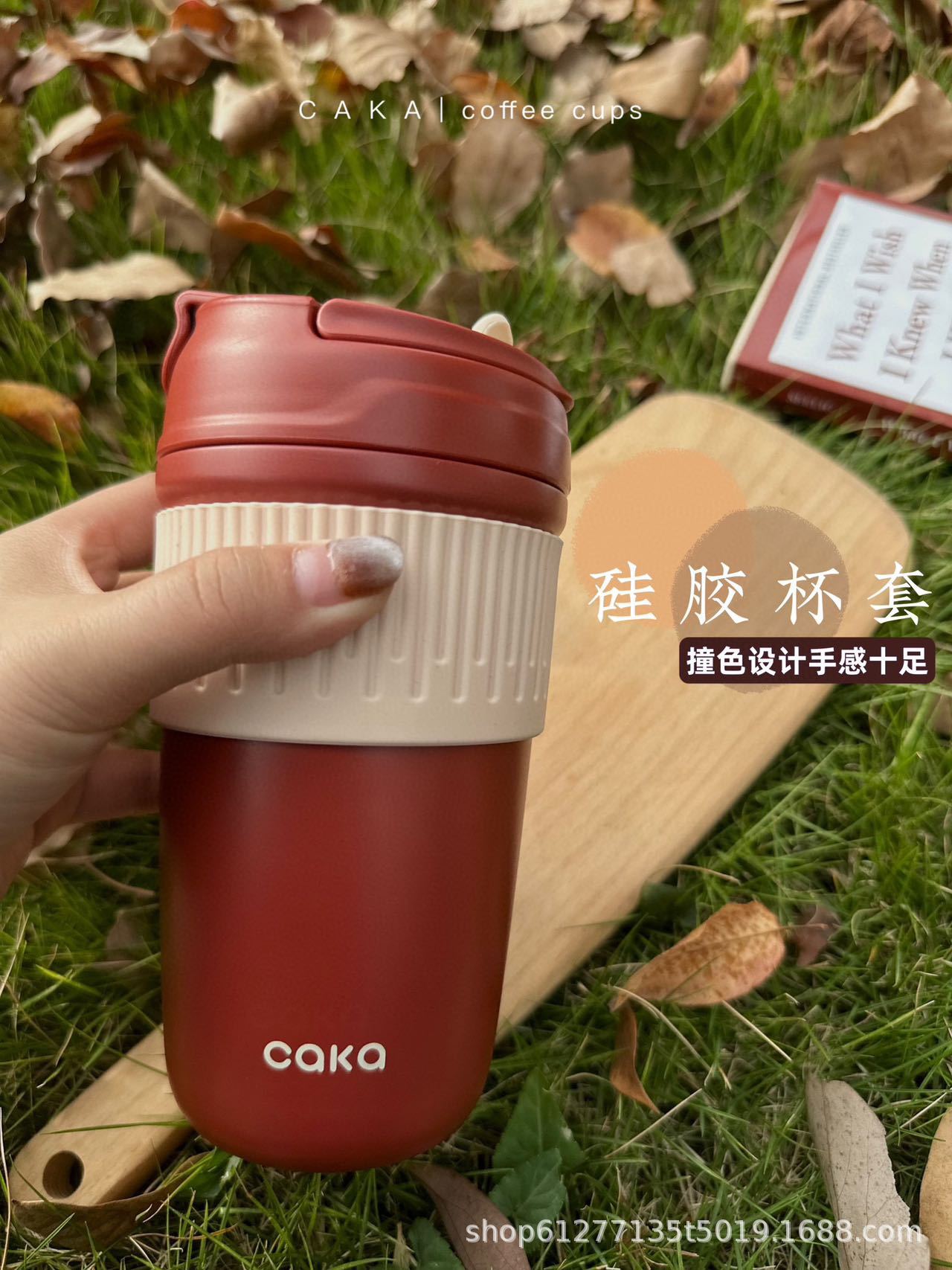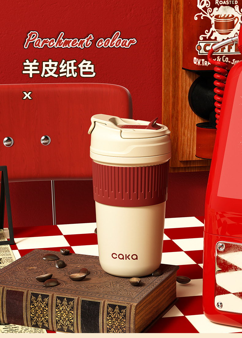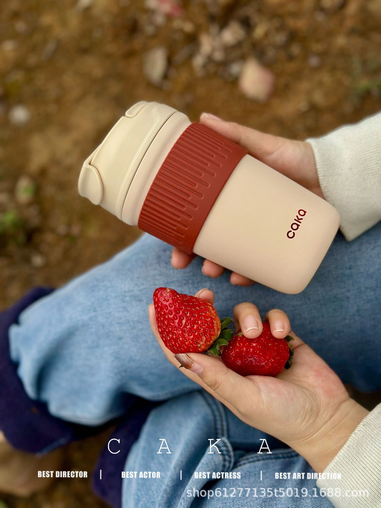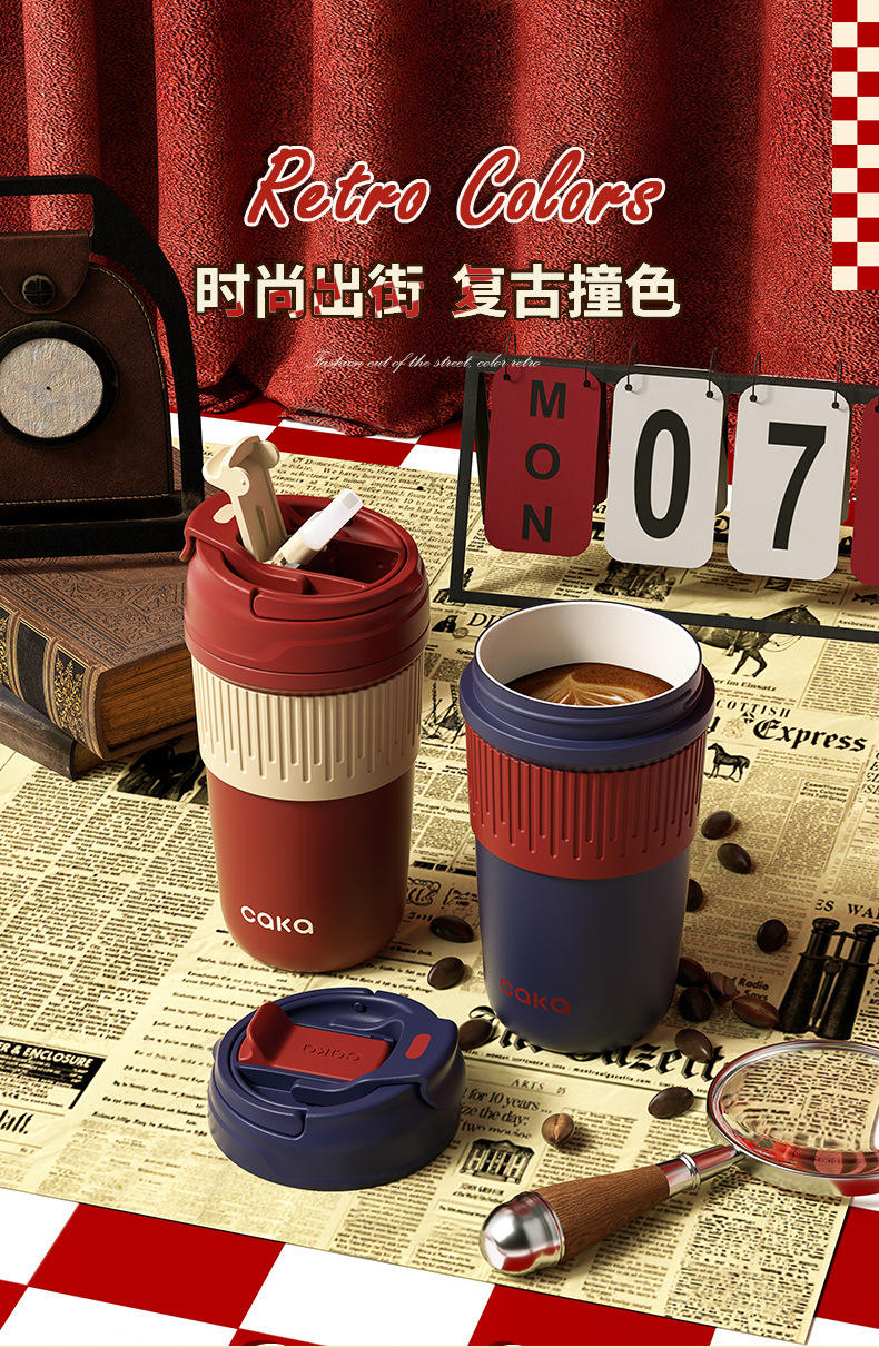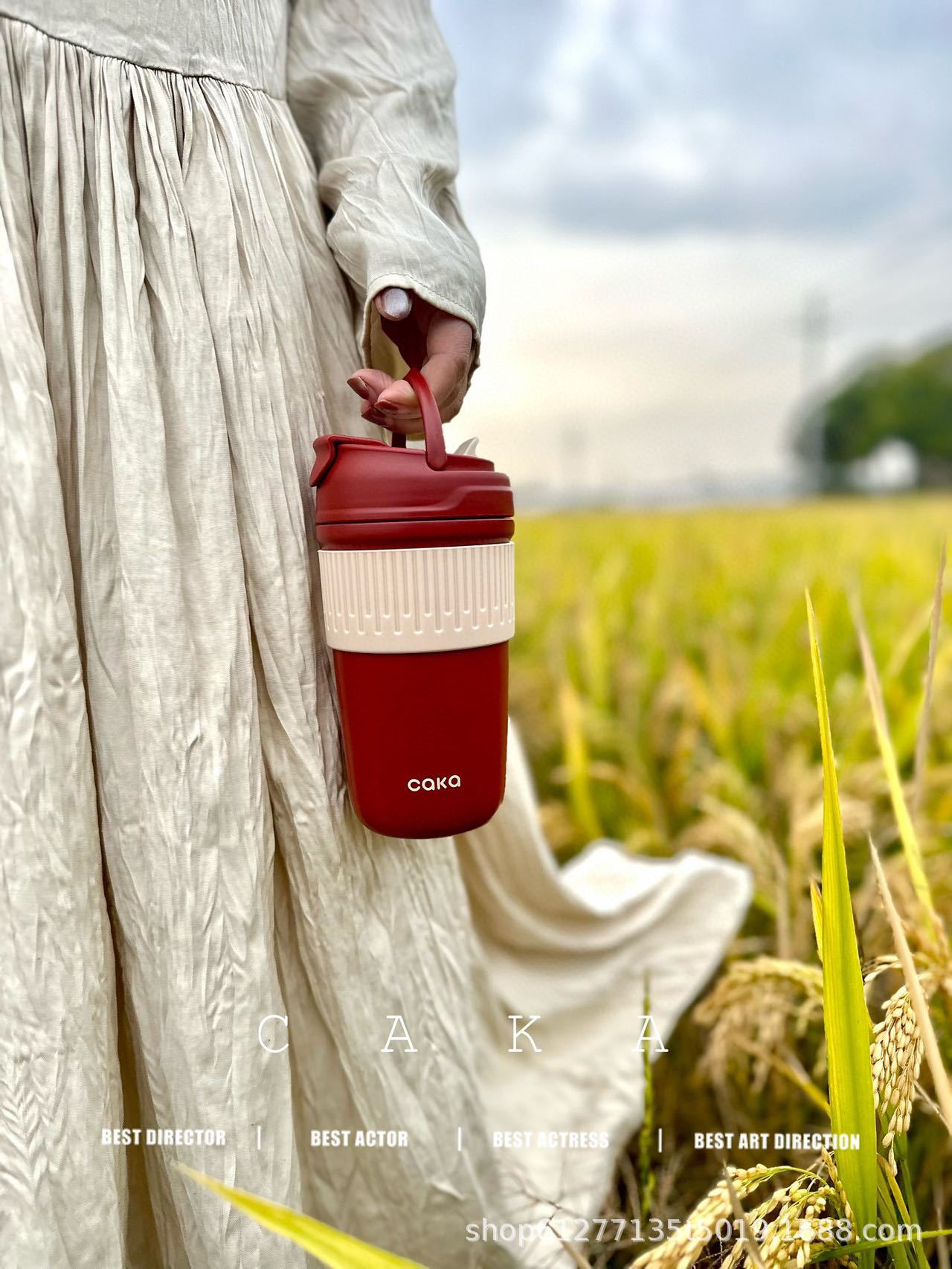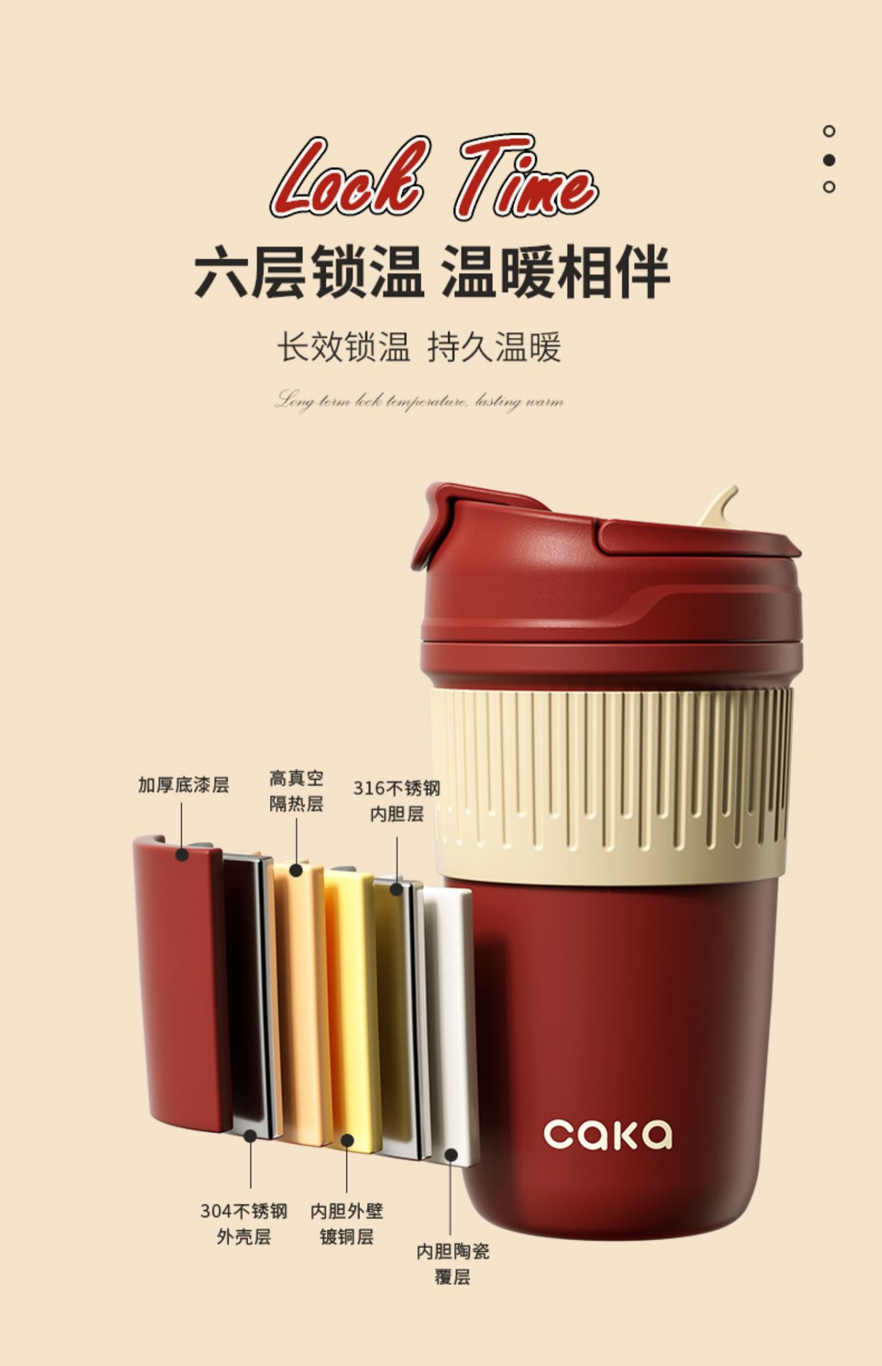 caka复古吸管双饮陶瓷保温杯男女学生高颜值随行简约便携咖啡水杯
