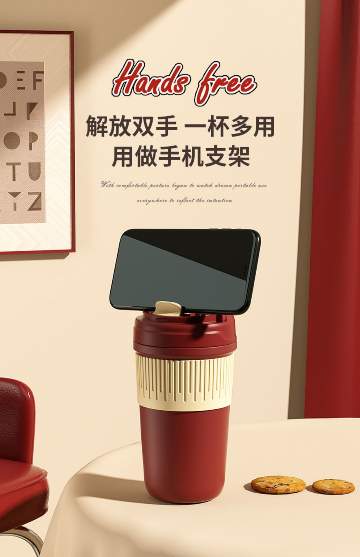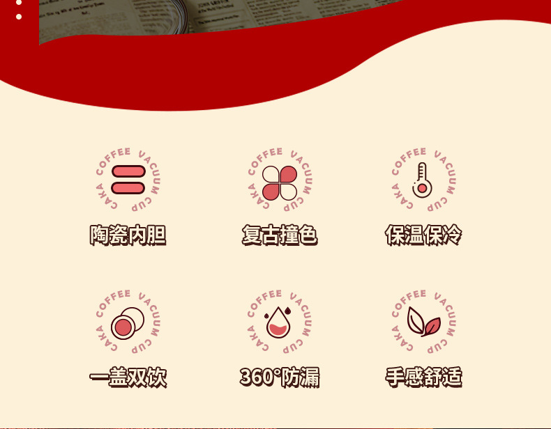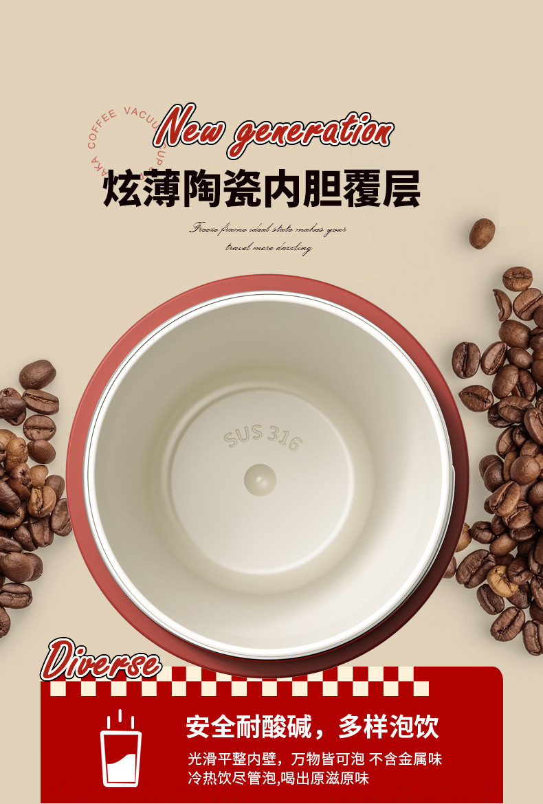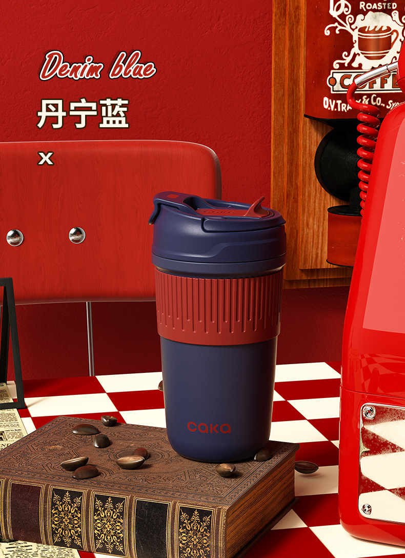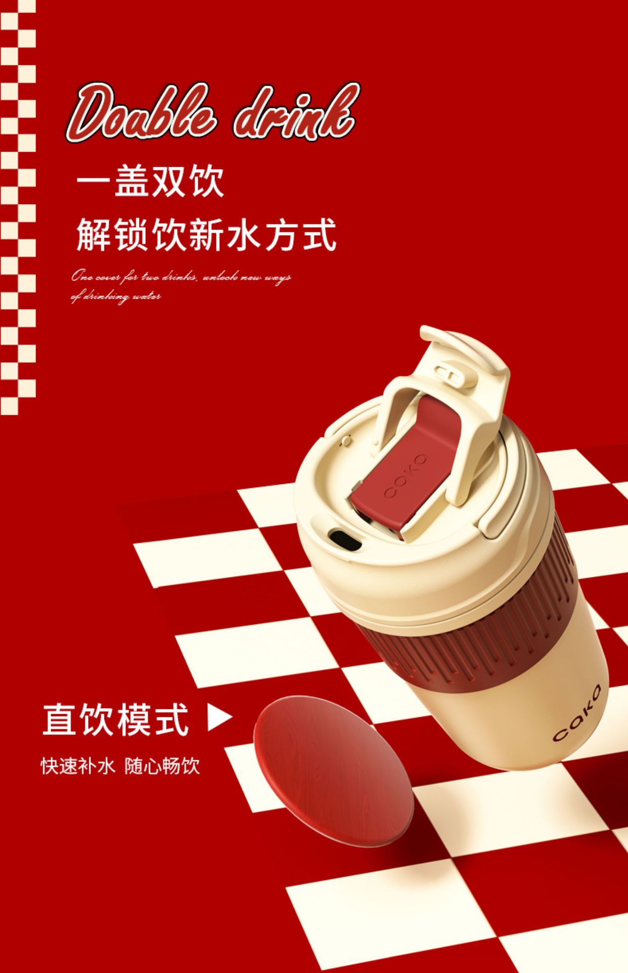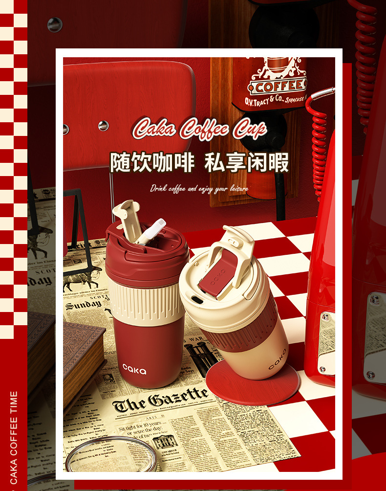 caka复古吸管双饮陶瓷保温杯男女学生高颜值随行简约便携咖啡水杯