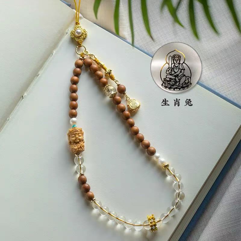 新款天然檀木水晶手机链本命年本命像防丢小众设计文艺女防丢挂绳