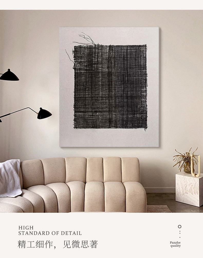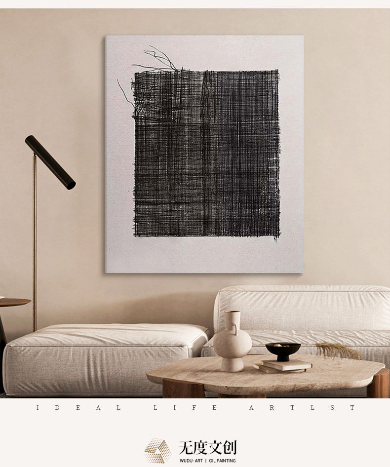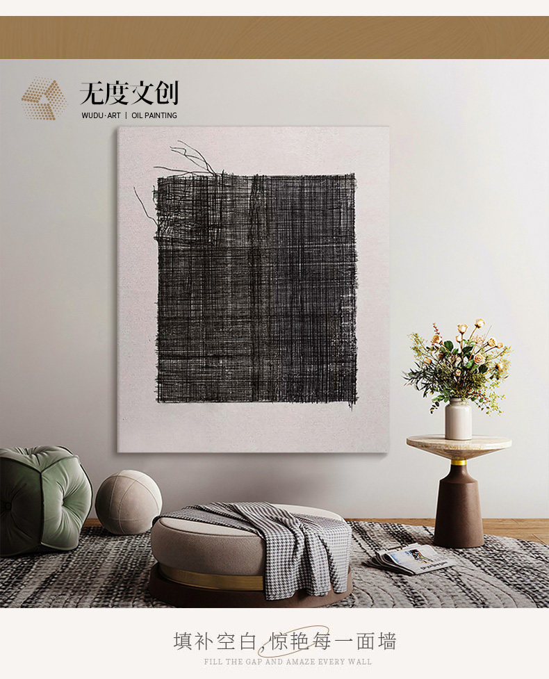 抽象黑白色块手绘玄关肌理装饰画办公室意式极简油画壁画客厅挂画