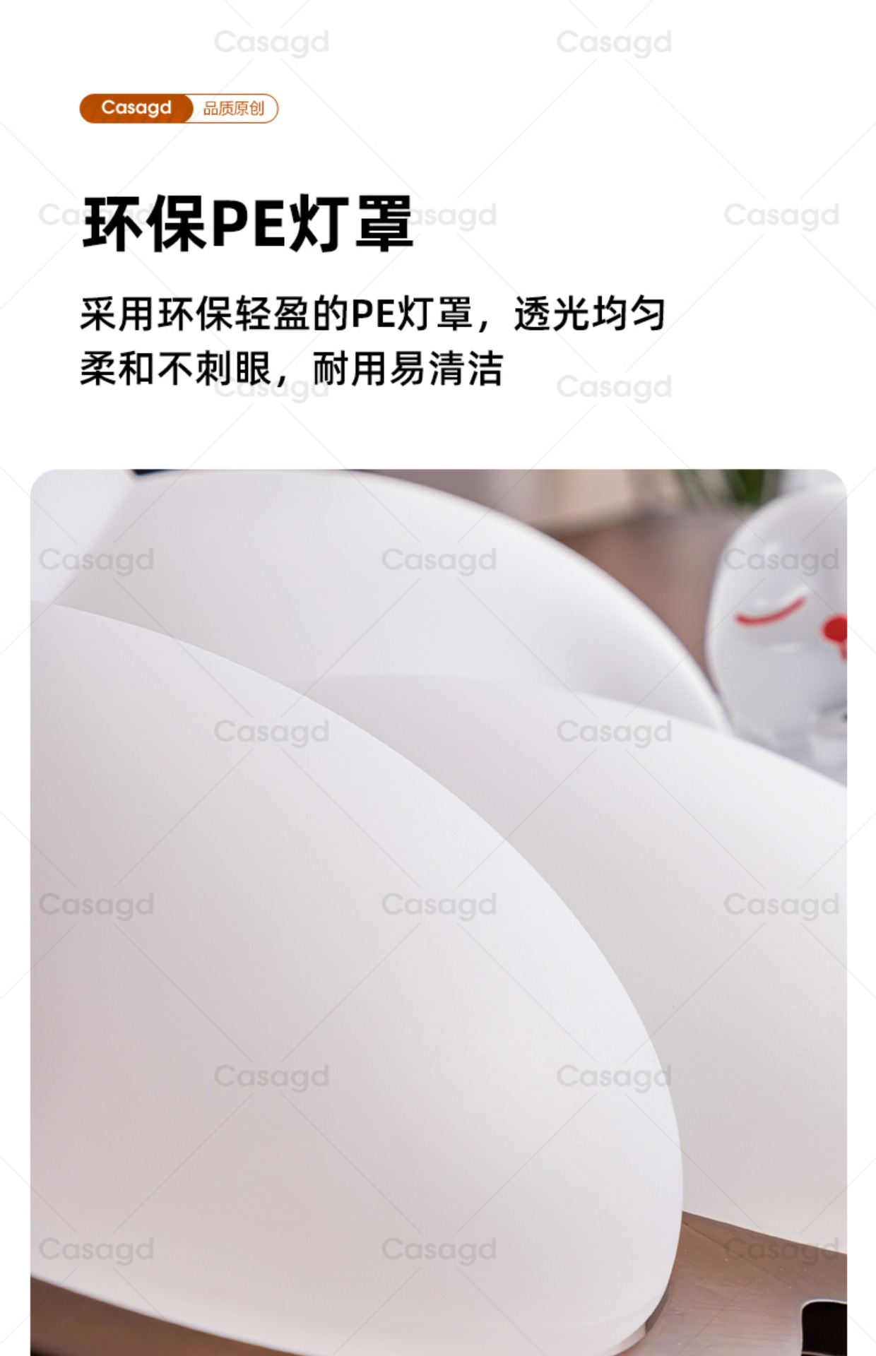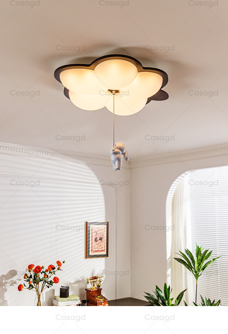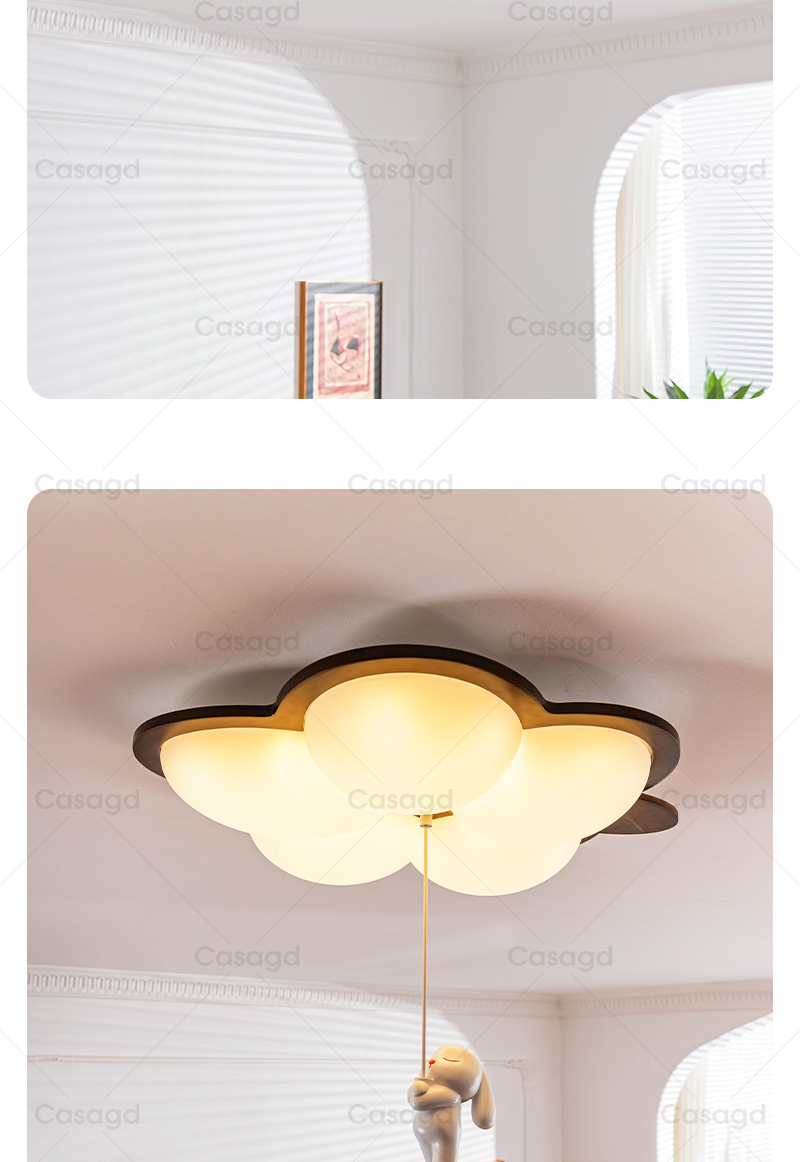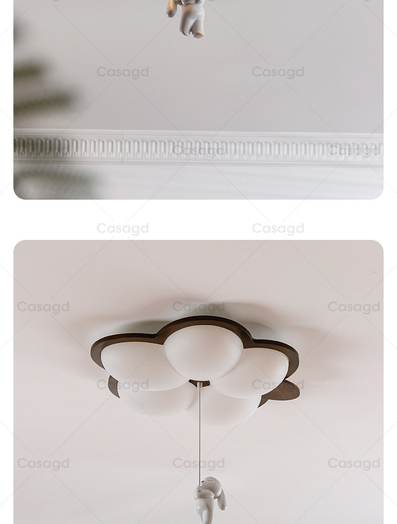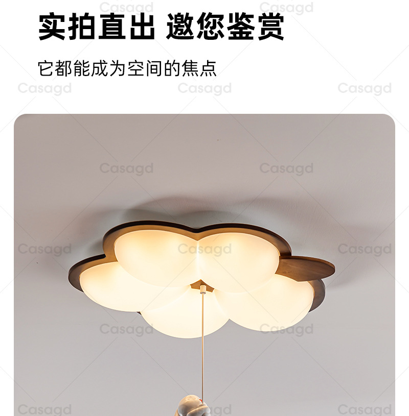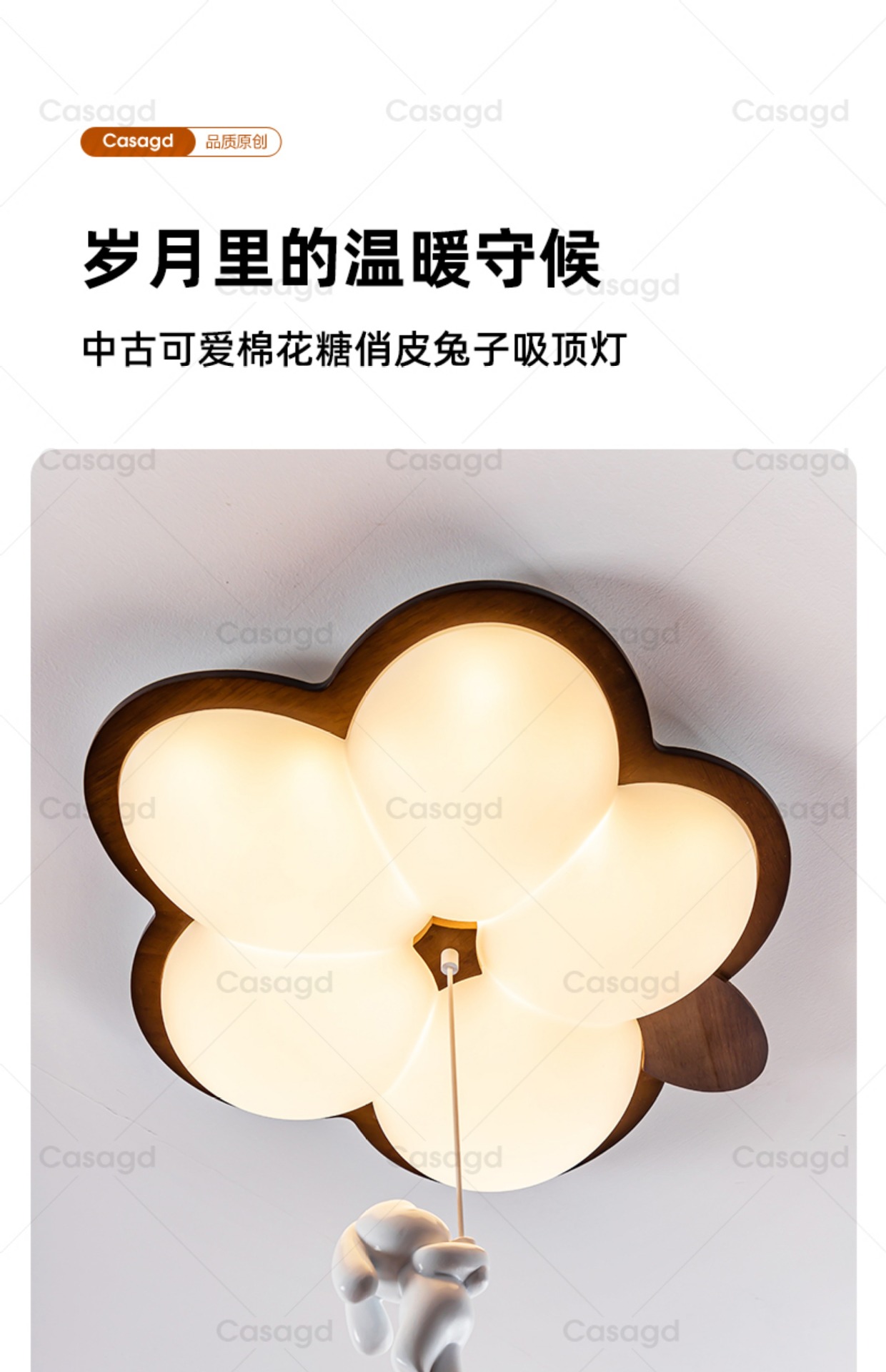 日式复古棉花糖卧室吸顶灯带兔子中古风胡桃木纹主卧房间灯具casa