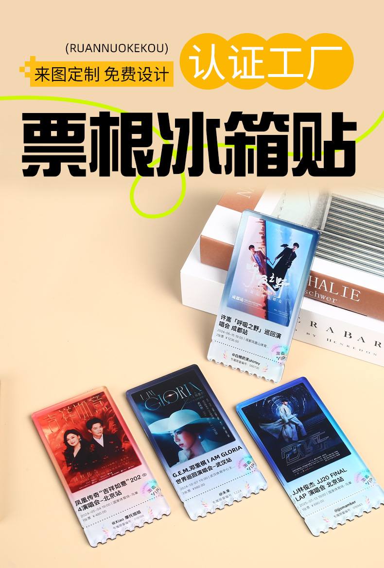演唱会门票亚克力冰箱贴定制创意礼物明星周边照片纪念品票根磁贴