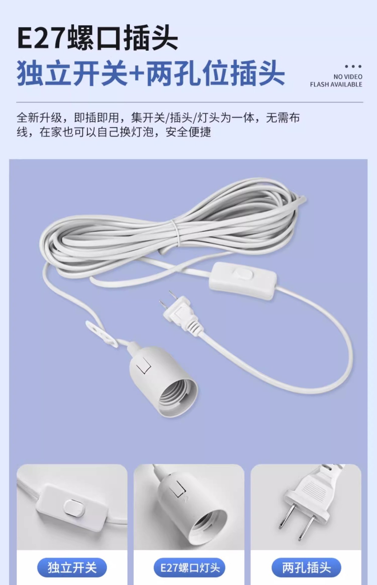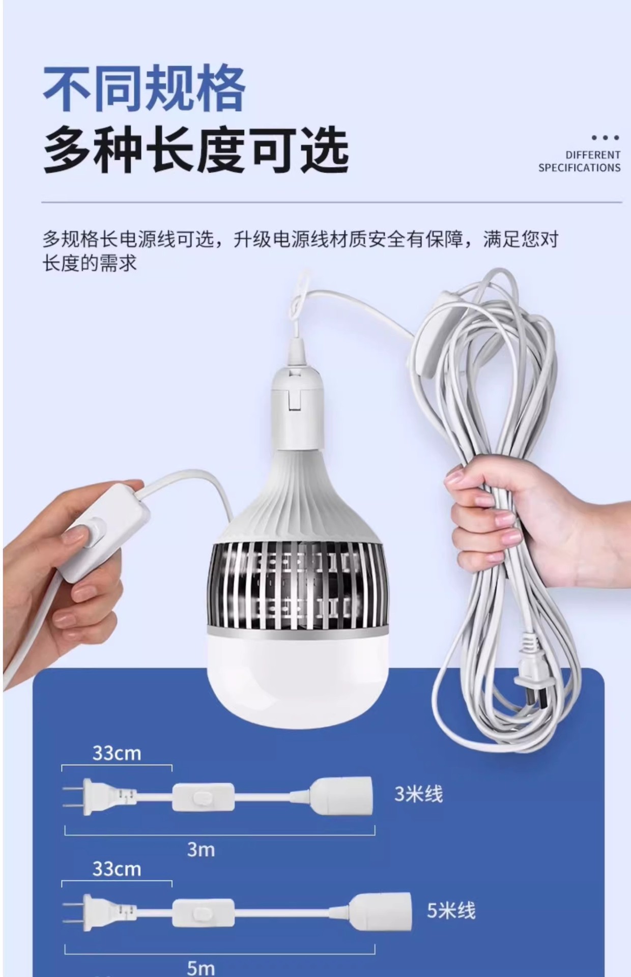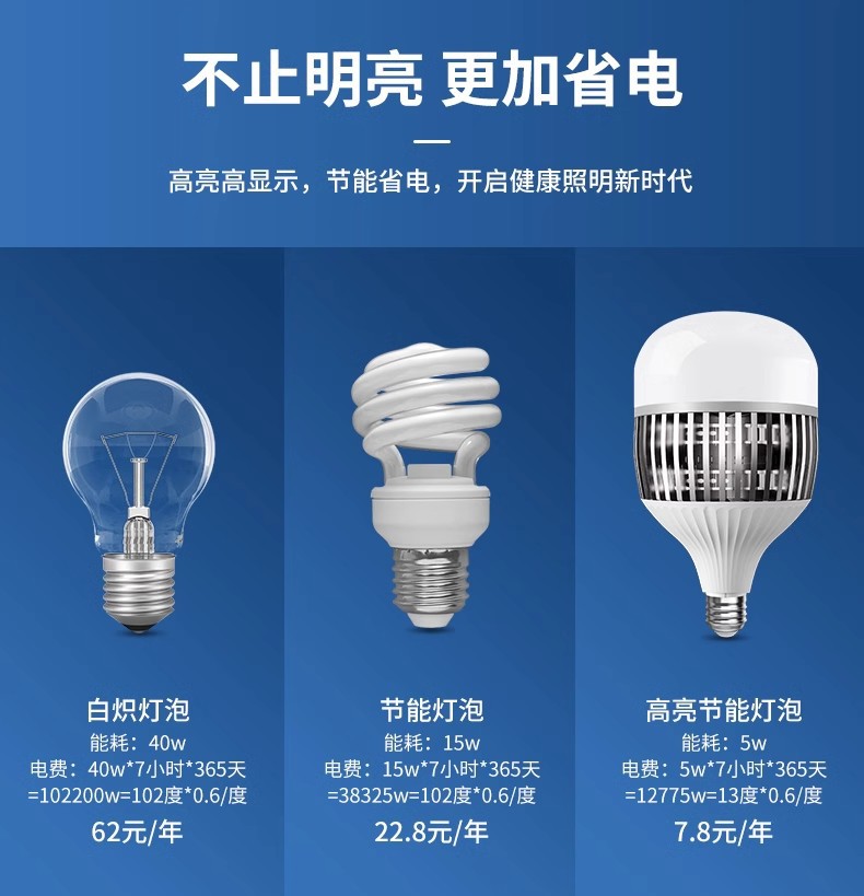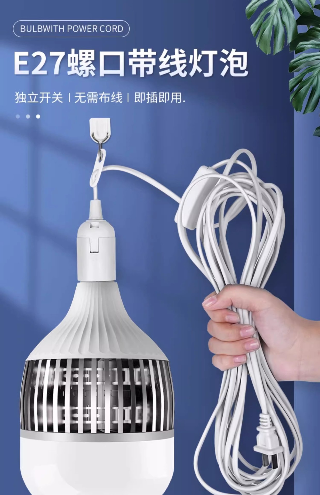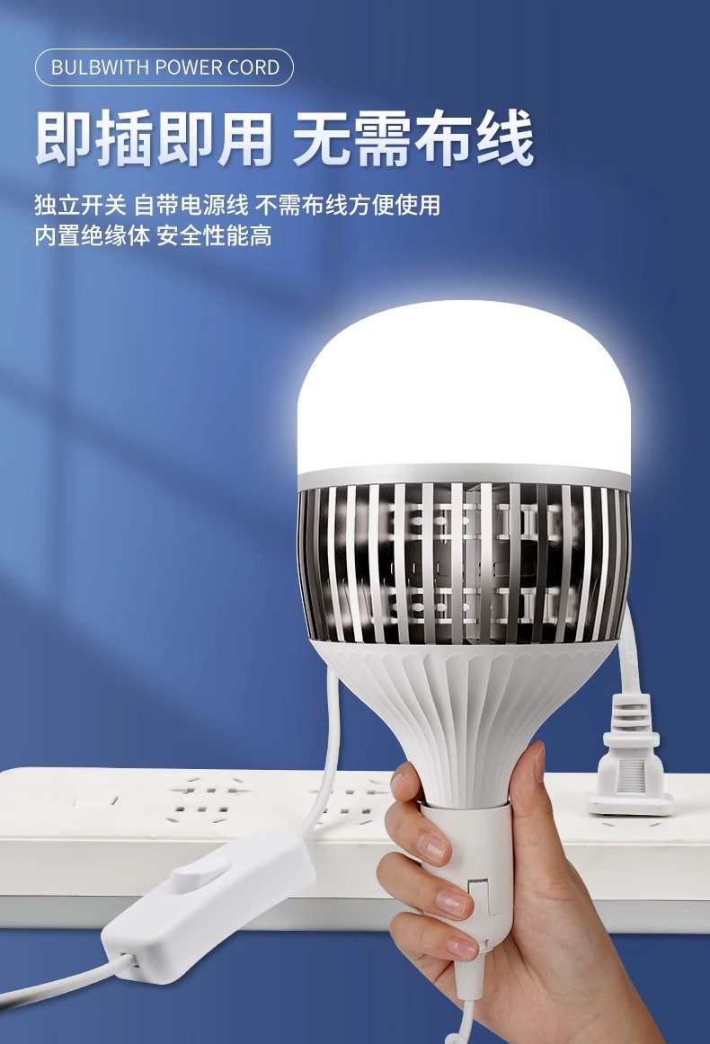 家用带线灯泡大功率E27螺口LED灯带插头开关节能灯厂房超亮照明灯