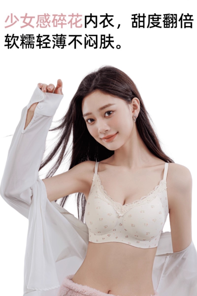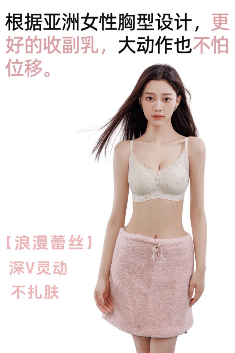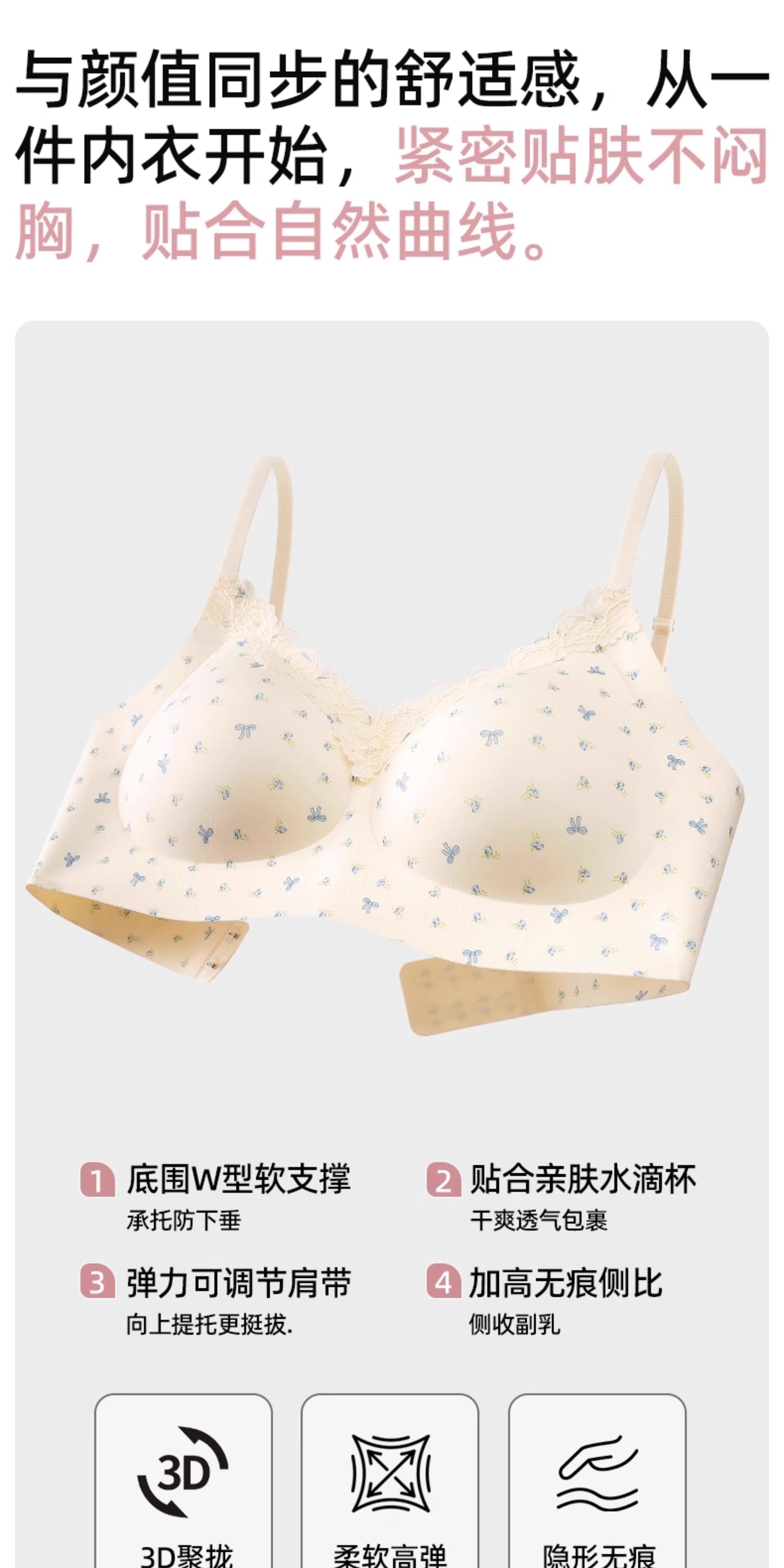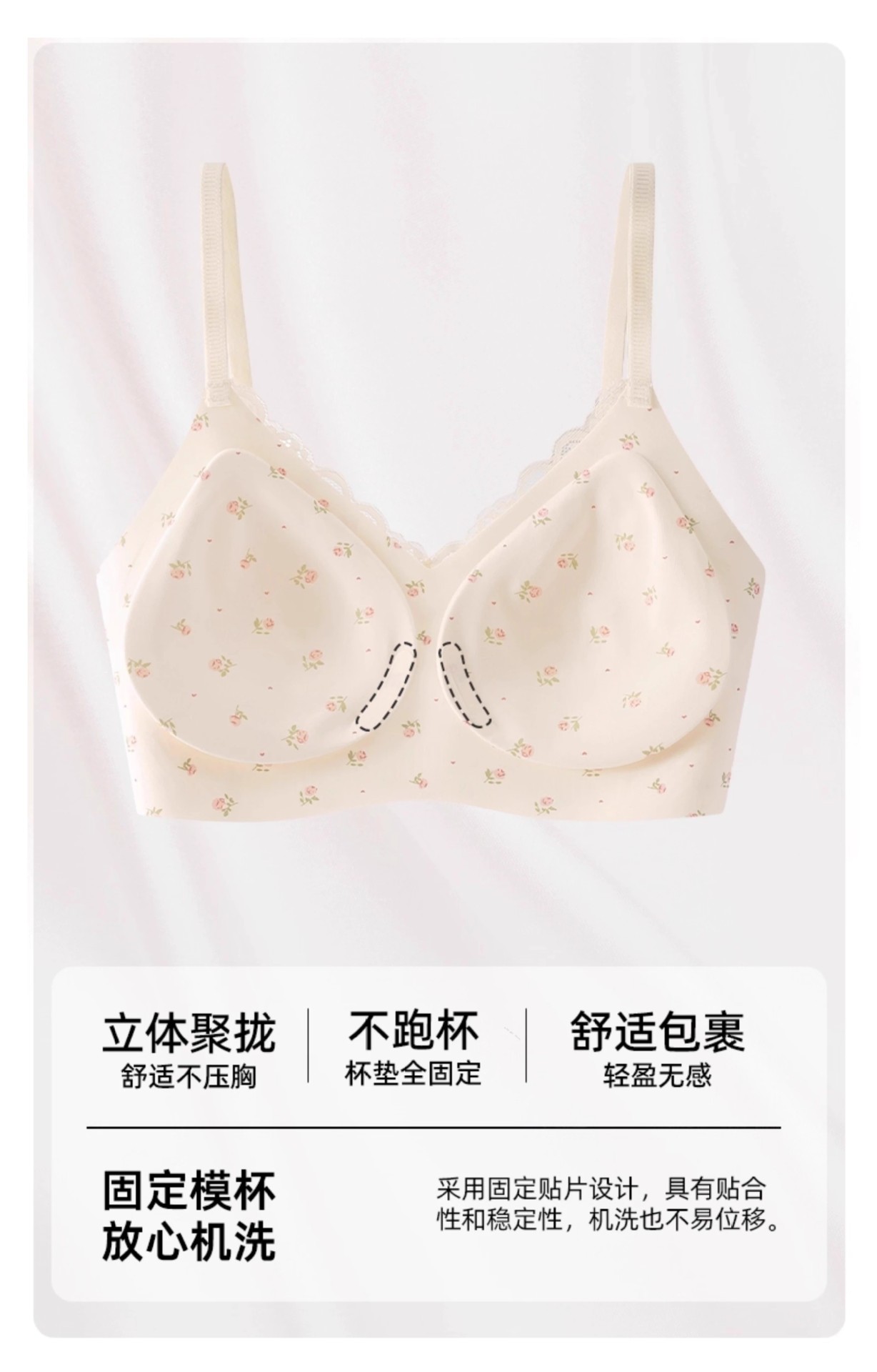 原版法式内衣女聚拢小胸无痕无钢圈胸罩蕾丝固定杯一体式美背文胸