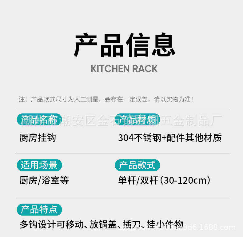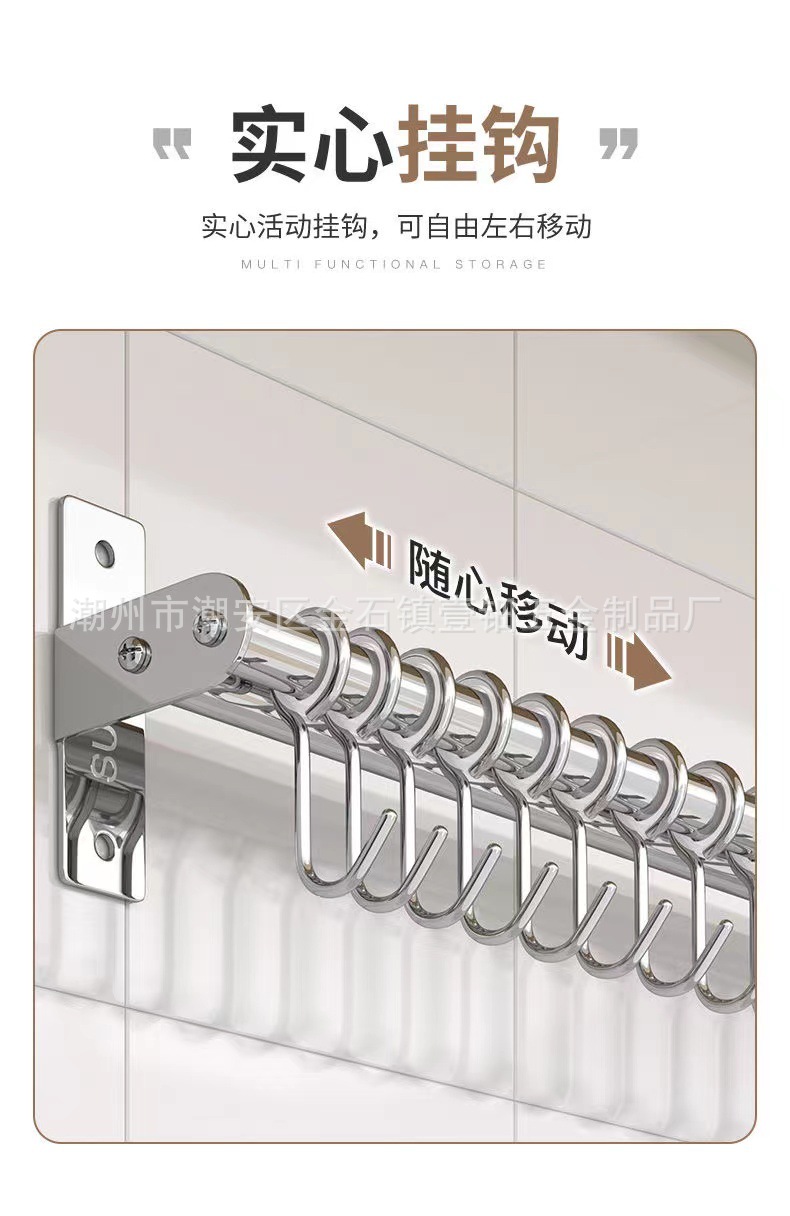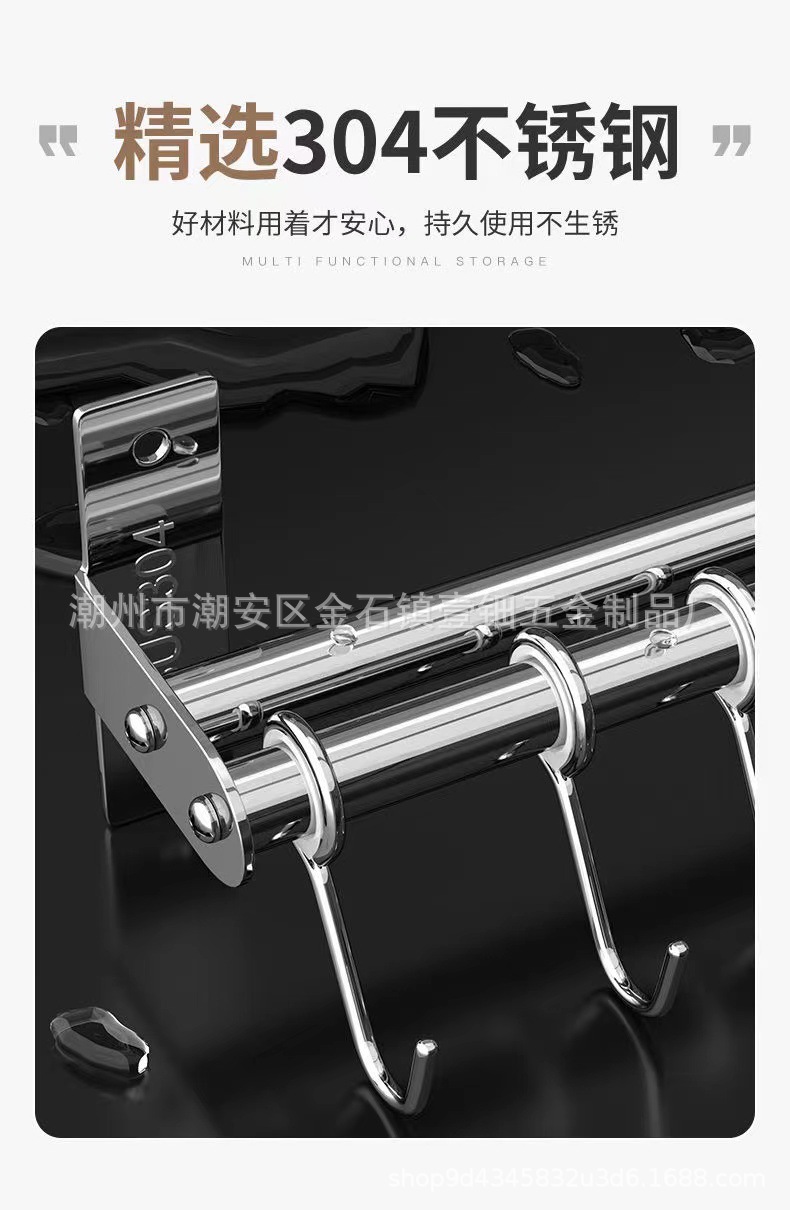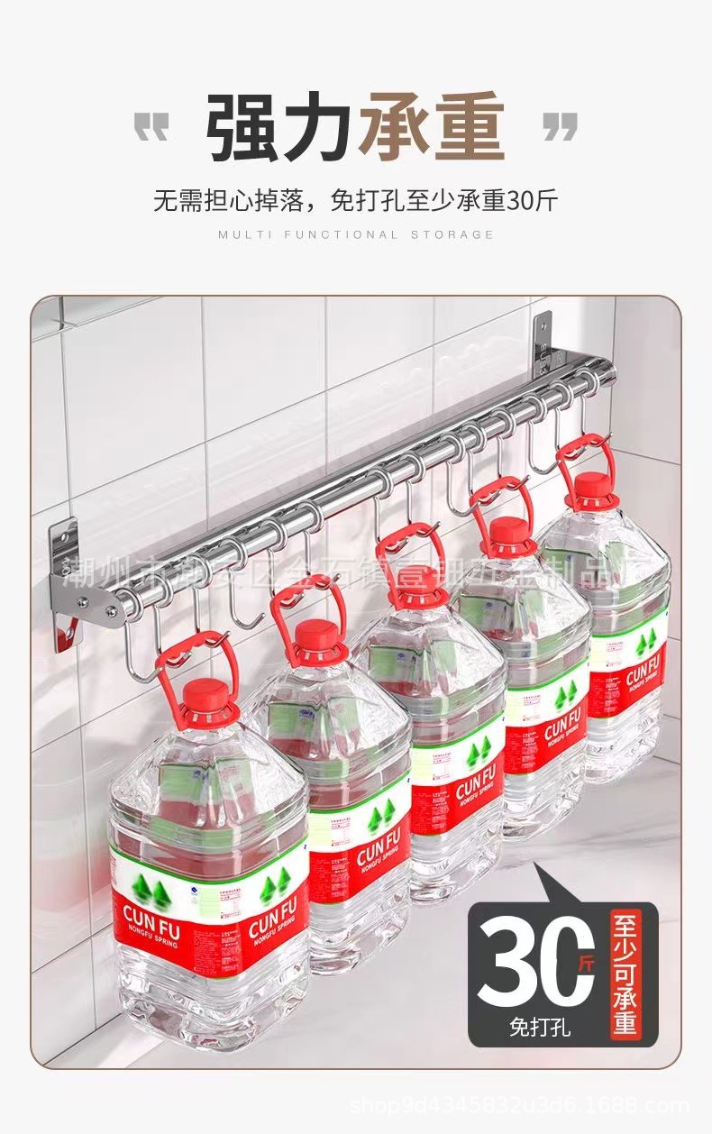 跨境厨房挂钩304不锈钢墙上挂钩挂架墙上多功能免打孔厨房杆代发