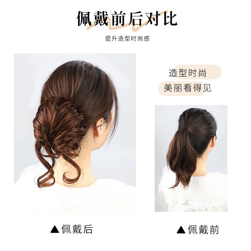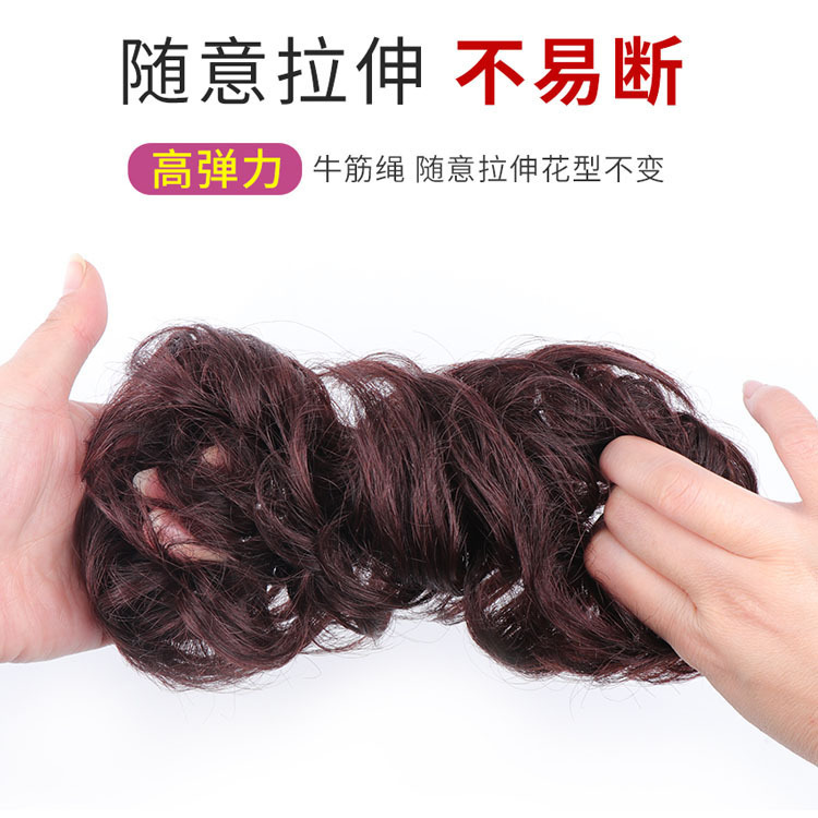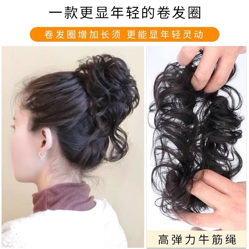 盘发长须卷发圈高级感花苞头花假发包蓬松真发丸子头发髻发饰女士