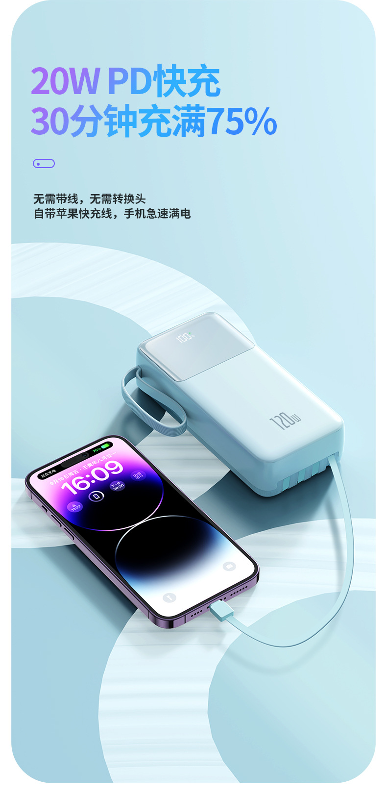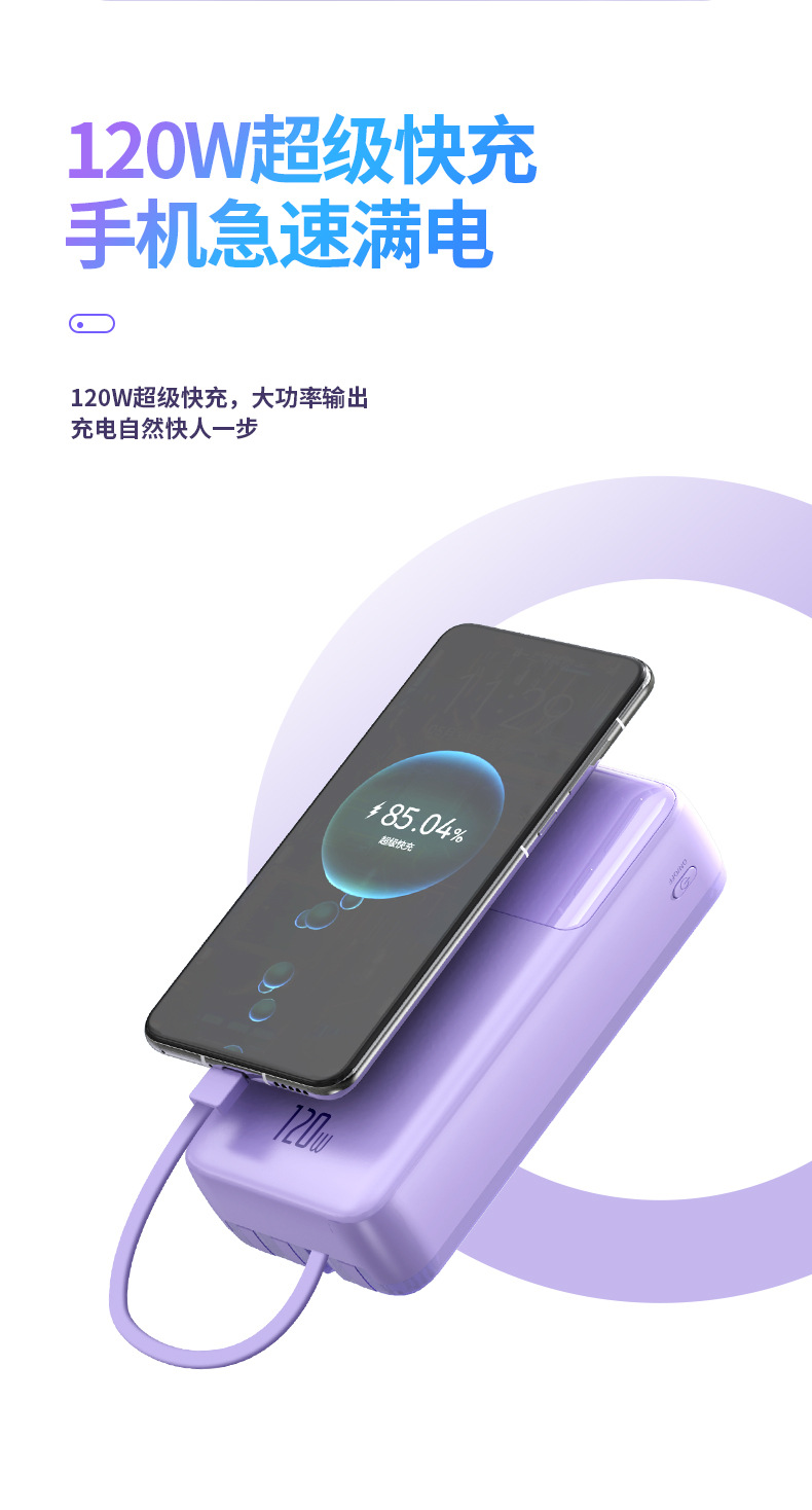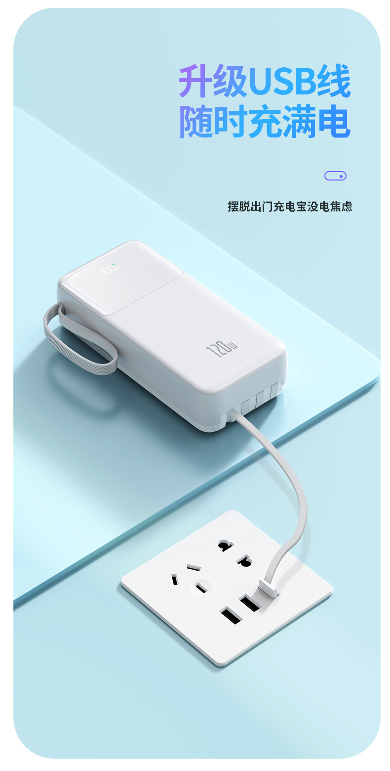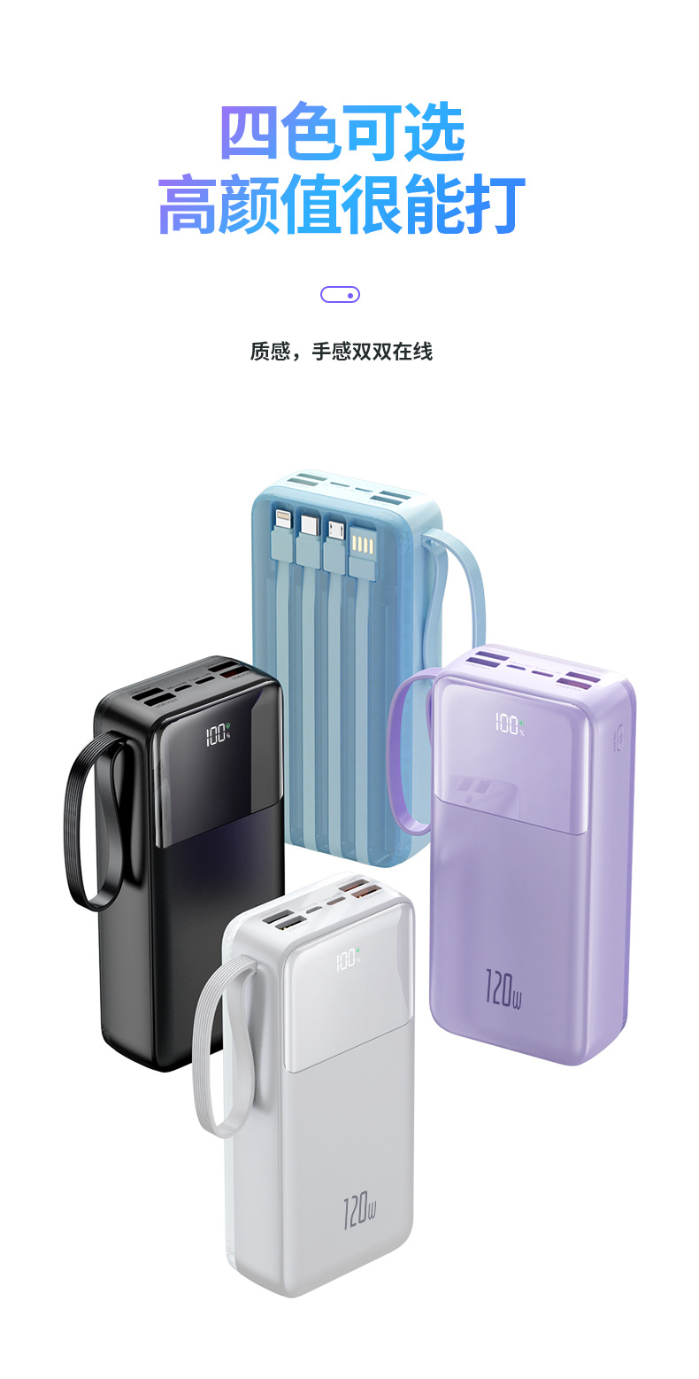 批发充电宝快充120w自带线50000毫安跨实户外手机移动电源闪充