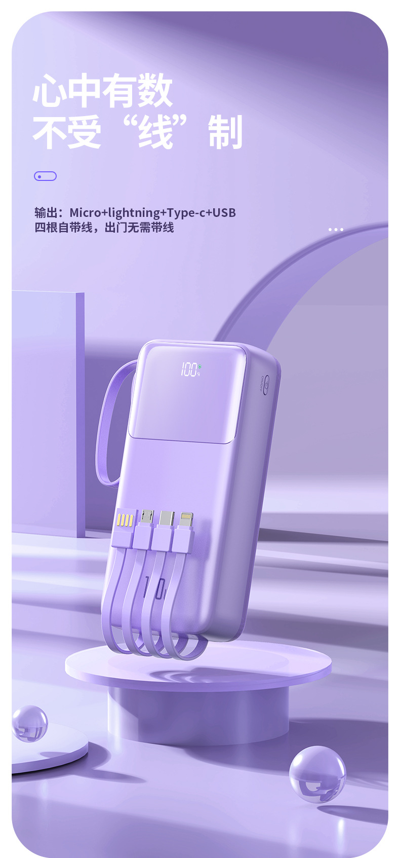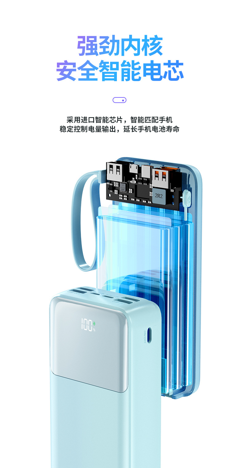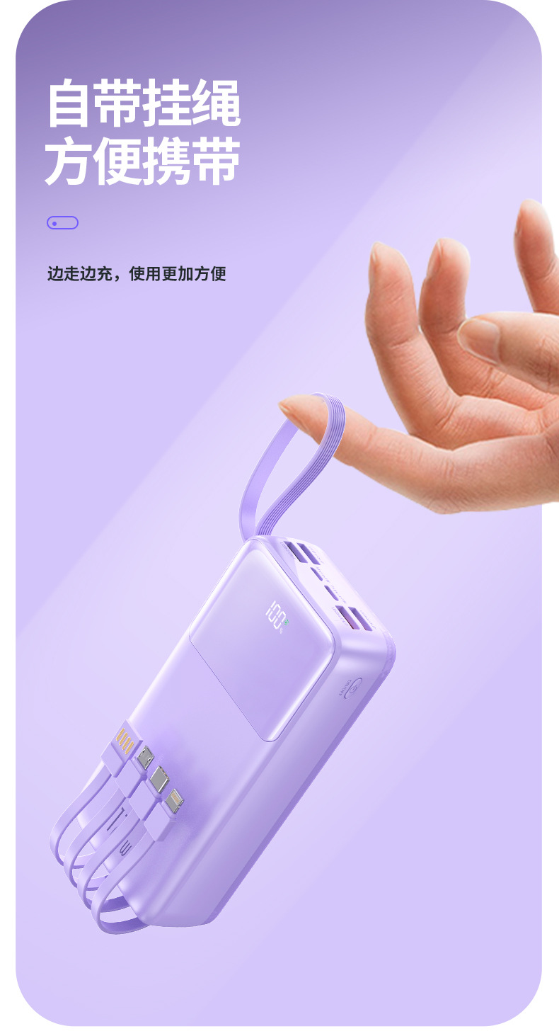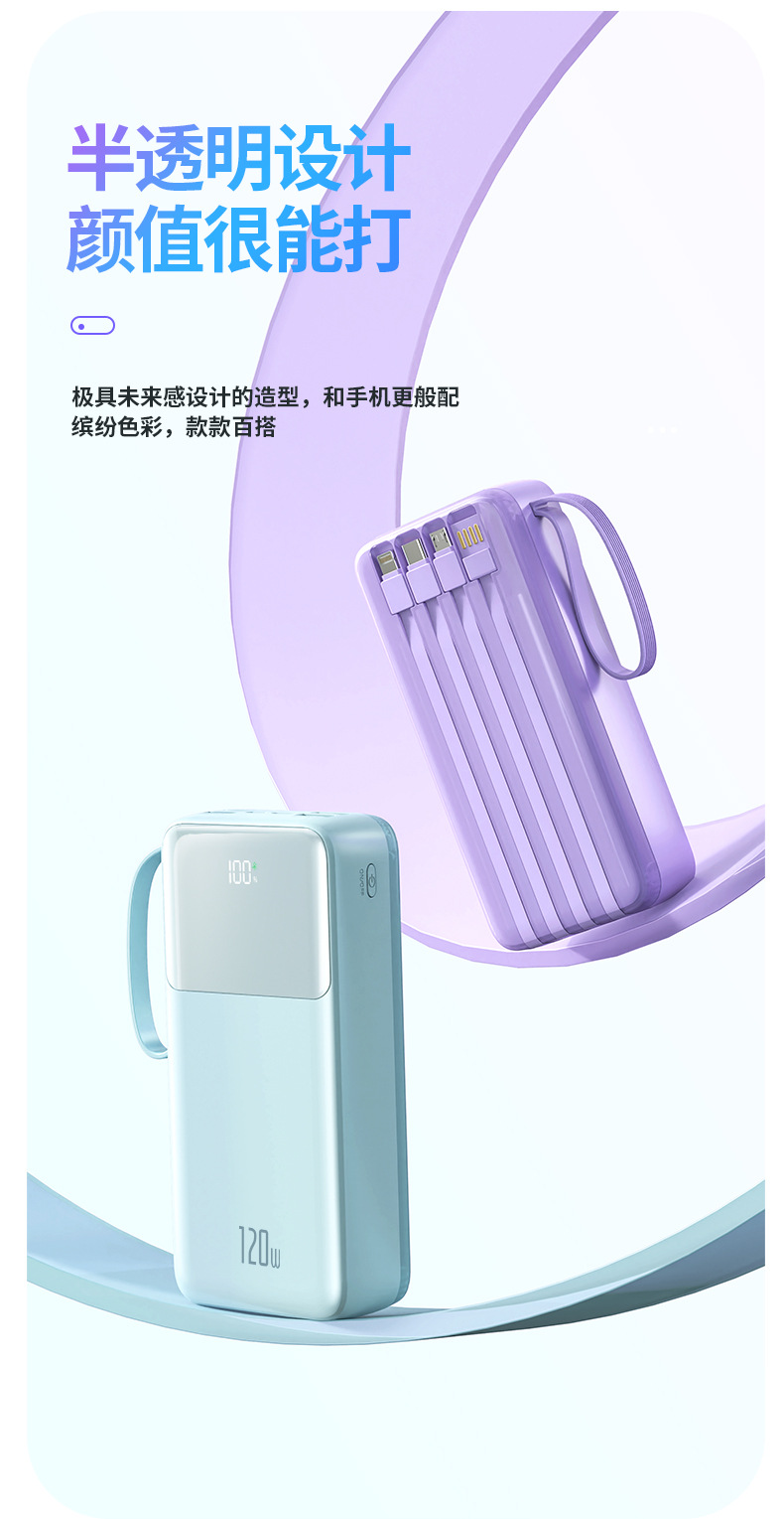 批发充电宝快充120w自带线50000毫安跨实户外手机移动电源闪充