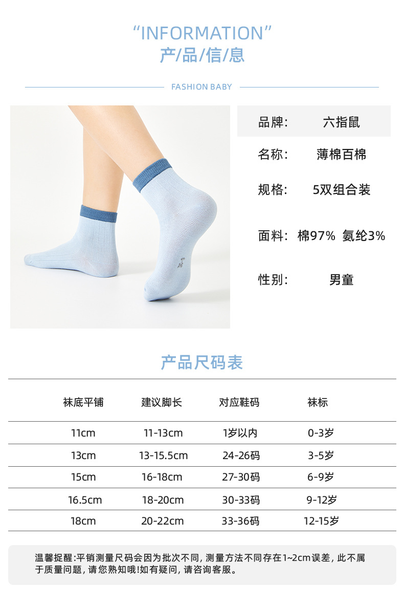 六指鼠批发无骨百棉儿童袜子春秋冬季纯棉中筒棉袜中大童男童秋袜