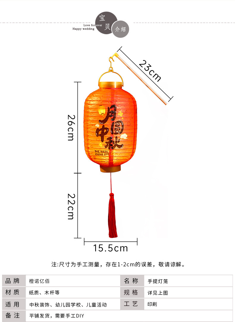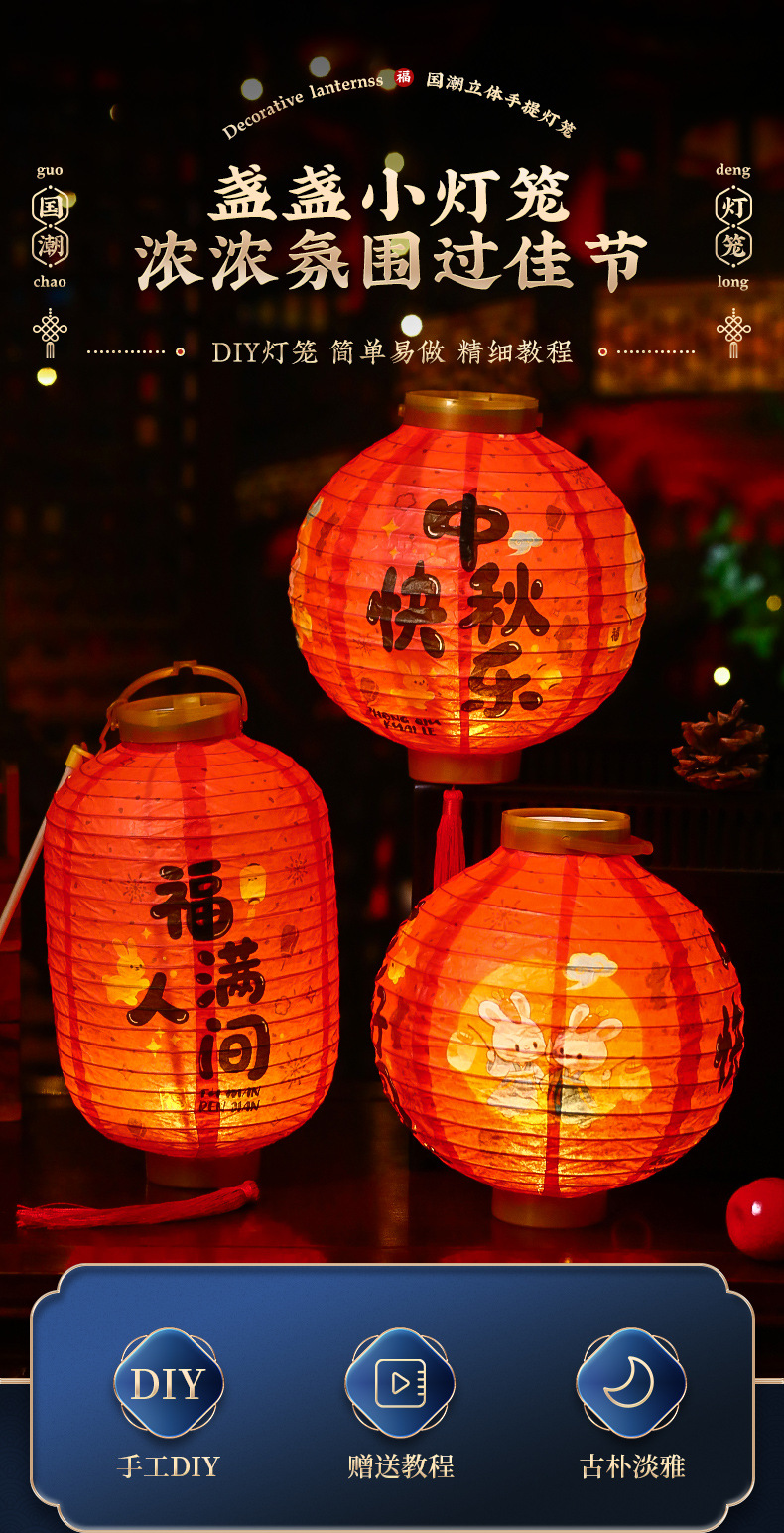 2025新款中秋节油纸灯笼儿童手提小花灯挂饰户外活动装饰古风宫灯