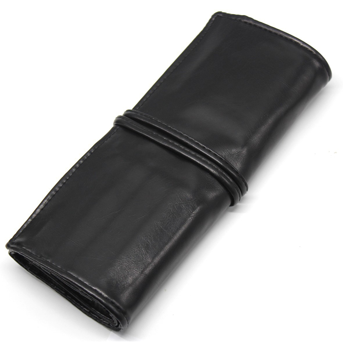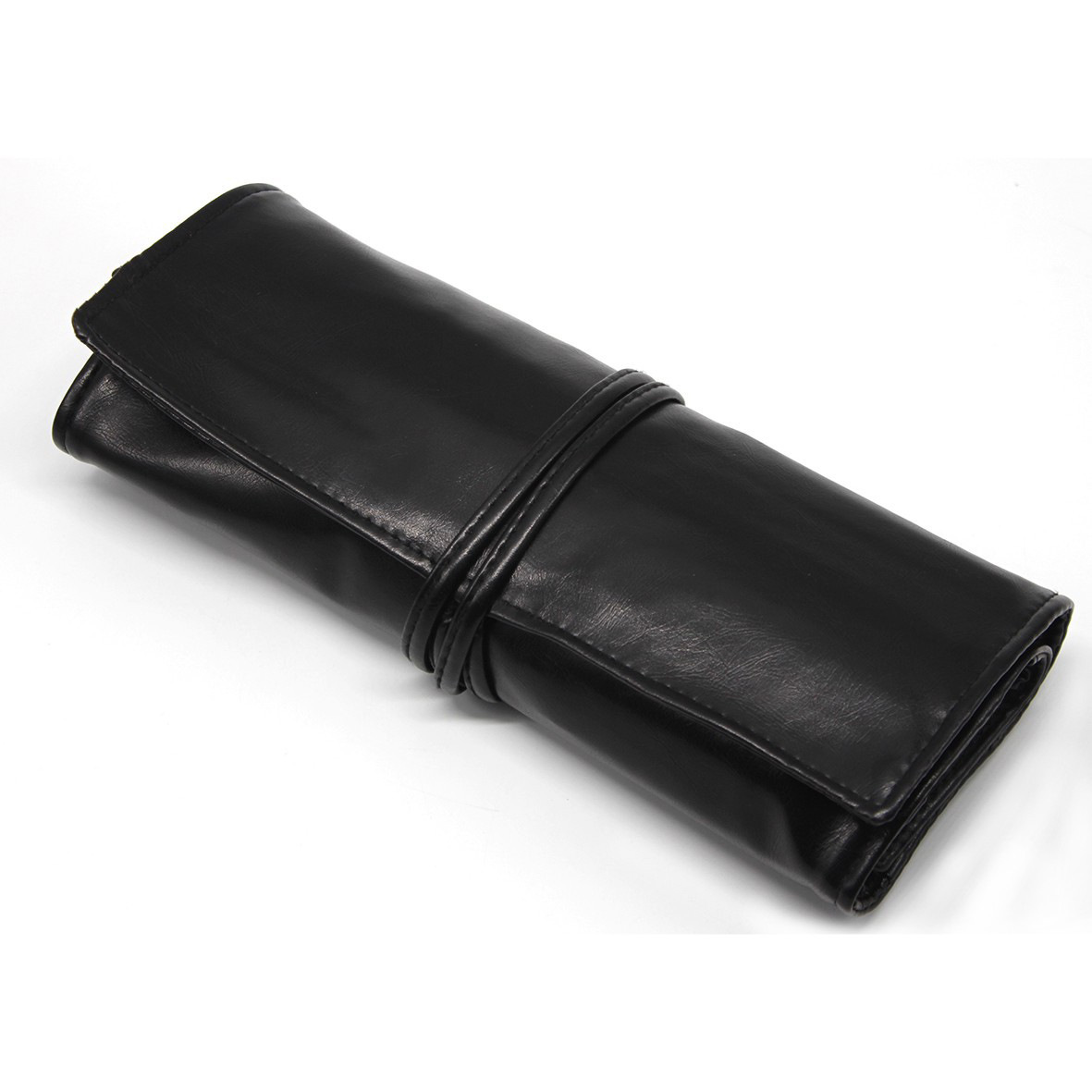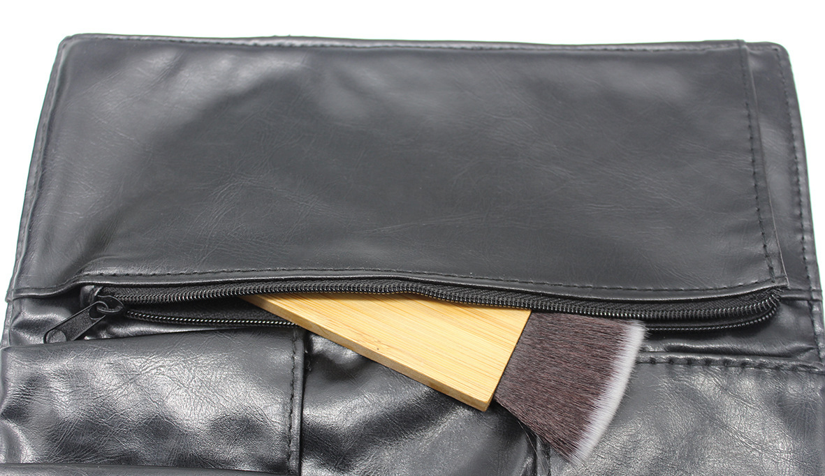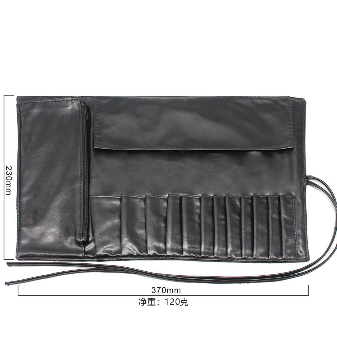 现货12孔高品质黑色化妆刷包 PU便携带拉链绑带暗格刷子收纳卷袋