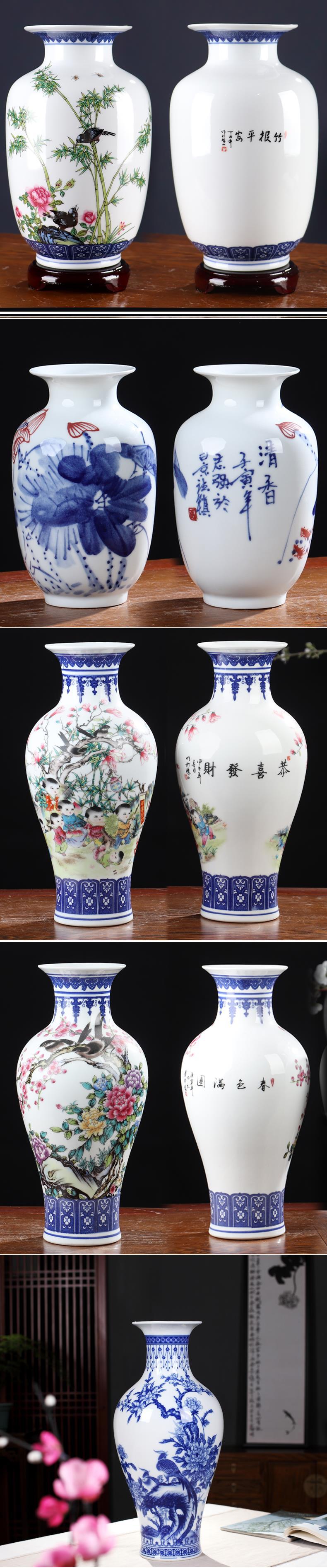 青花瓷花瓶摆件客厅插花仿古小装饰工艺品景德镇陶瓷器新中式花器