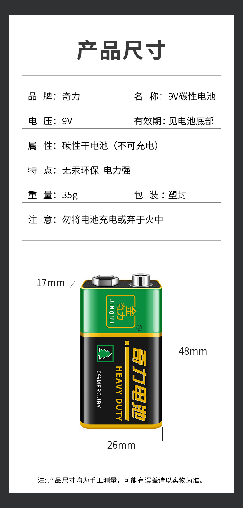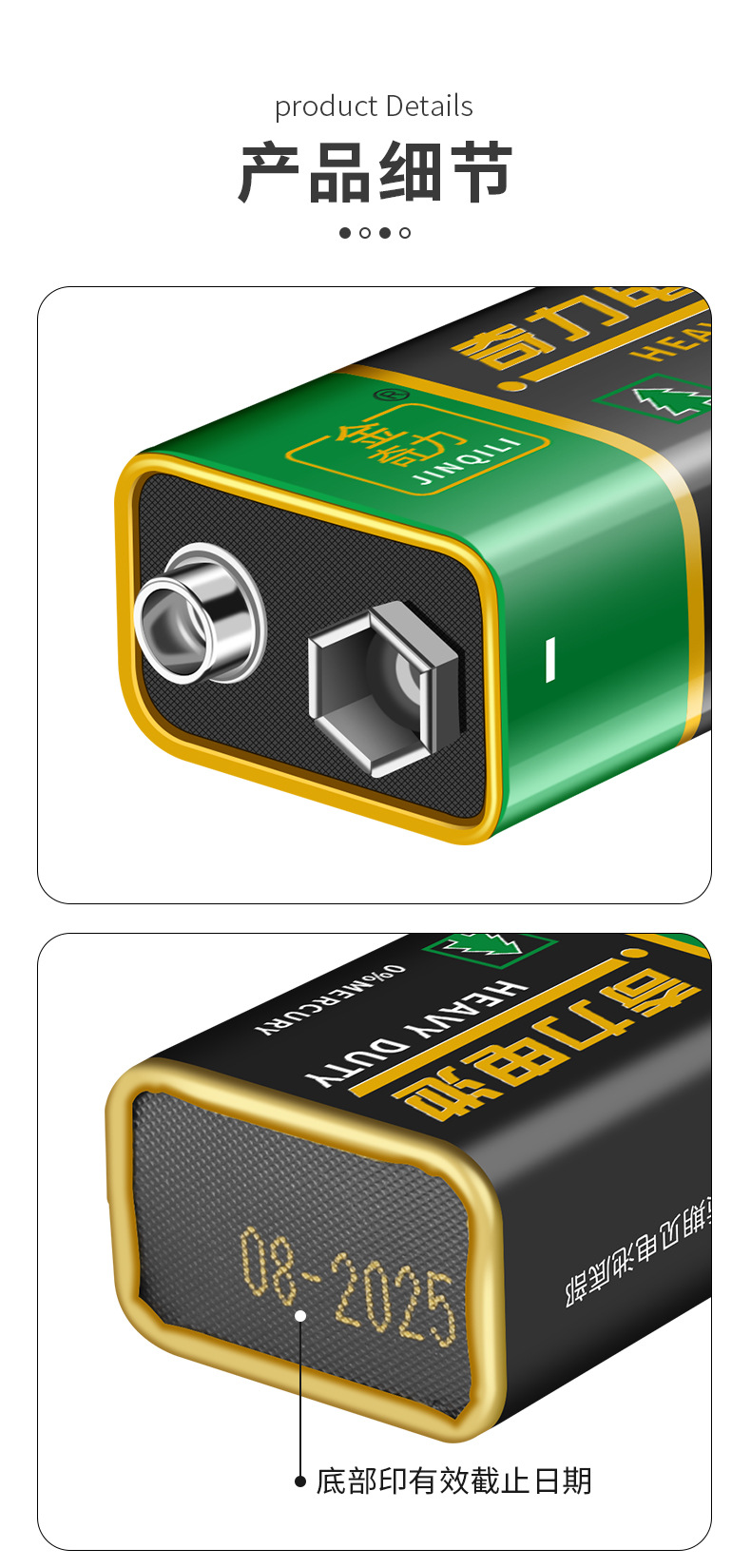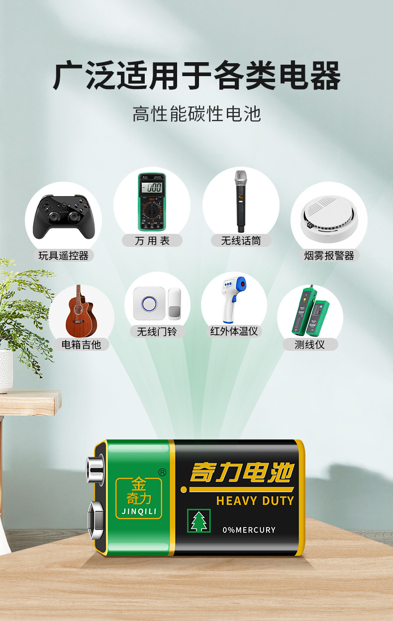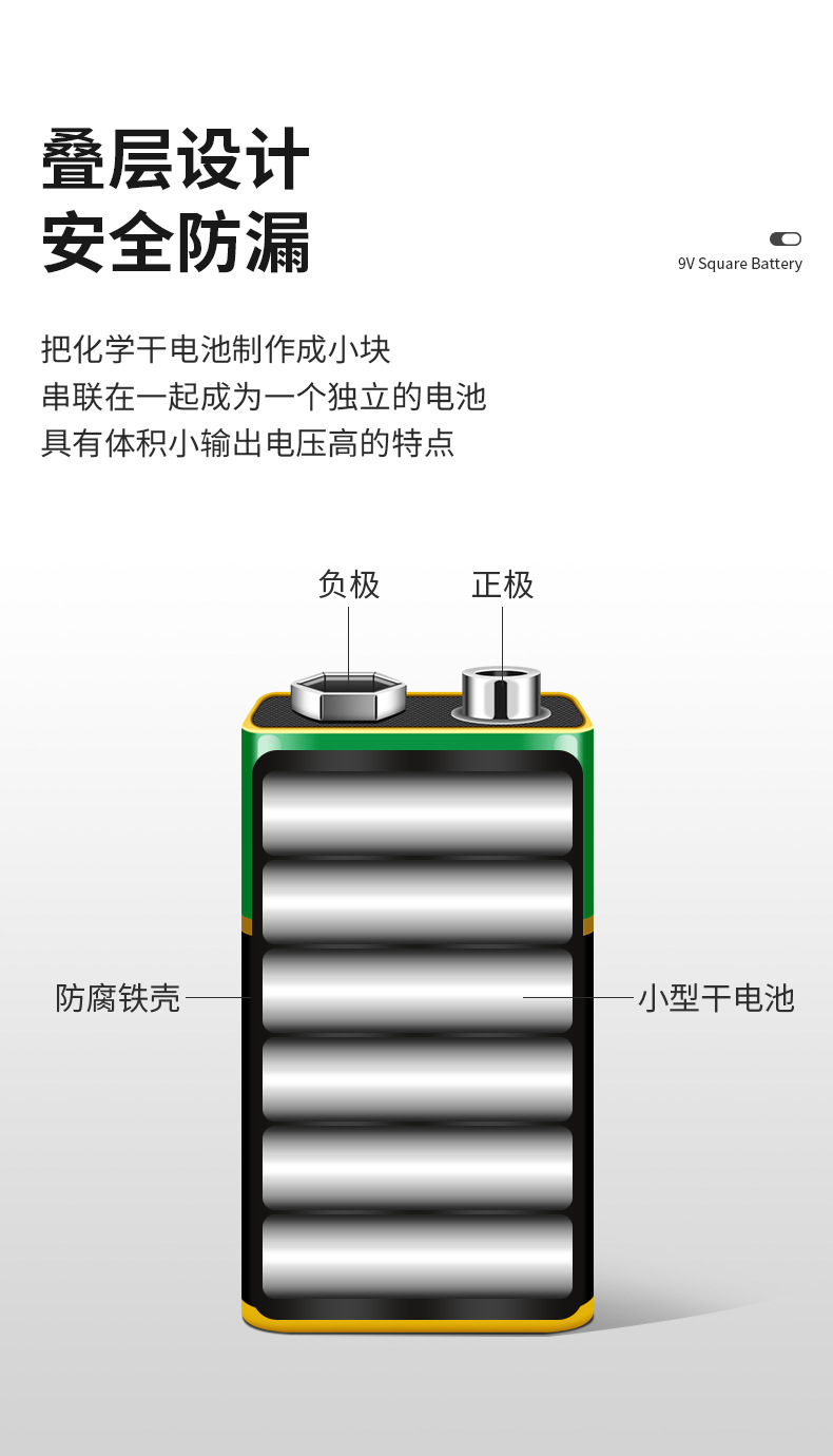 5粒装 9V电池6F22方形万用表无线话筒器麦克风报警器玩具通用电池