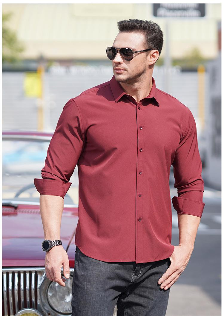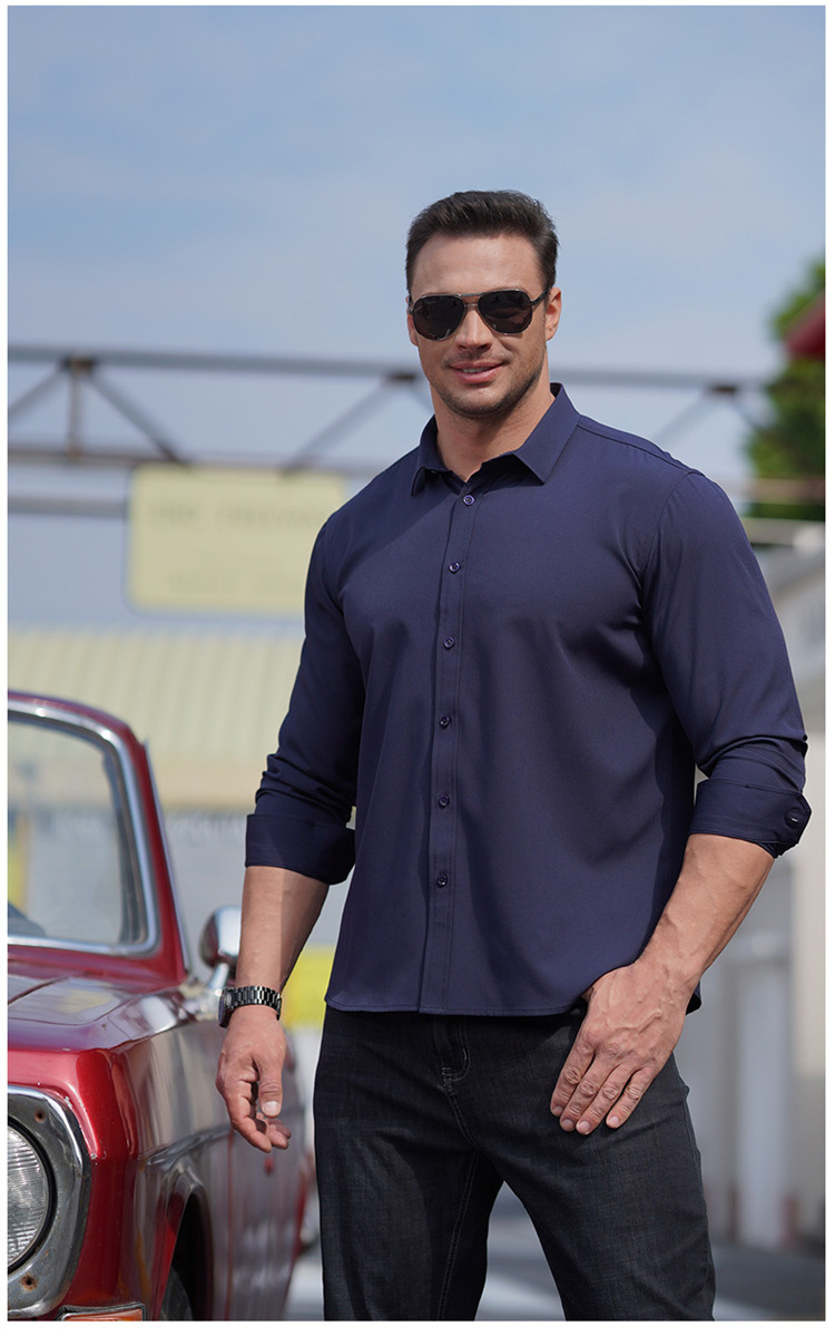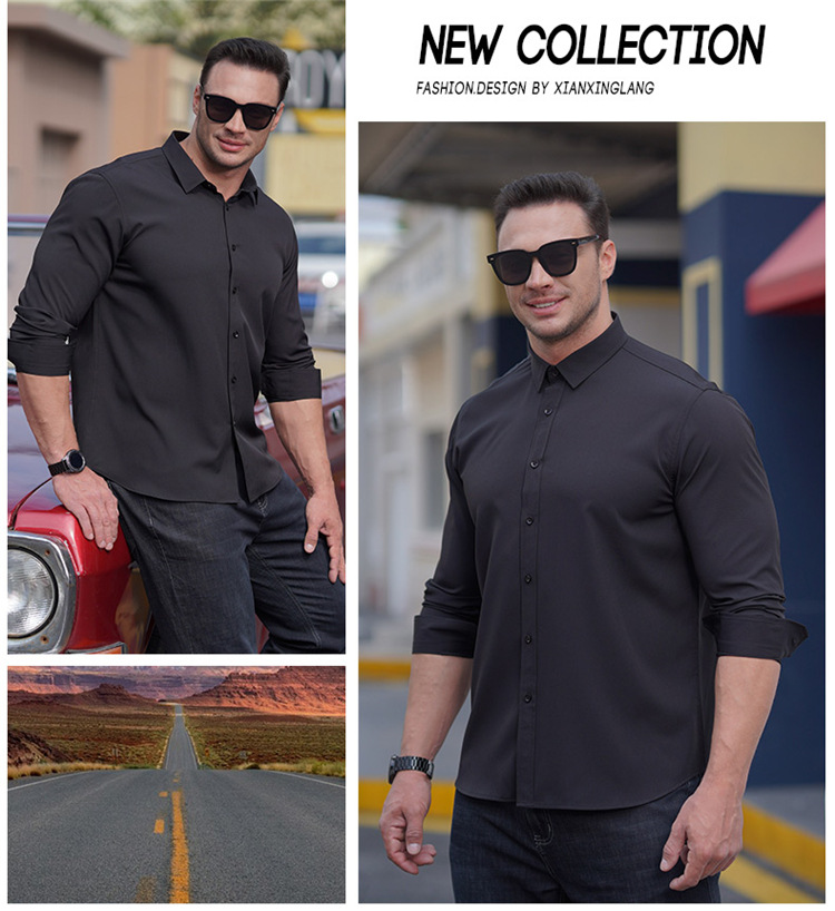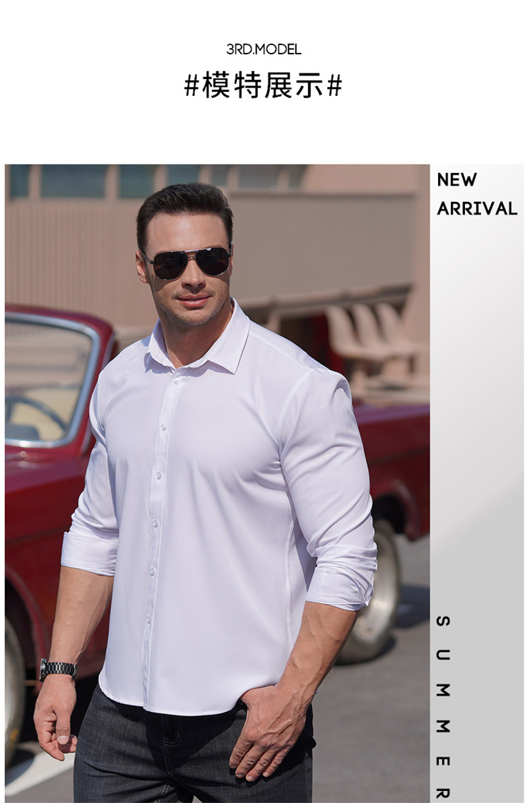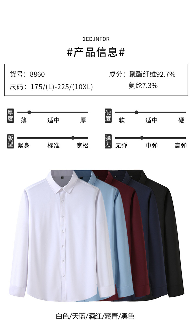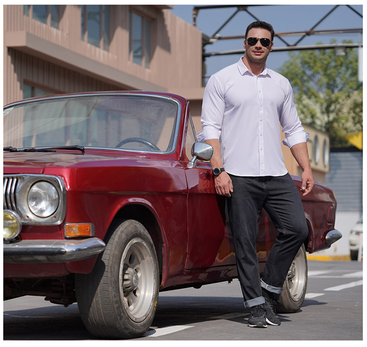 欧美商务职业装长袖衬衫大码男式春秋新款肥佬胖哥宽松纯色衬衣