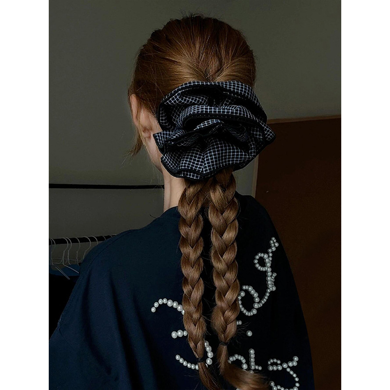 赵露思许妍同款黑色格子双层大肠发圈超大头花韩系头绳低马尾发饰