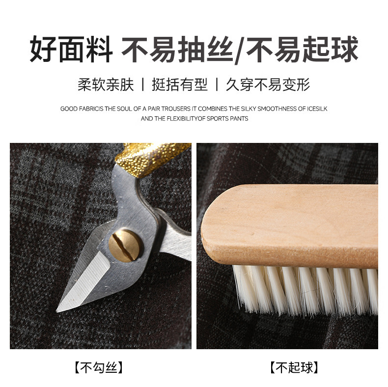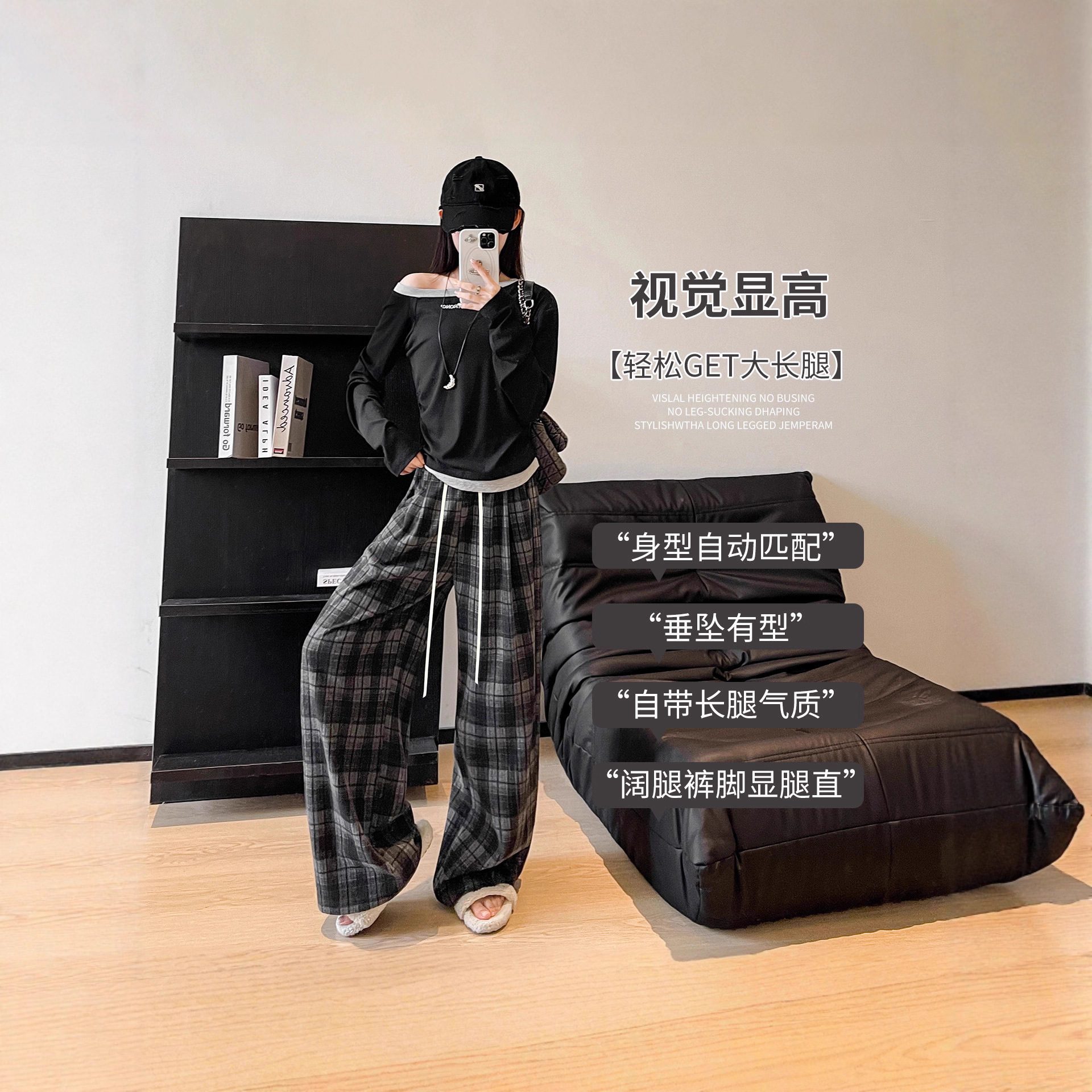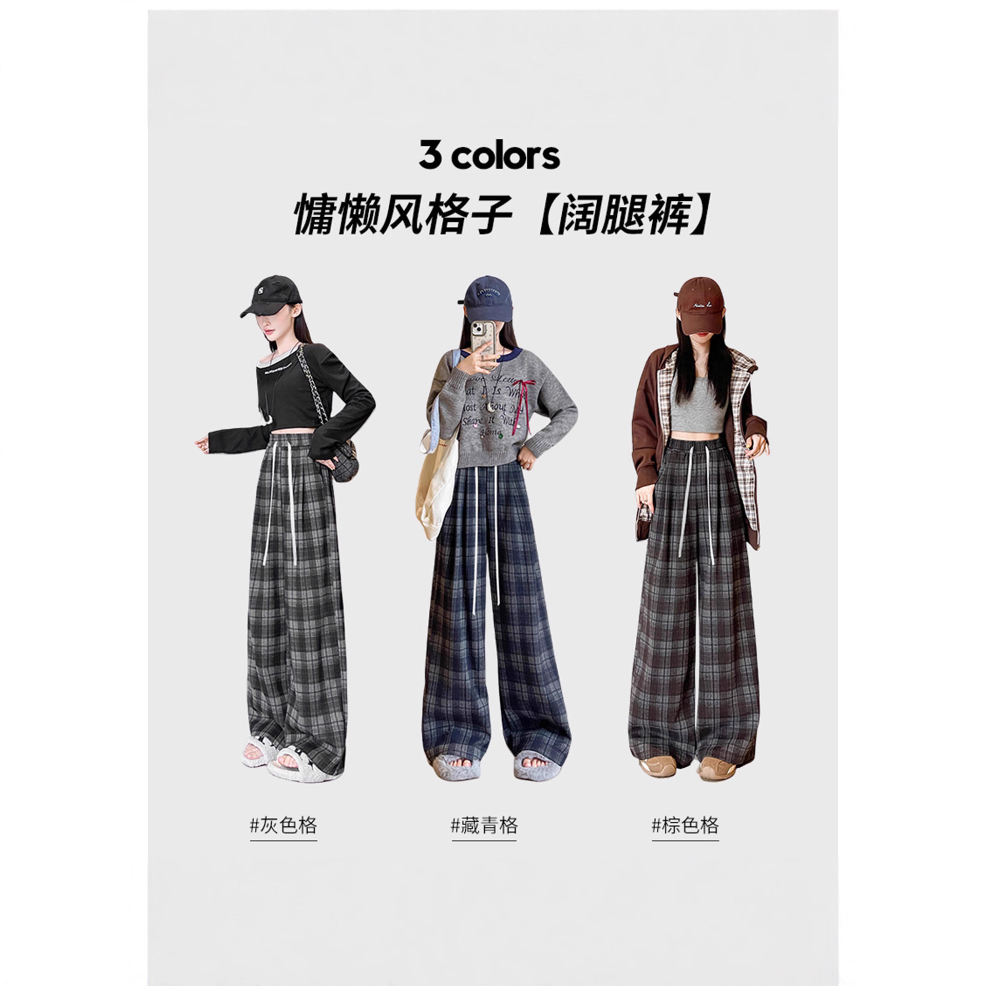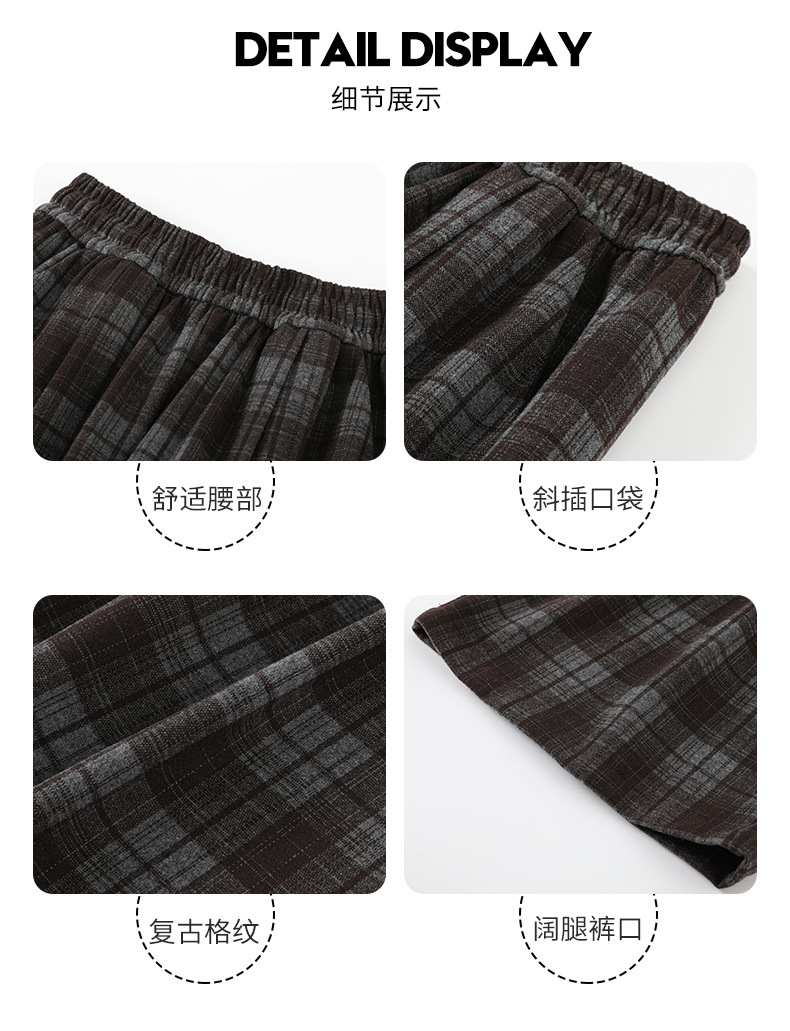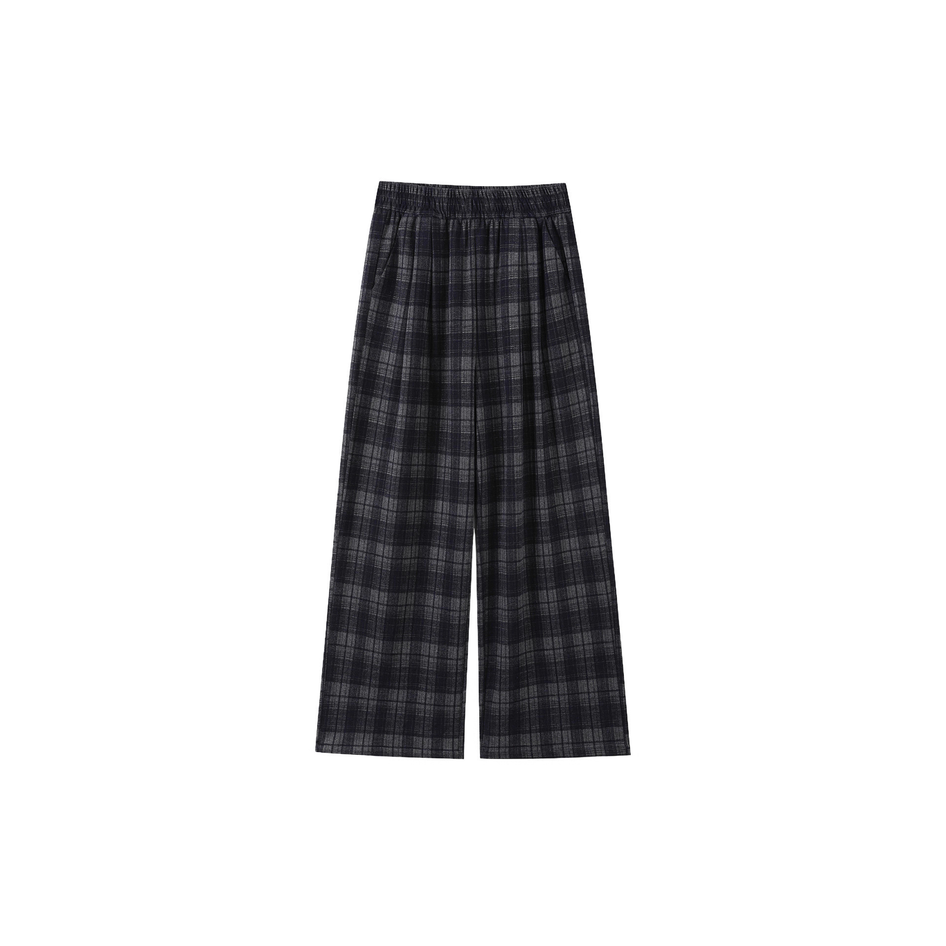 藏青色格子裤女2025春秋新款高腰垂感直筒裤宽松显瘦小个子阔腿裤
