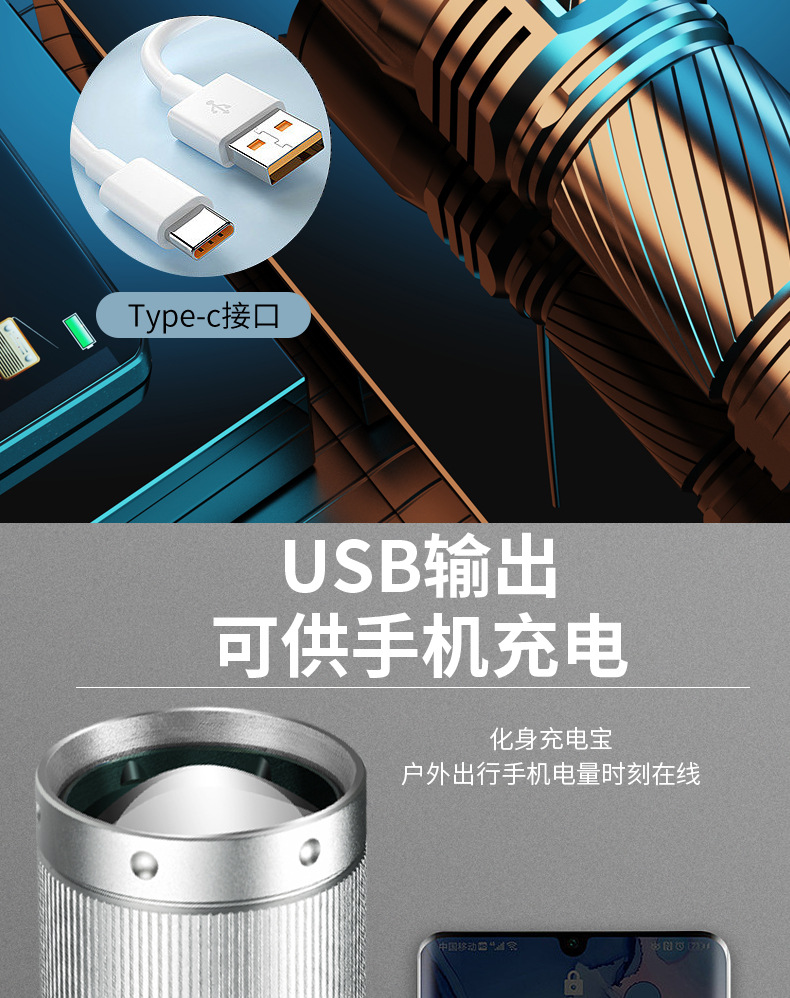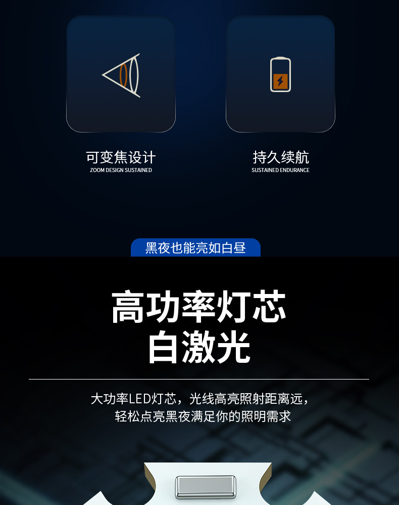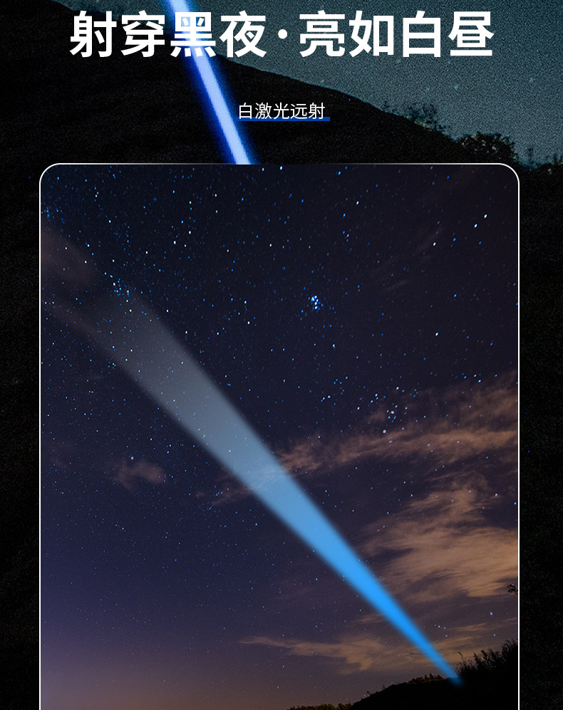 恶魔天使之眼白激光直充强光超亮手电筒户外远射大功率充电氙气灯