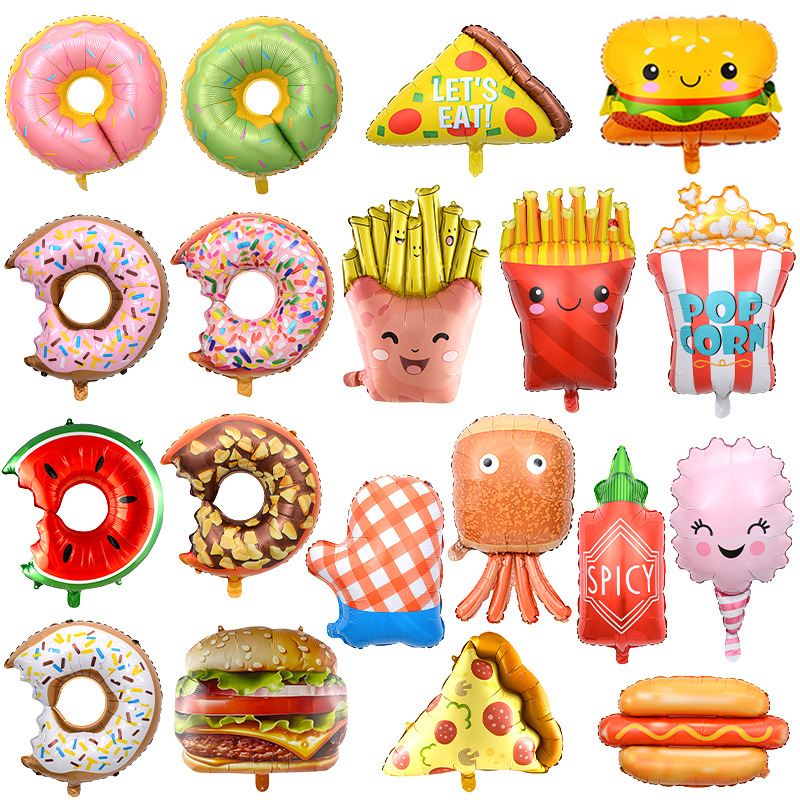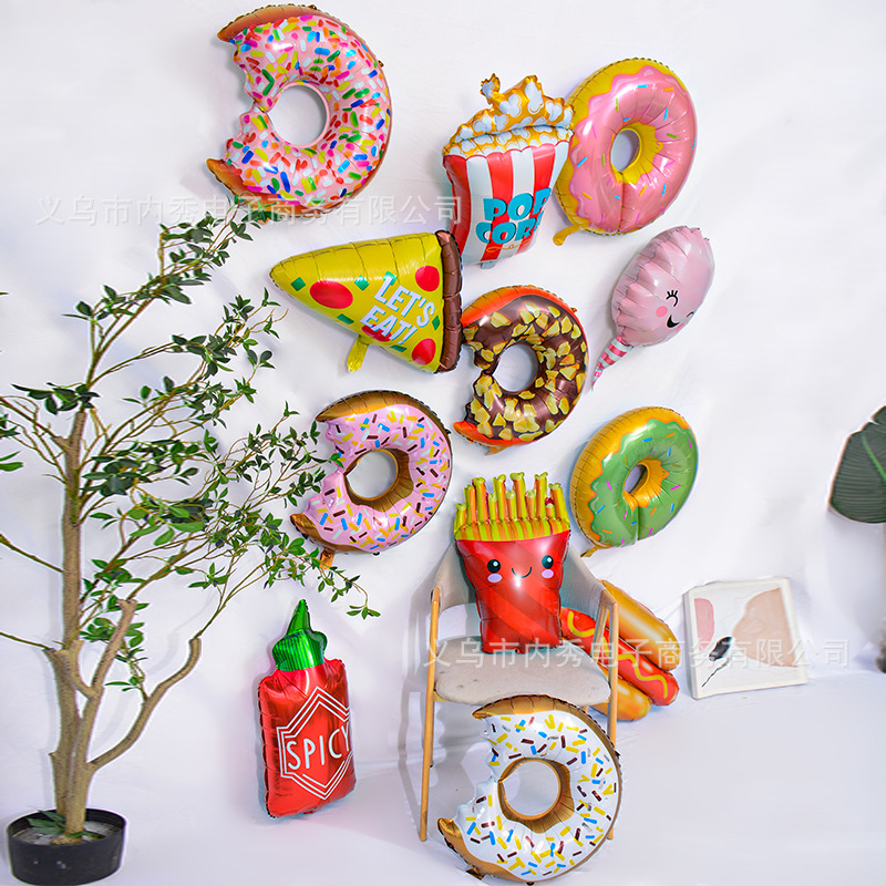巧克力甜甜圈气球生日汉堡薯条披萨气球热狗派对铝膜气球装饰跨境