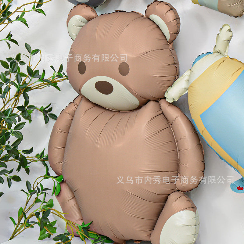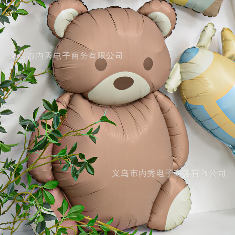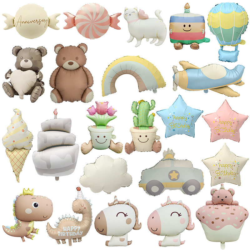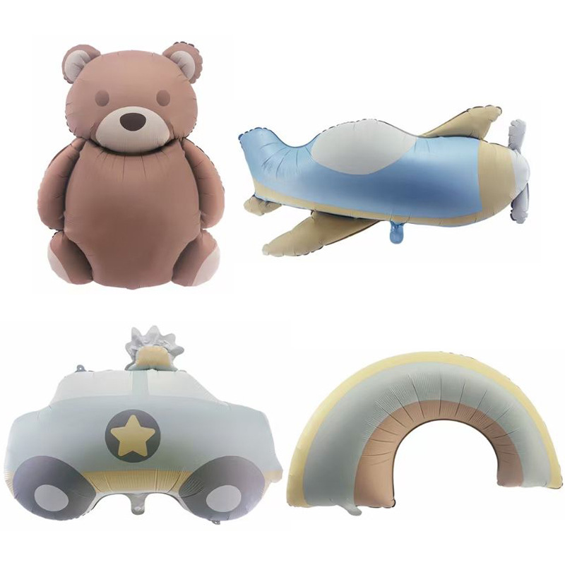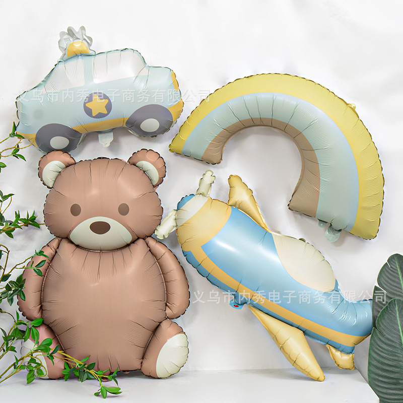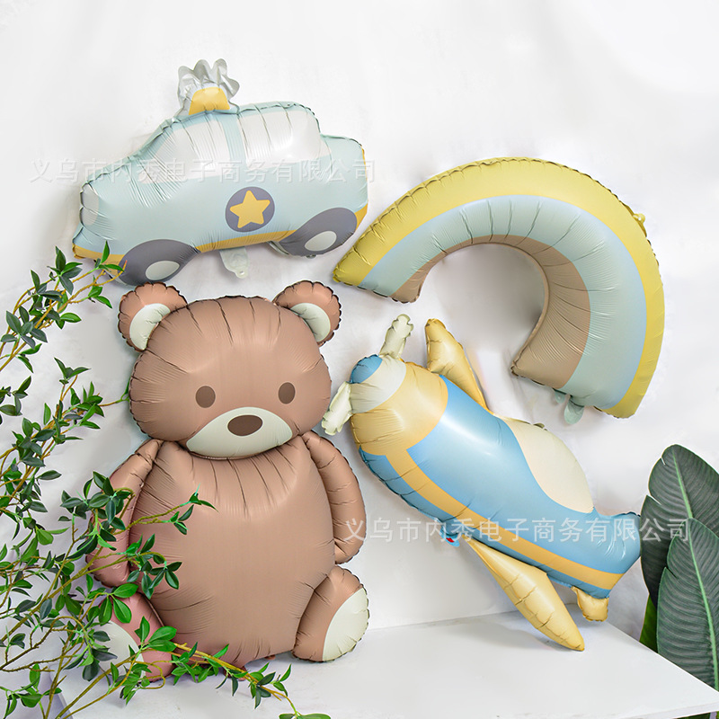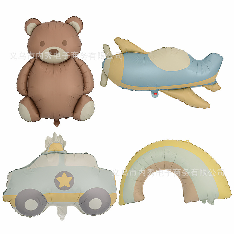新款哑光飞机气球ins磨砂小熊铝膜彩虹警车造型儿童生日装饰气球