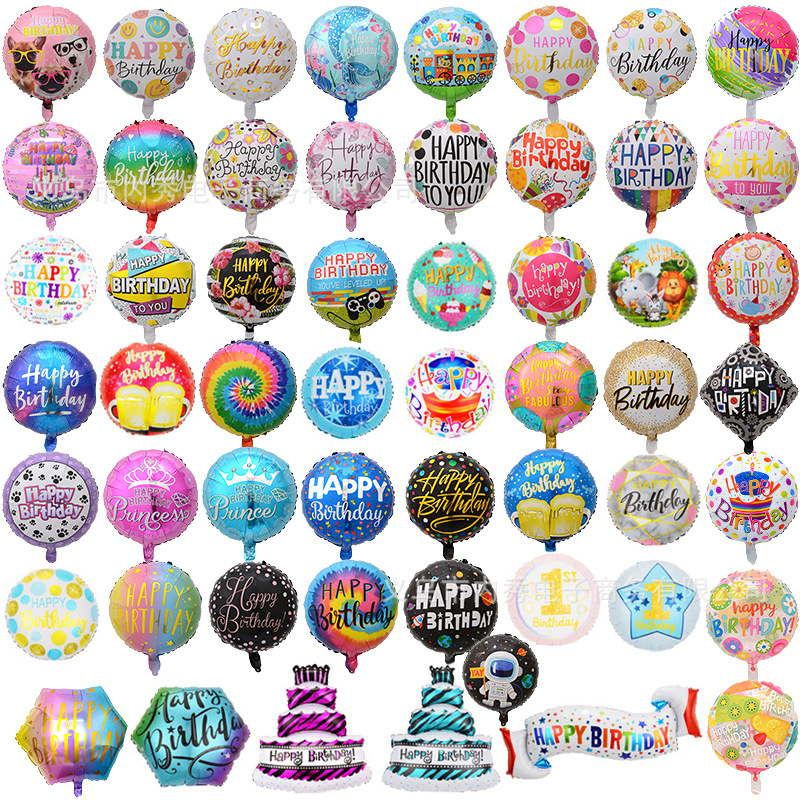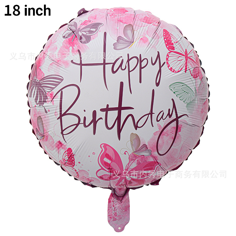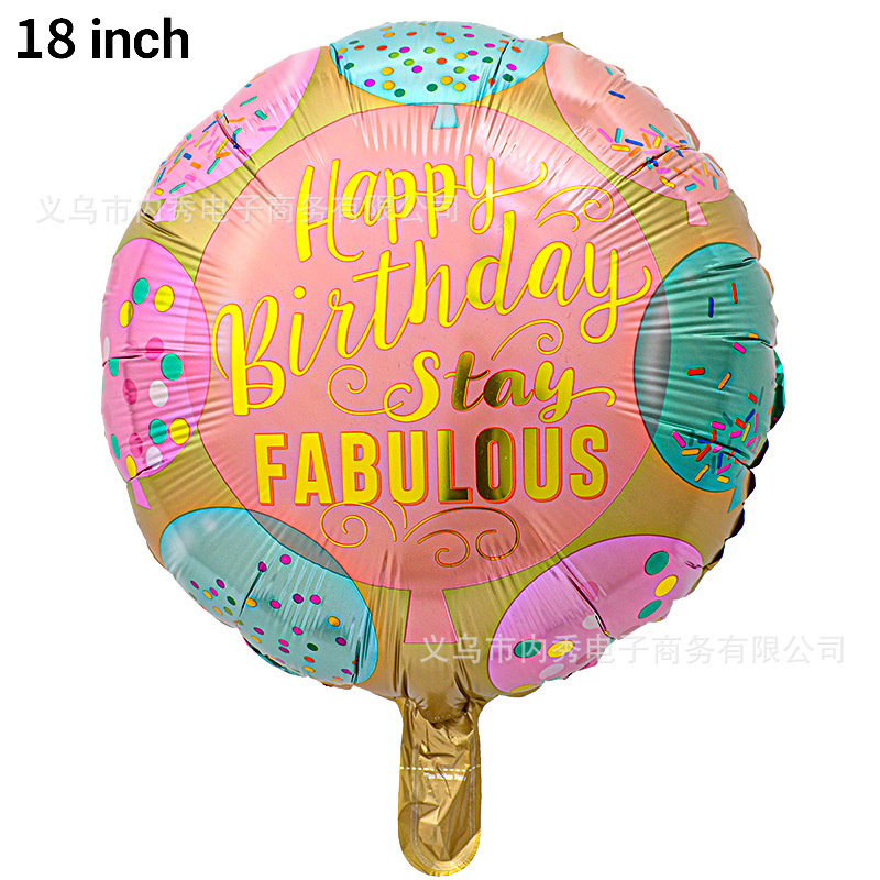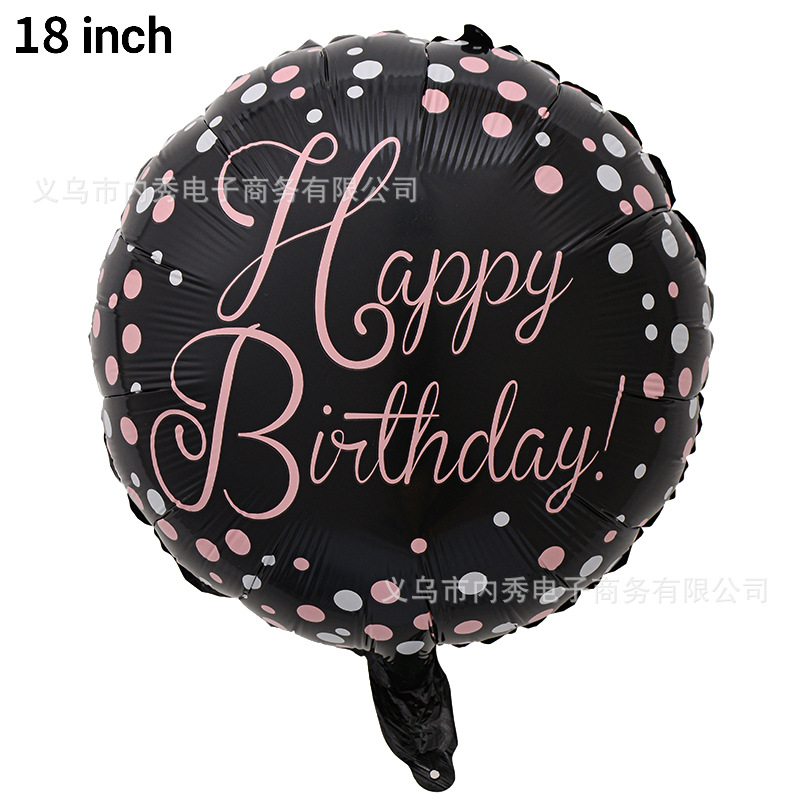 生日快乐气球18寸圆球HAPPYBIRTHDAY铝膜气球生日装饰派对布置
