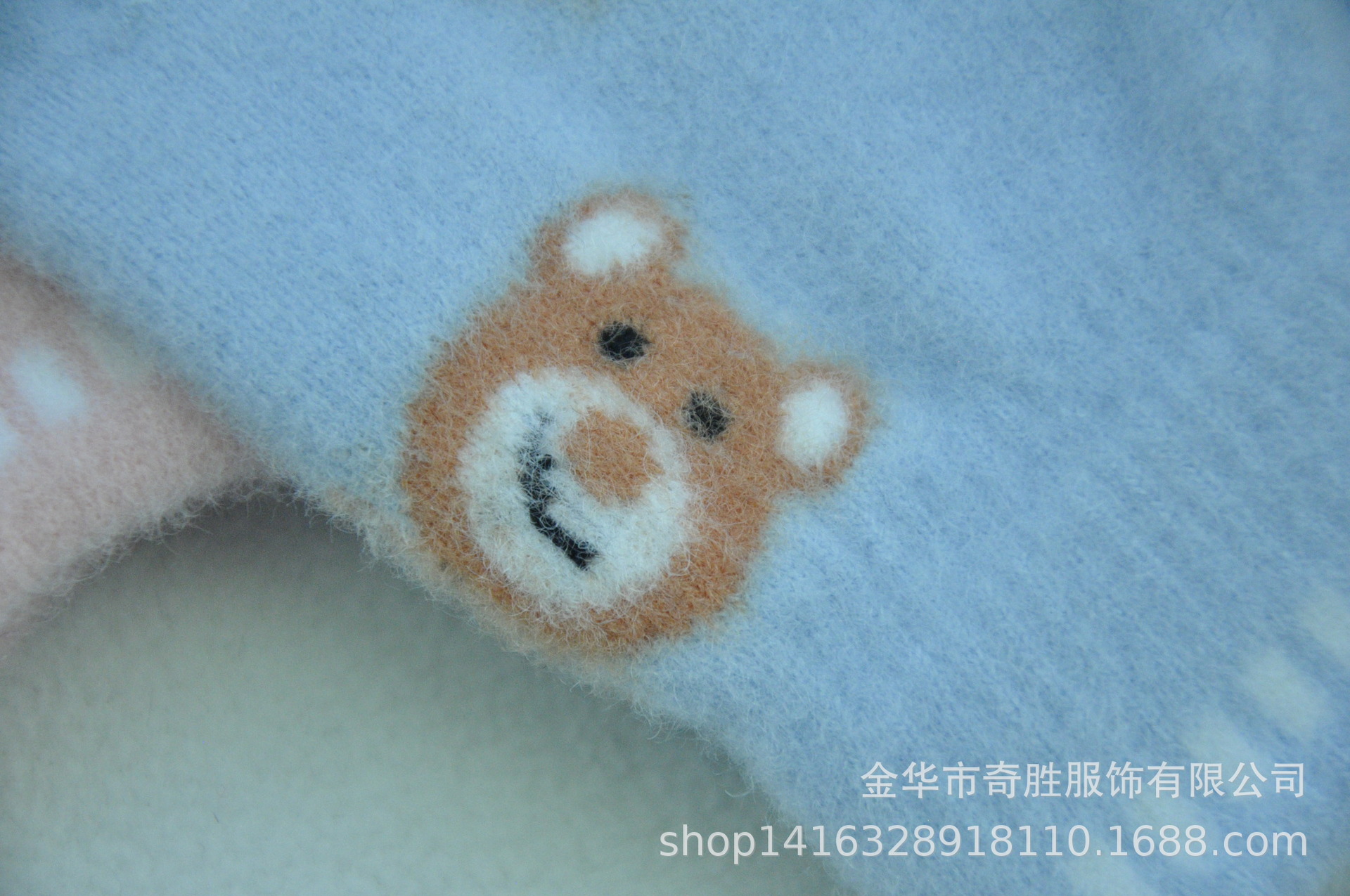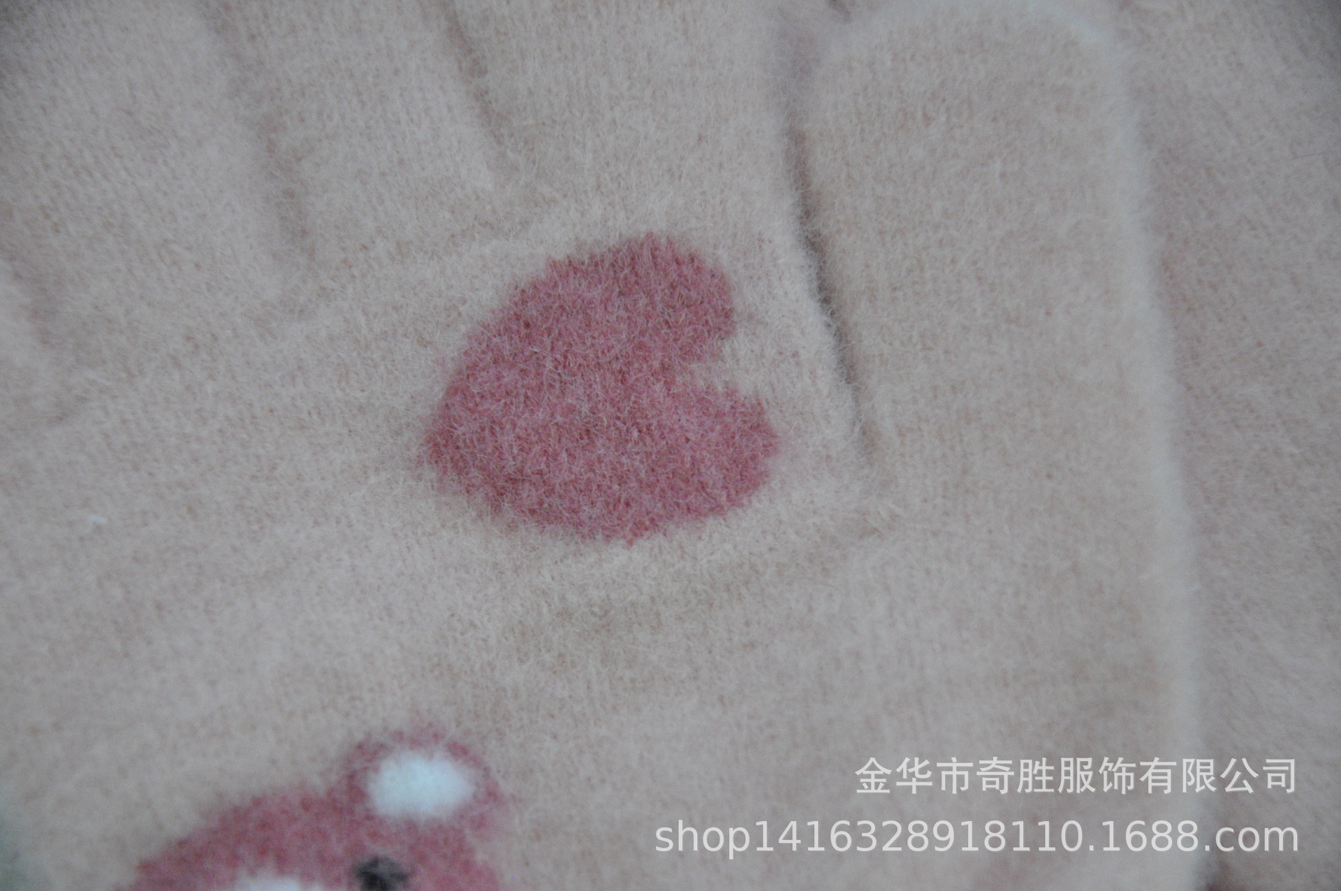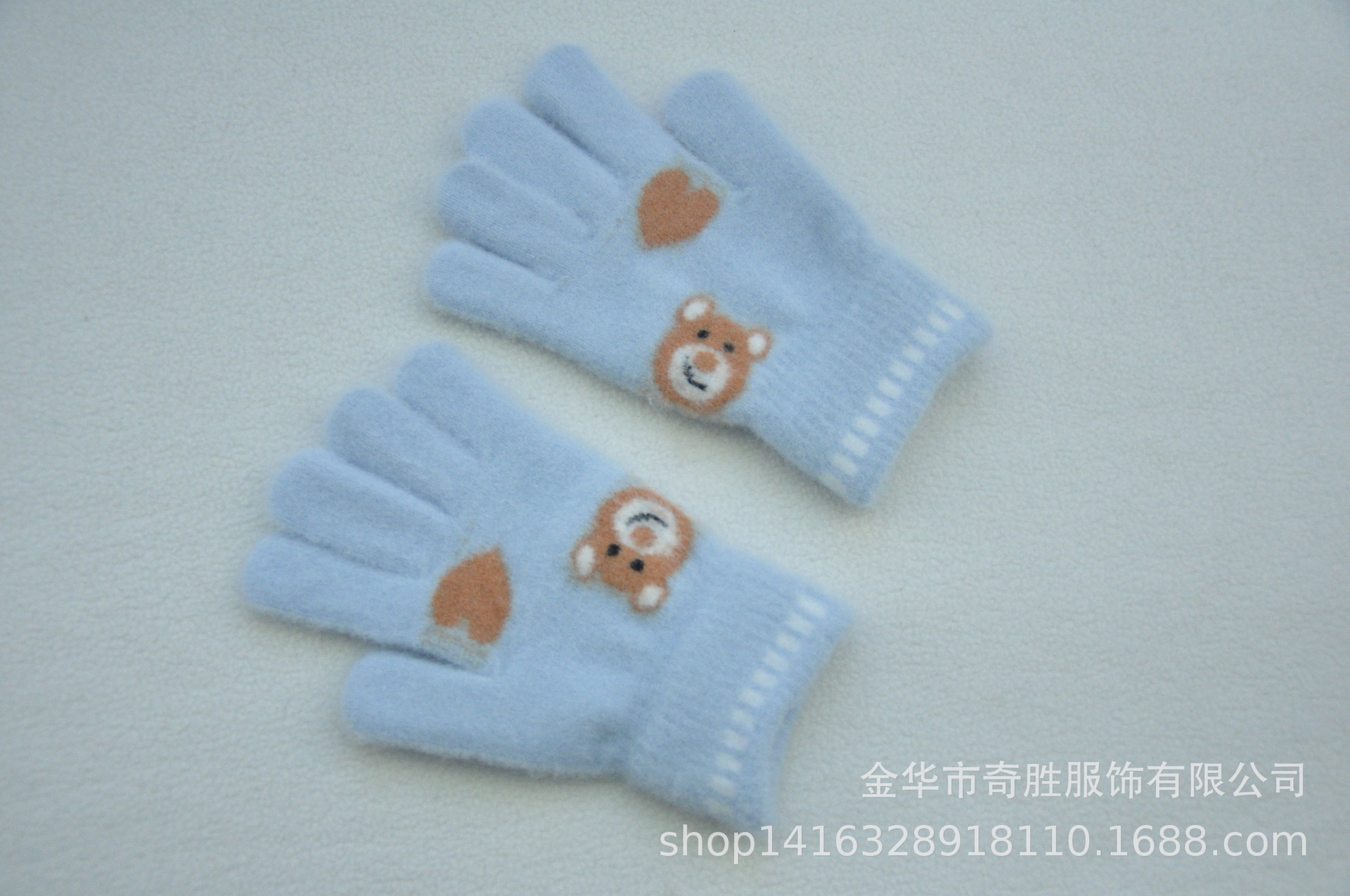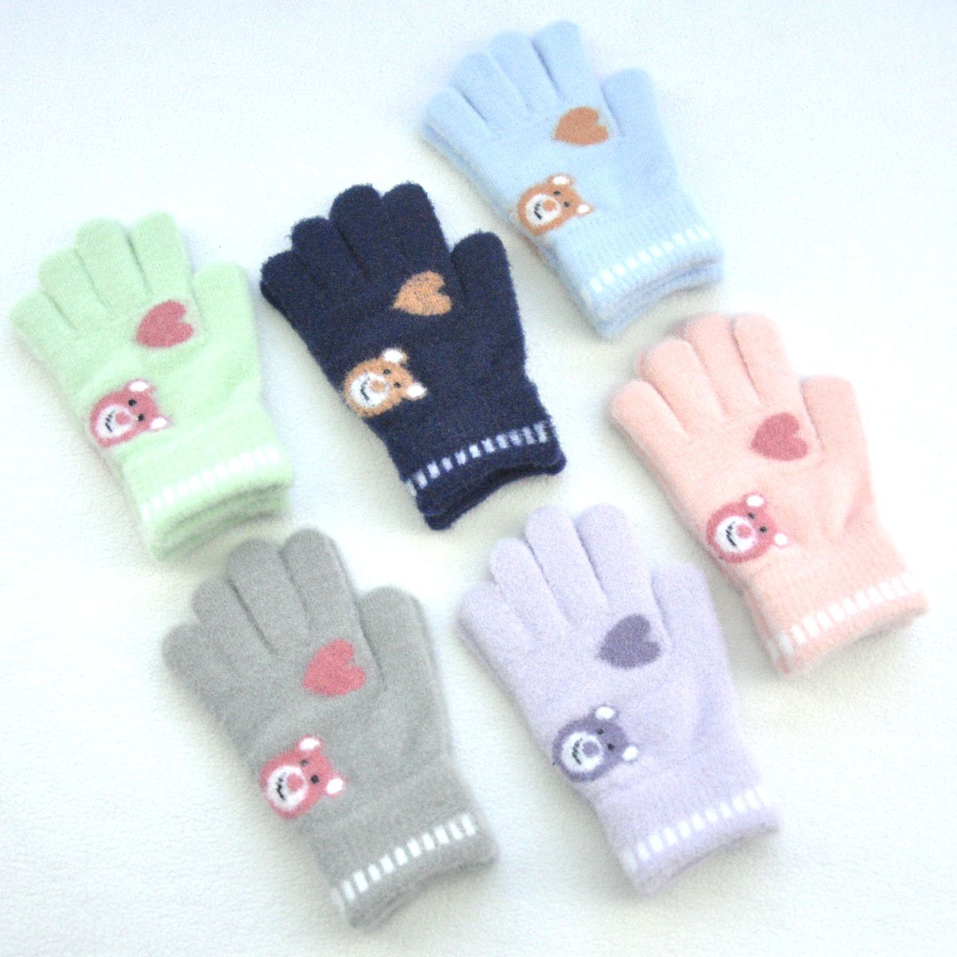 儿童新款冬季保暖加绒加厚貂毛手套男女中童全指防寒小熊提花手套
