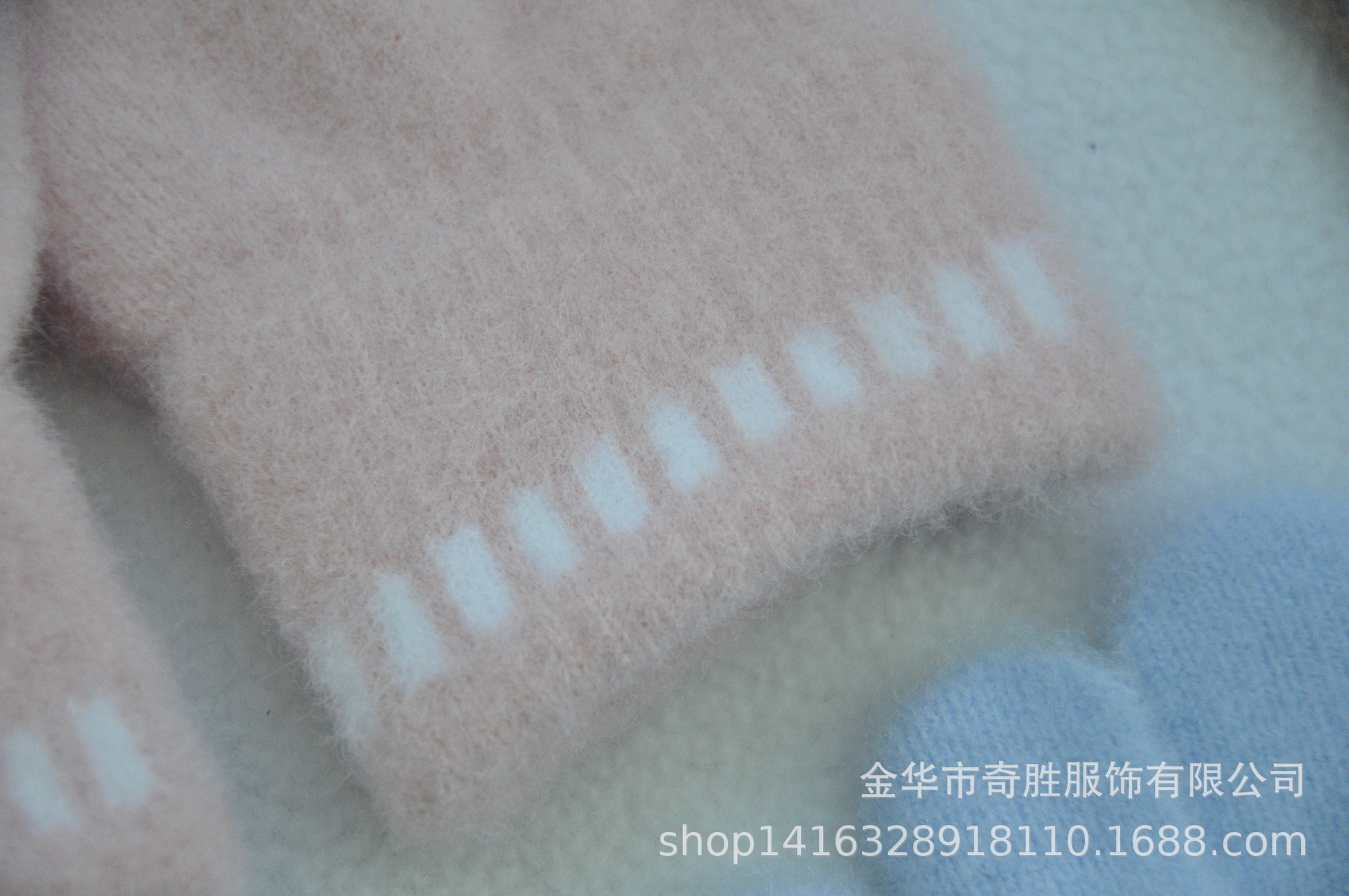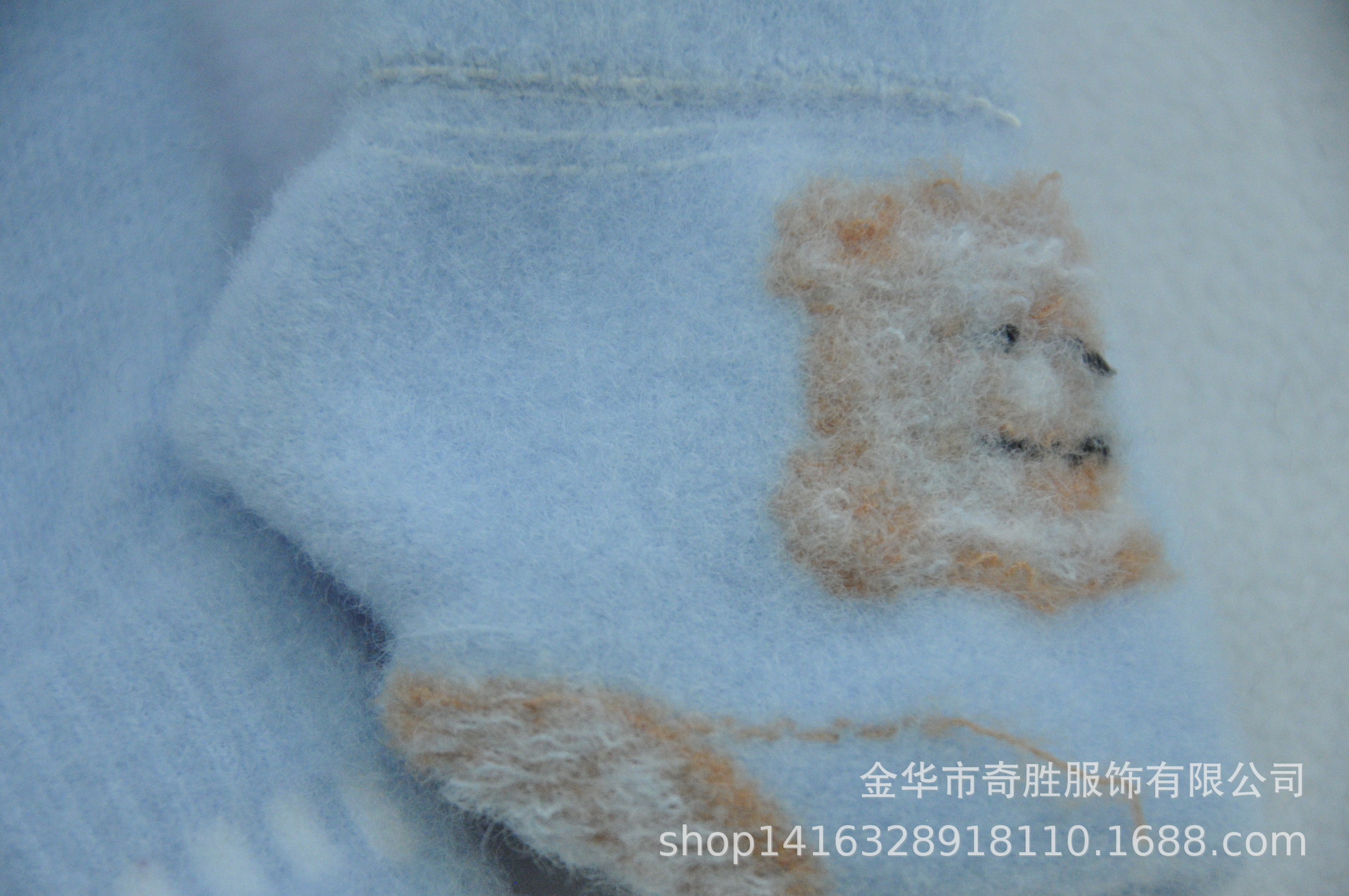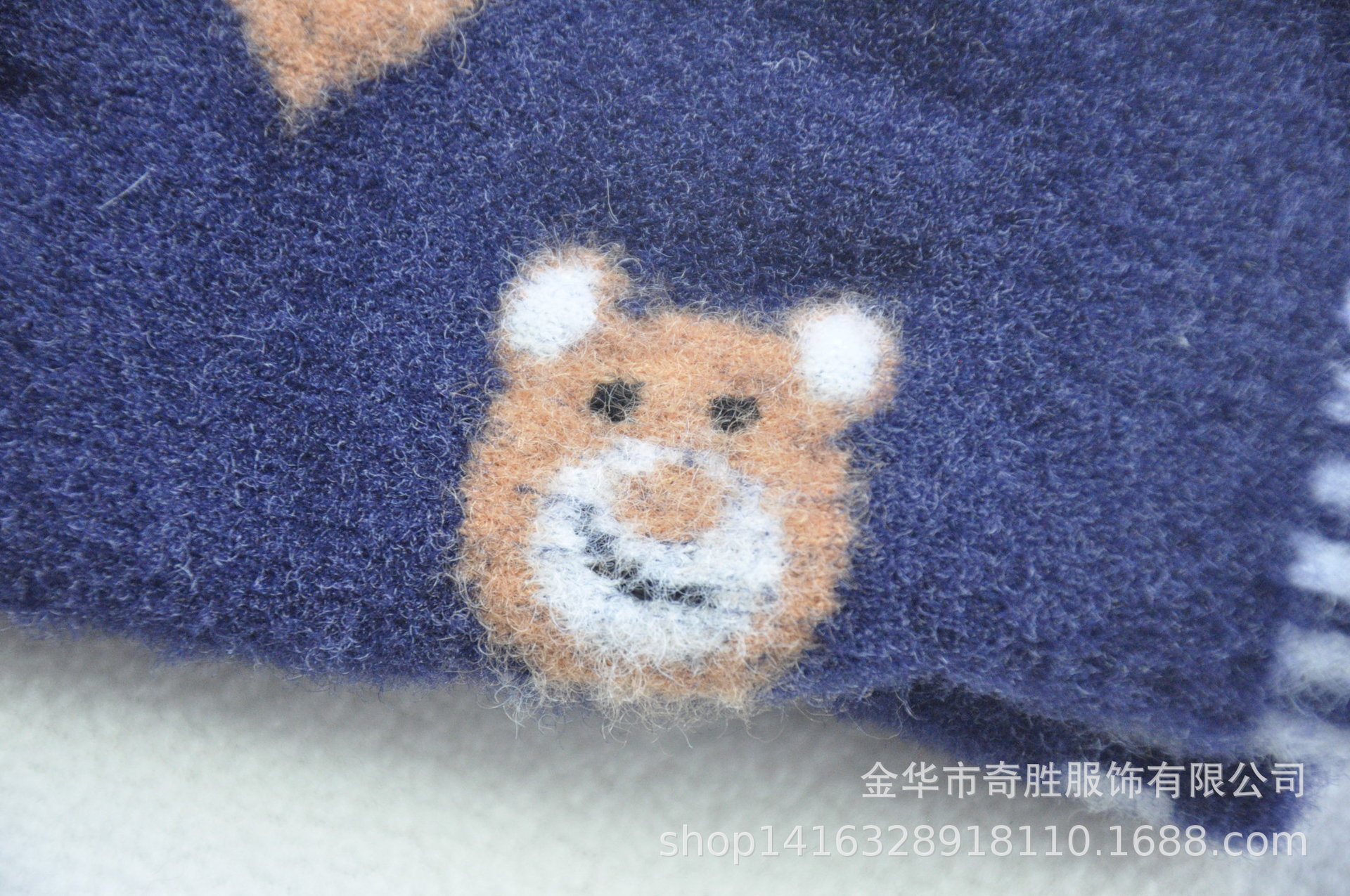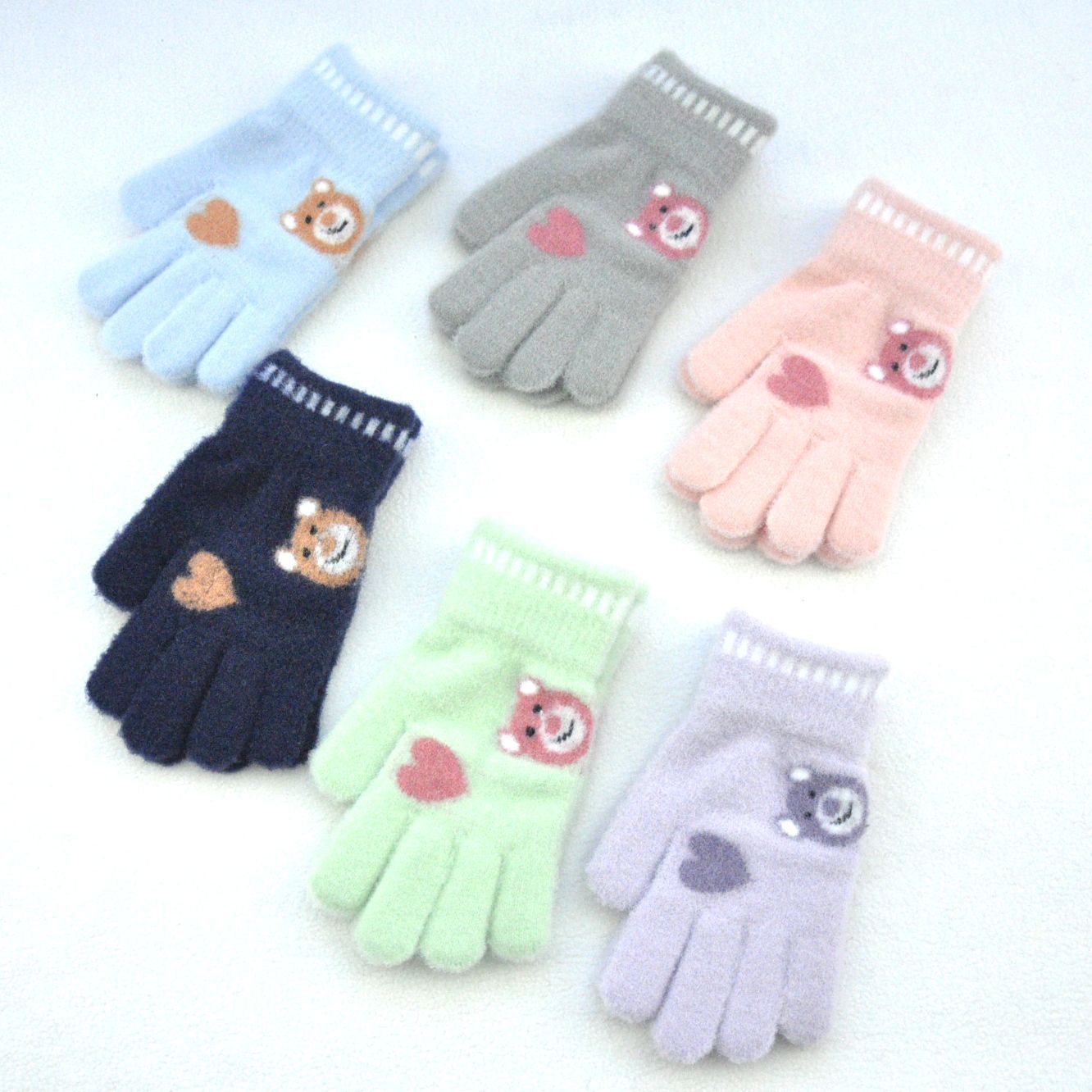 儿童新款冬季保暖加绒加厚貂毛手套男女中童全指防寒小熊提花手套