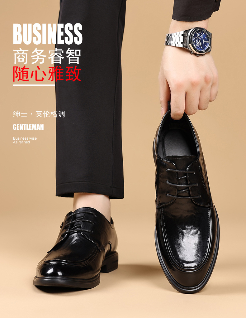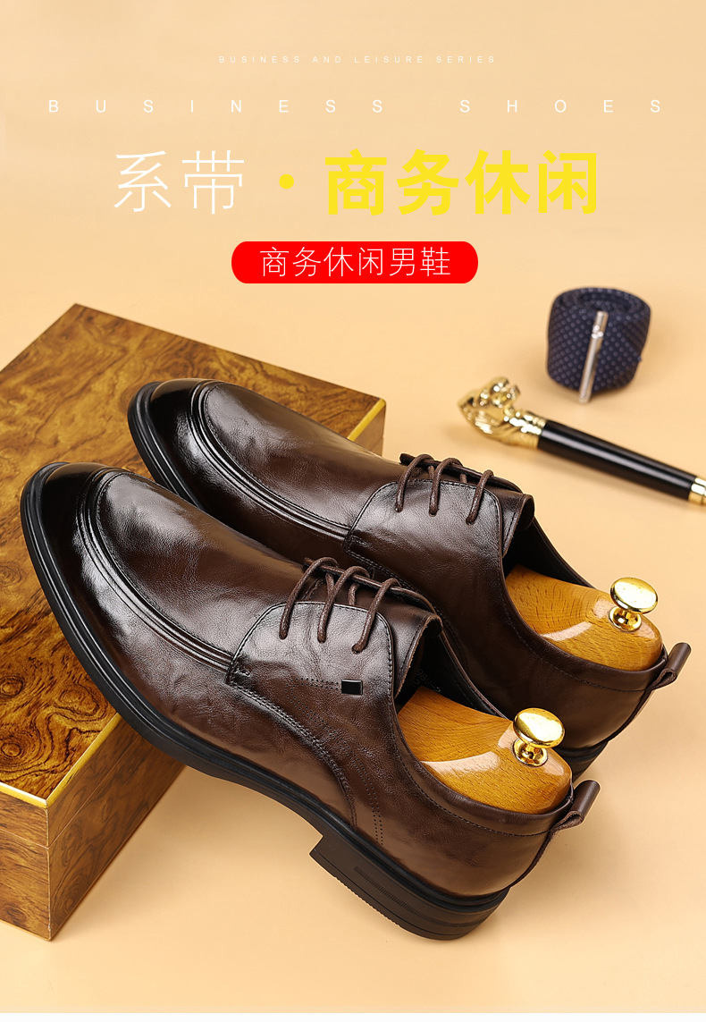 头层牛皮新款商务皮鞋男尖头正装真皮男单鞋软底透气男鞋一件代发