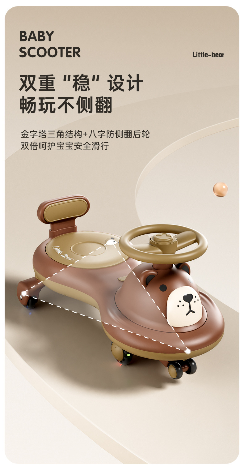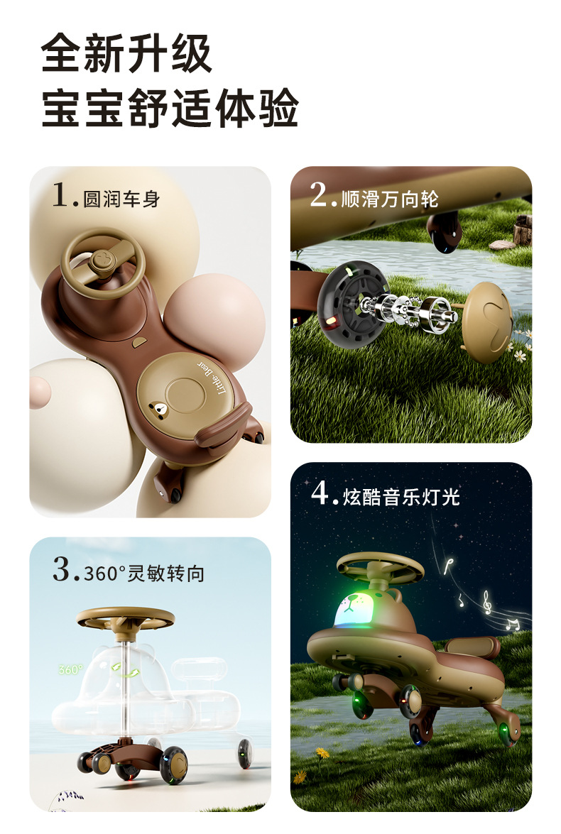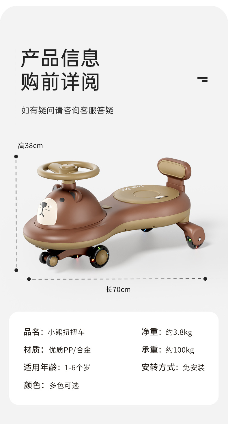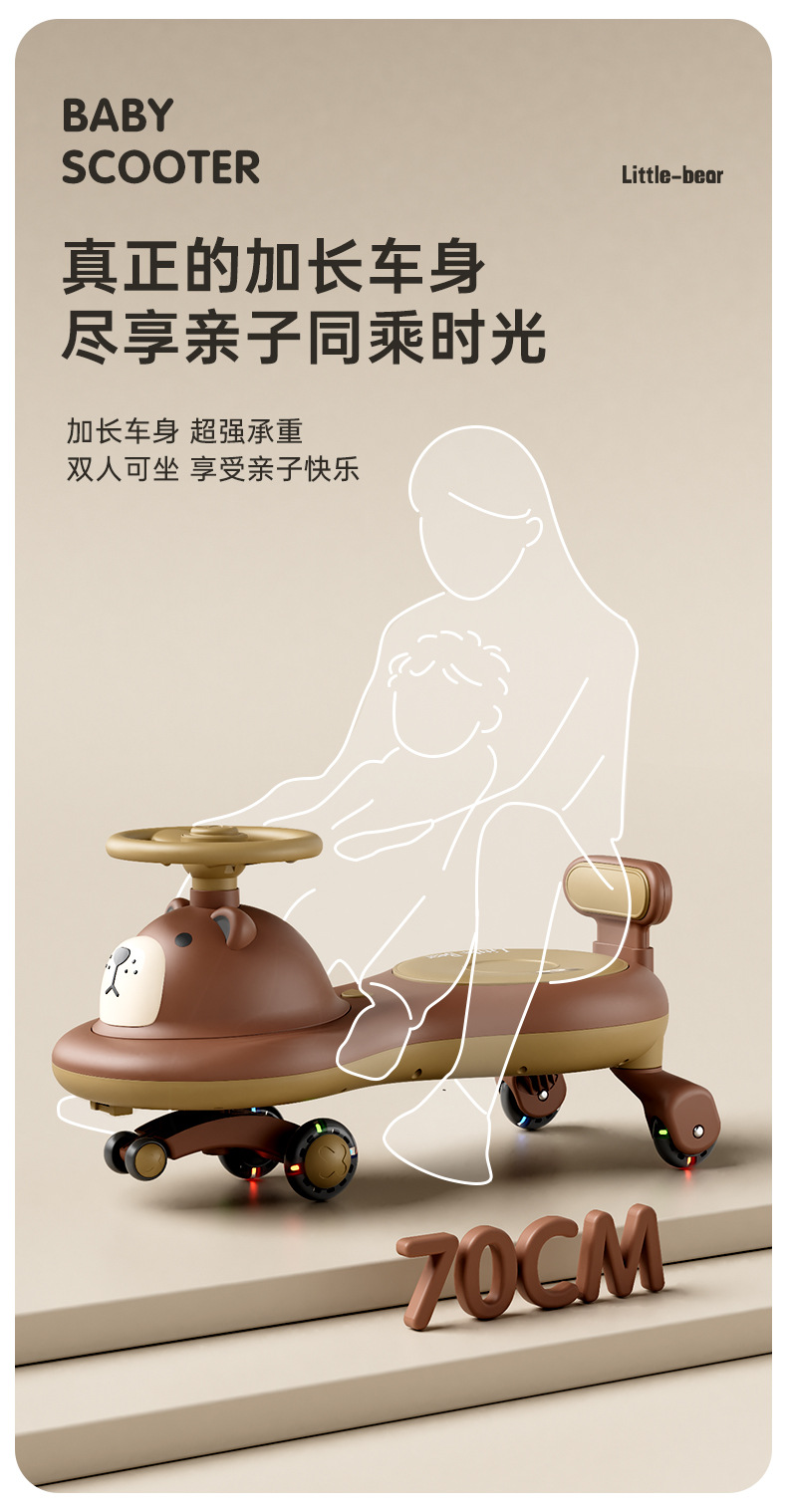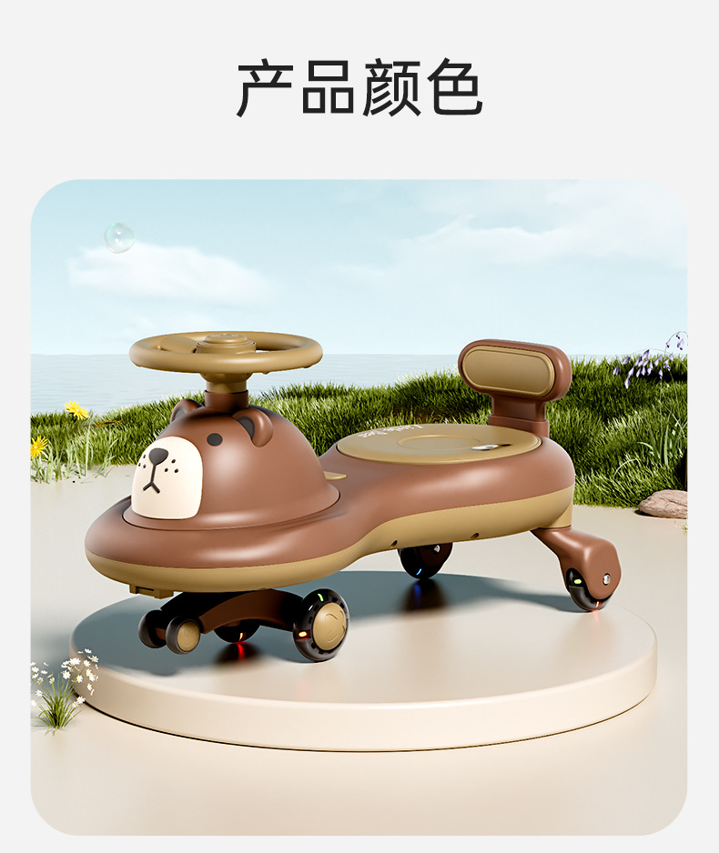 小熊卡通儿童扭扭车1-3岁宝宝大人带灯光可坐人滑行玩具车童车