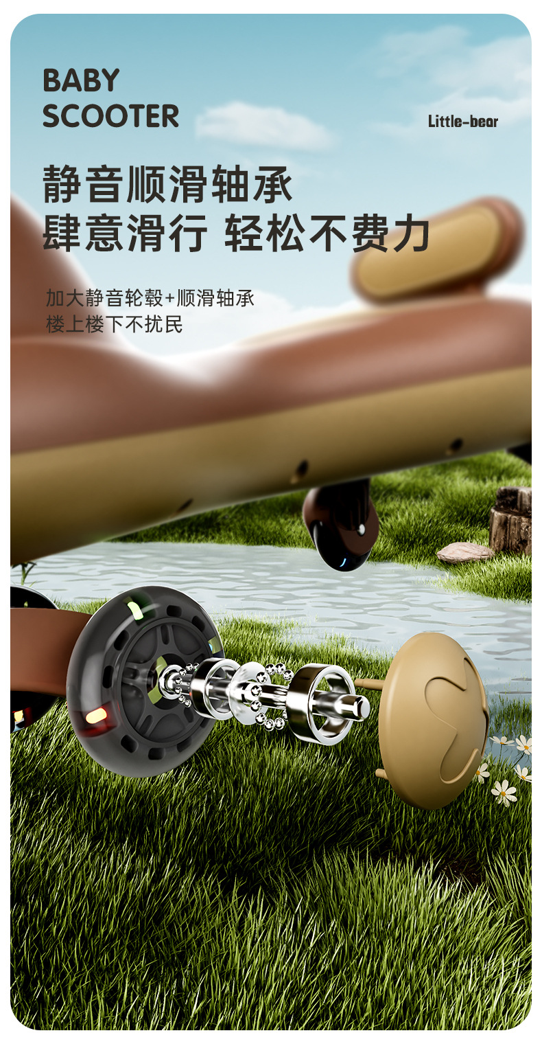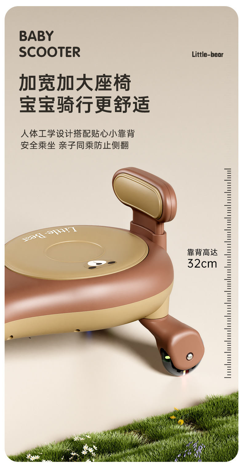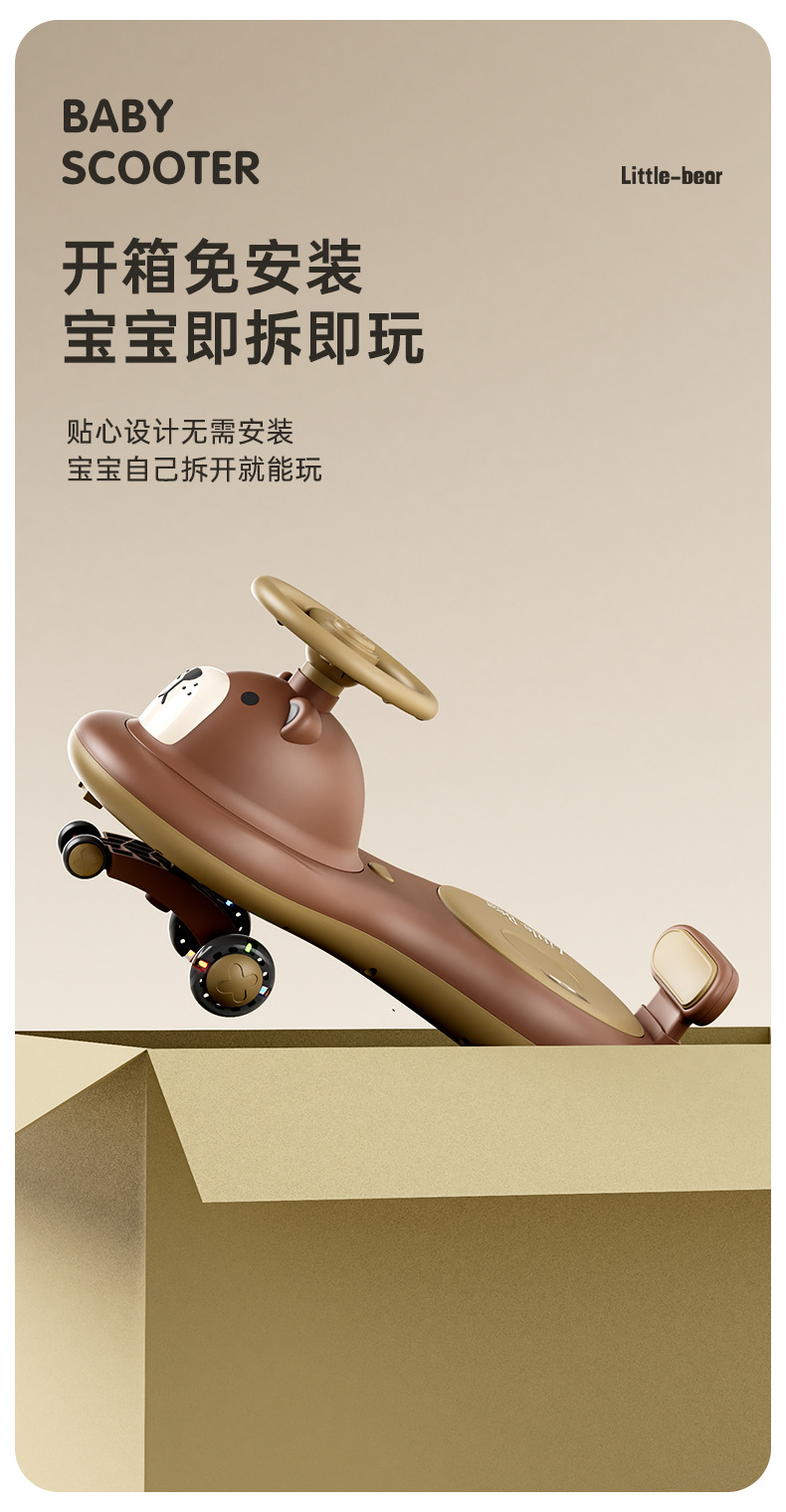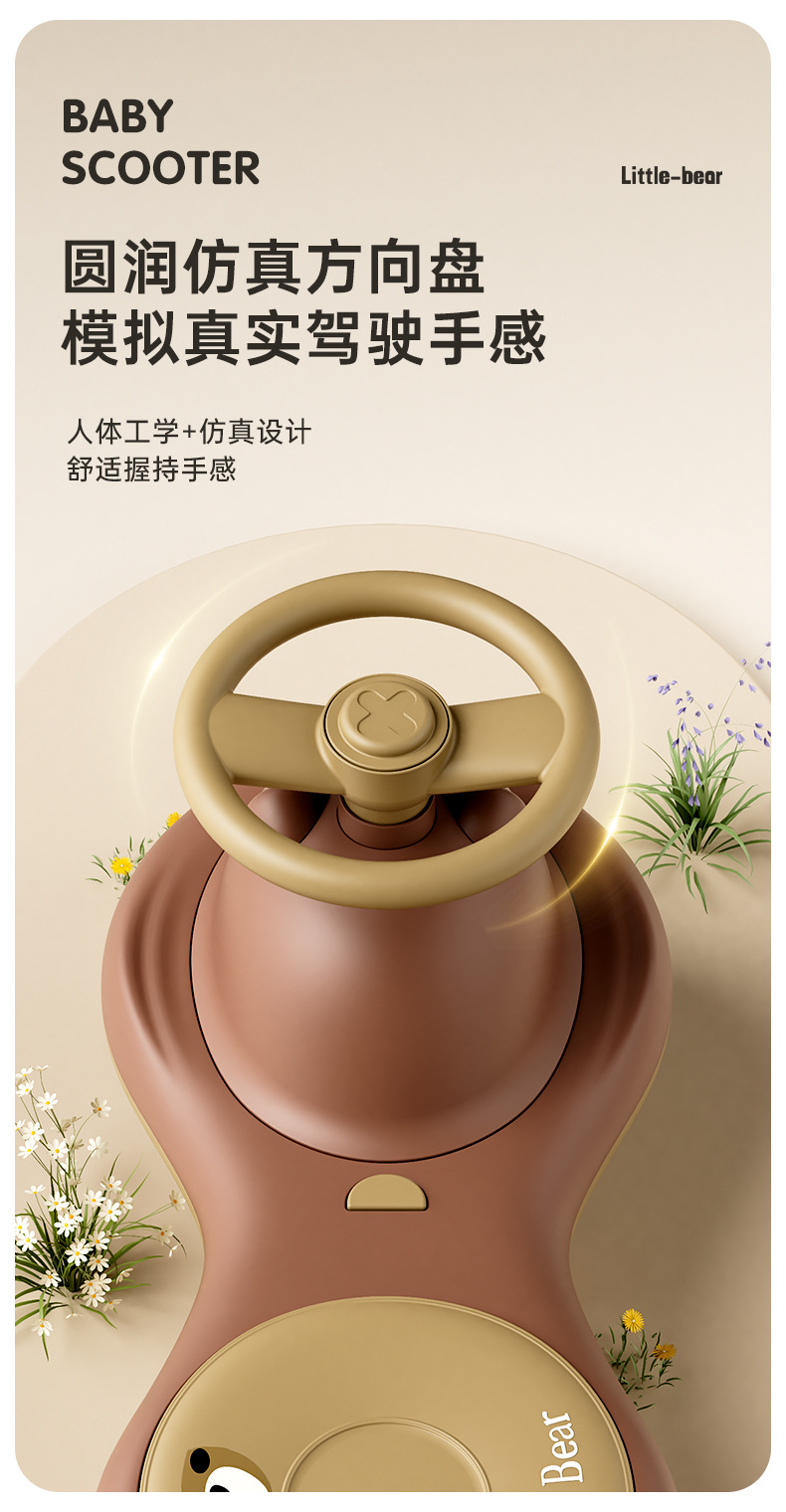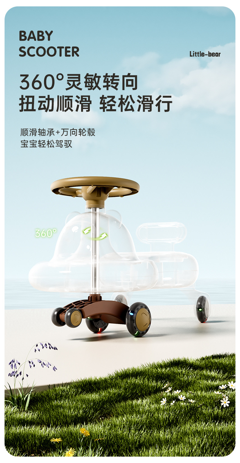 小熊卡通儿童扭扭车1-3岁宝宝大人带灯光可坐人滑行玩具车童车