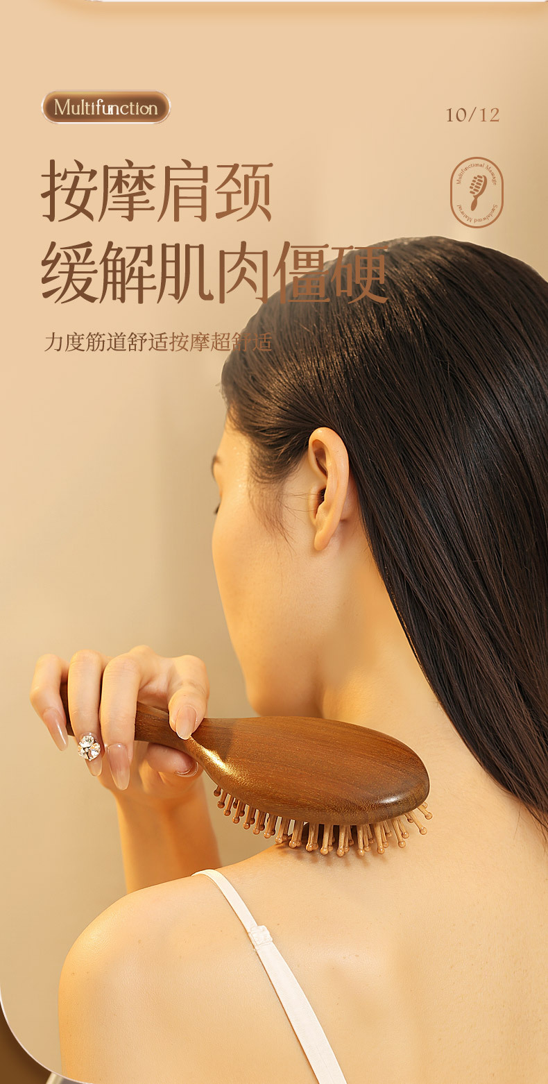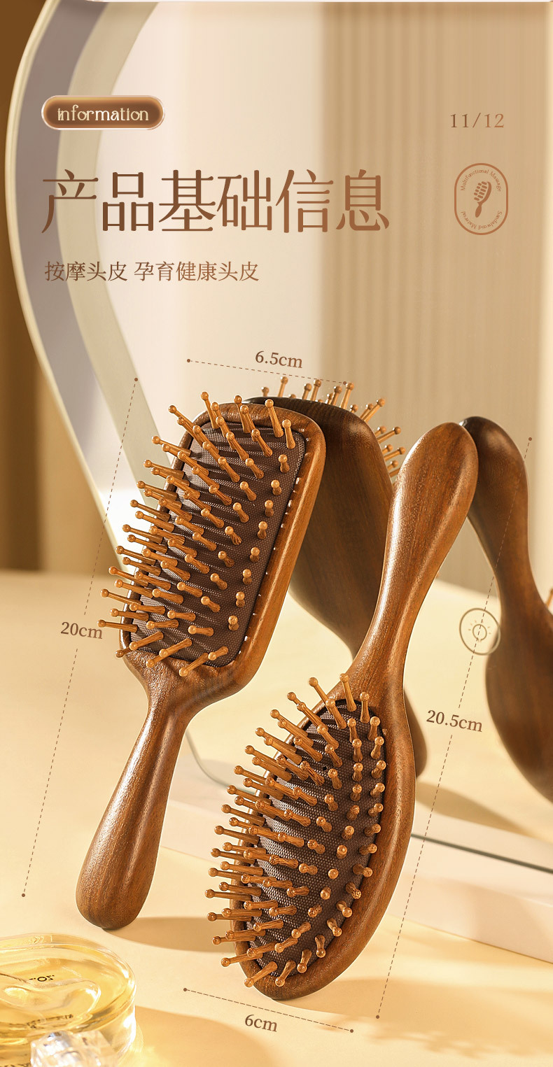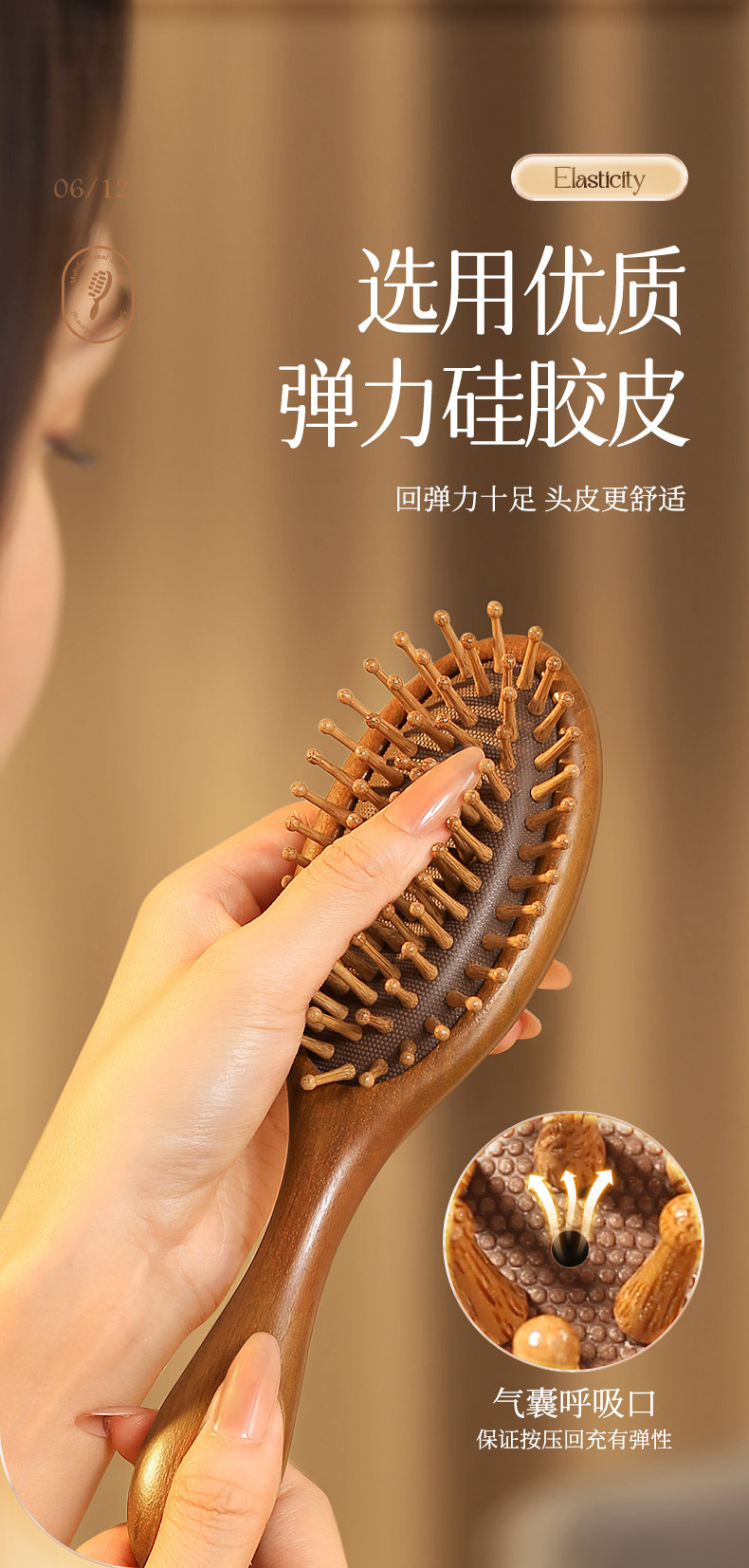 檀木气垫梳子蓬松头部按摩梳经络气囊梳气垫木梳子小巧便携防静电