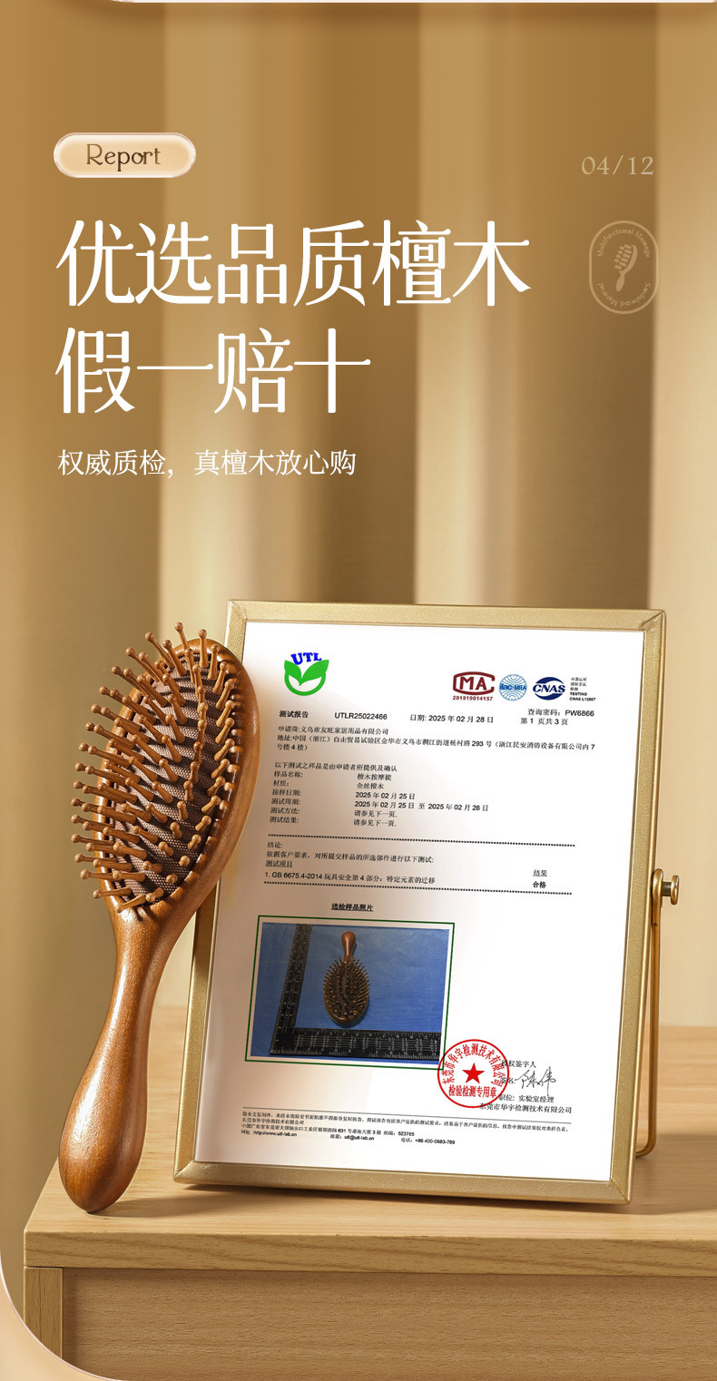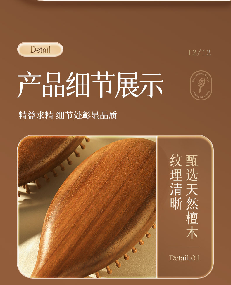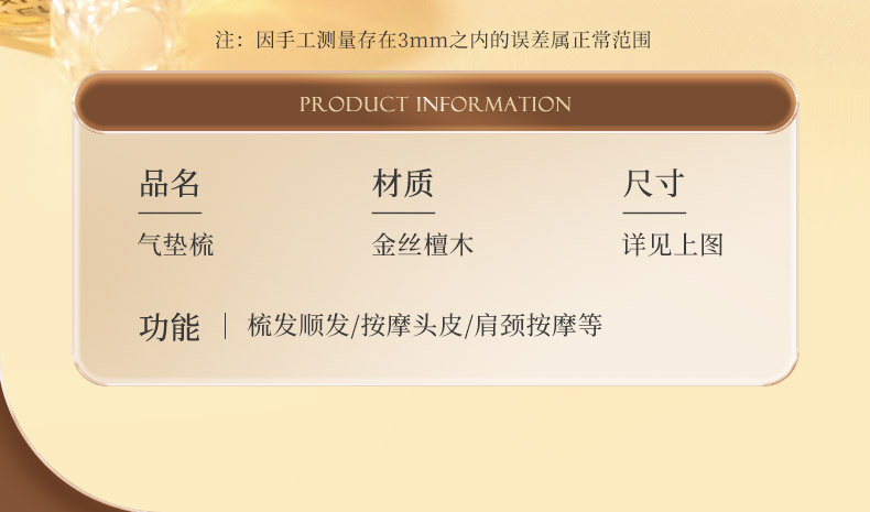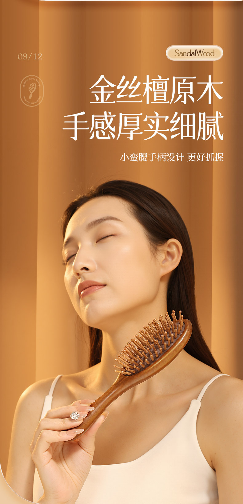檀木气垫梳子蓬松头部按摩梳经络气囊梳气垫木梳子小巧便携防静电