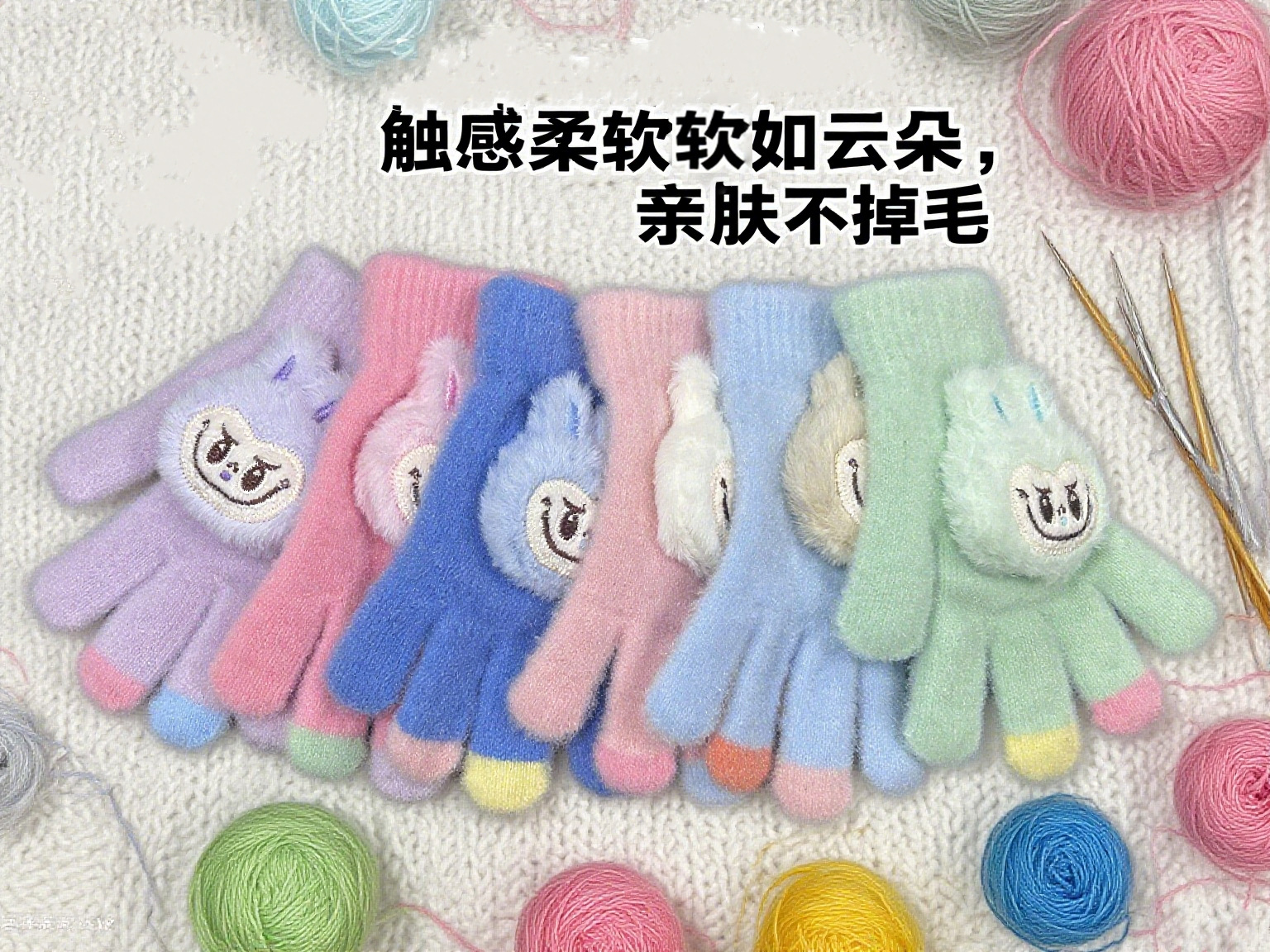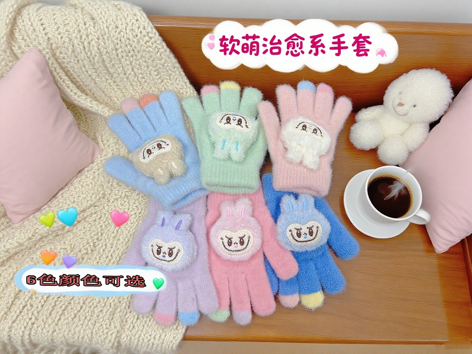 卡通毛绒儿童手套冬季保暖加厚韩版可爱小兔宝宝写字五指分指手套
