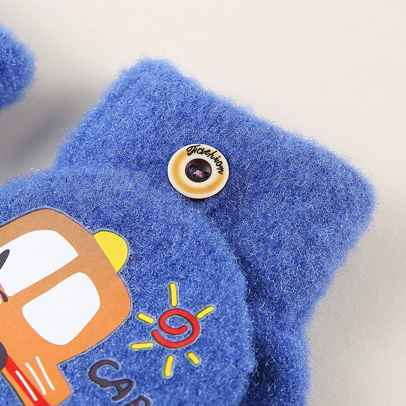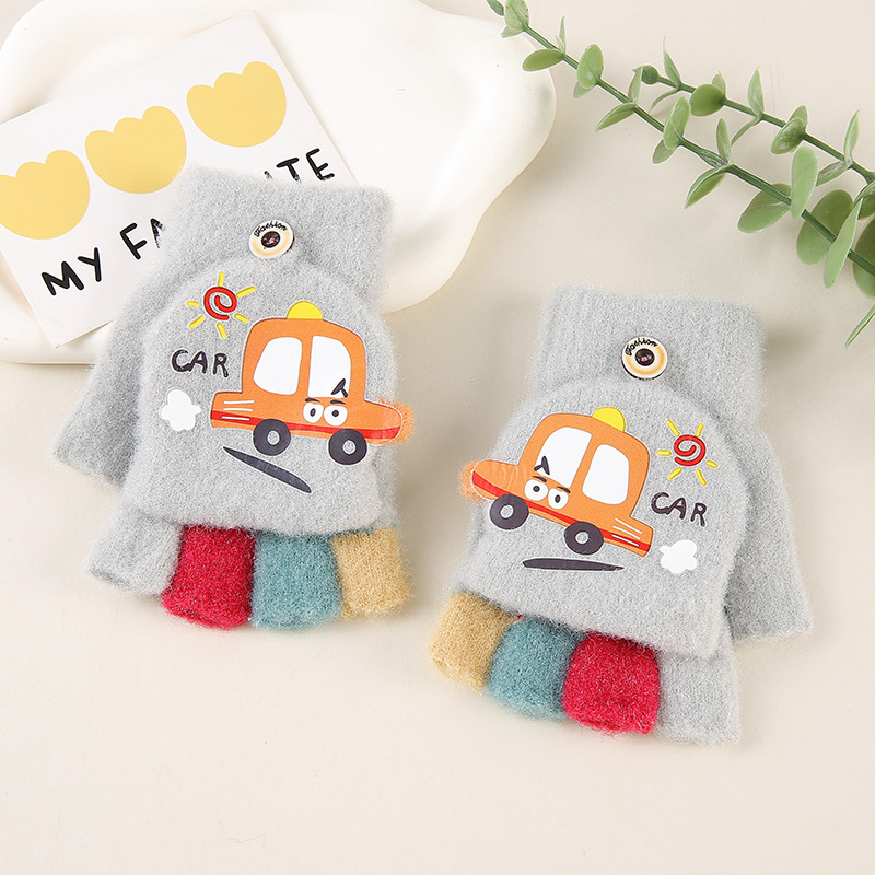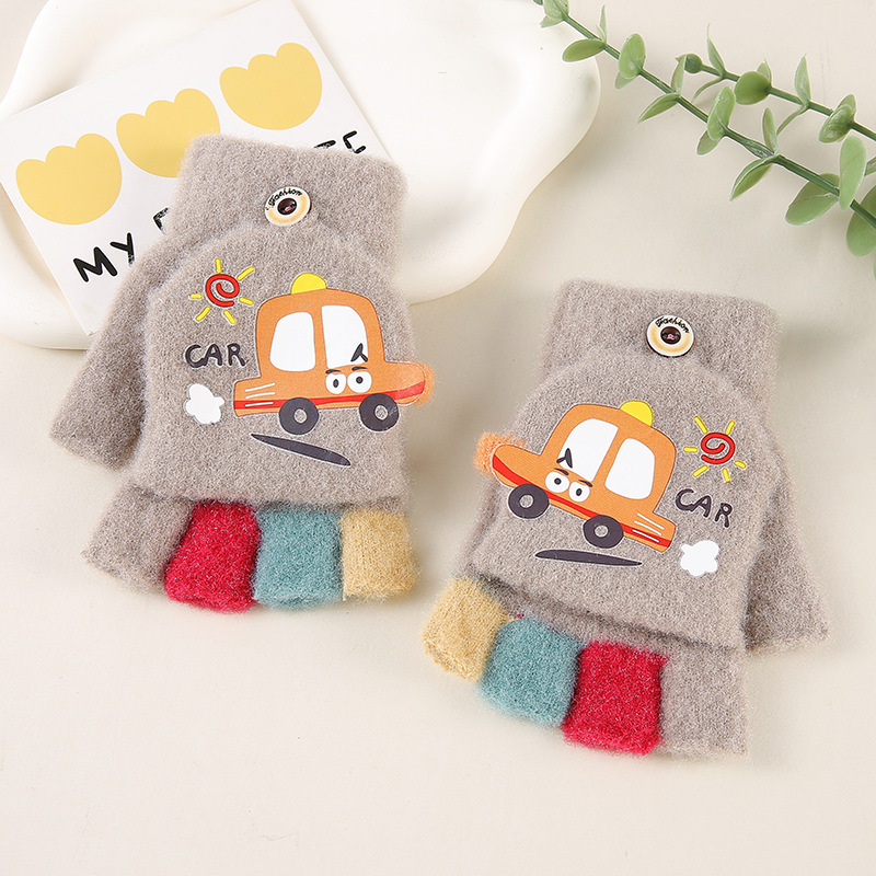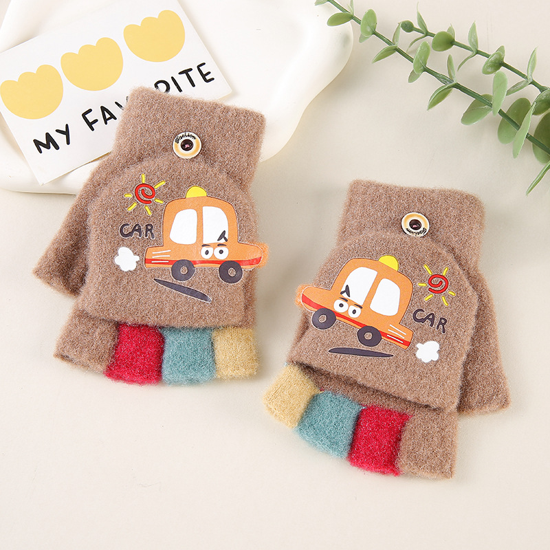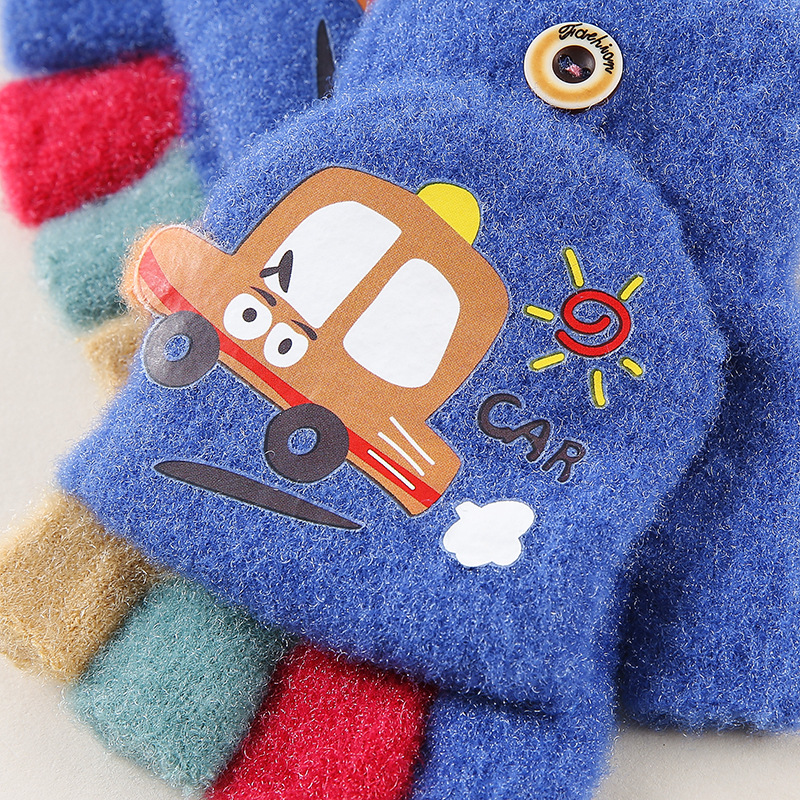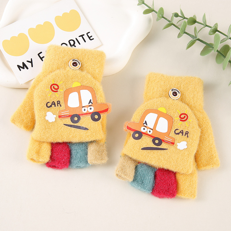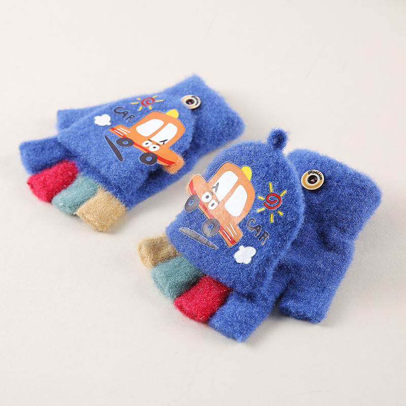 儿童手套冬天保暖小男孩卡通可爱汽车幼儿园男童半指翻盖两用手套