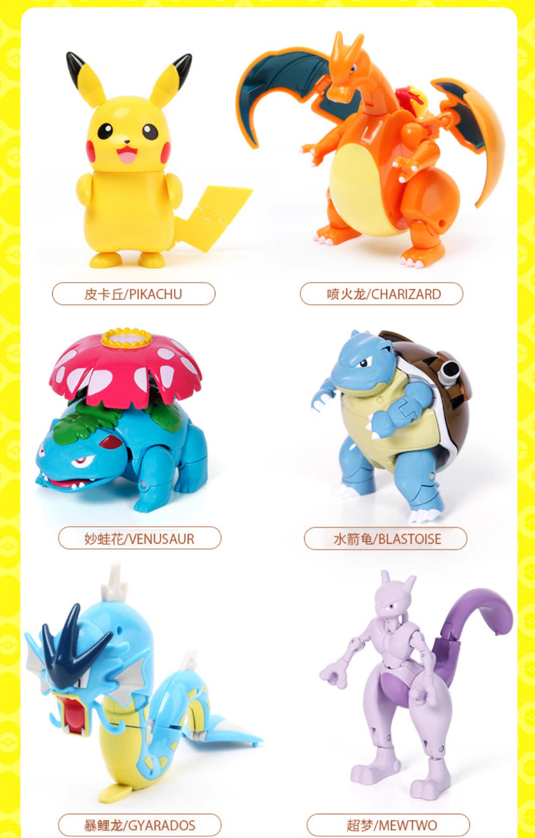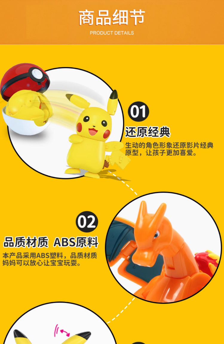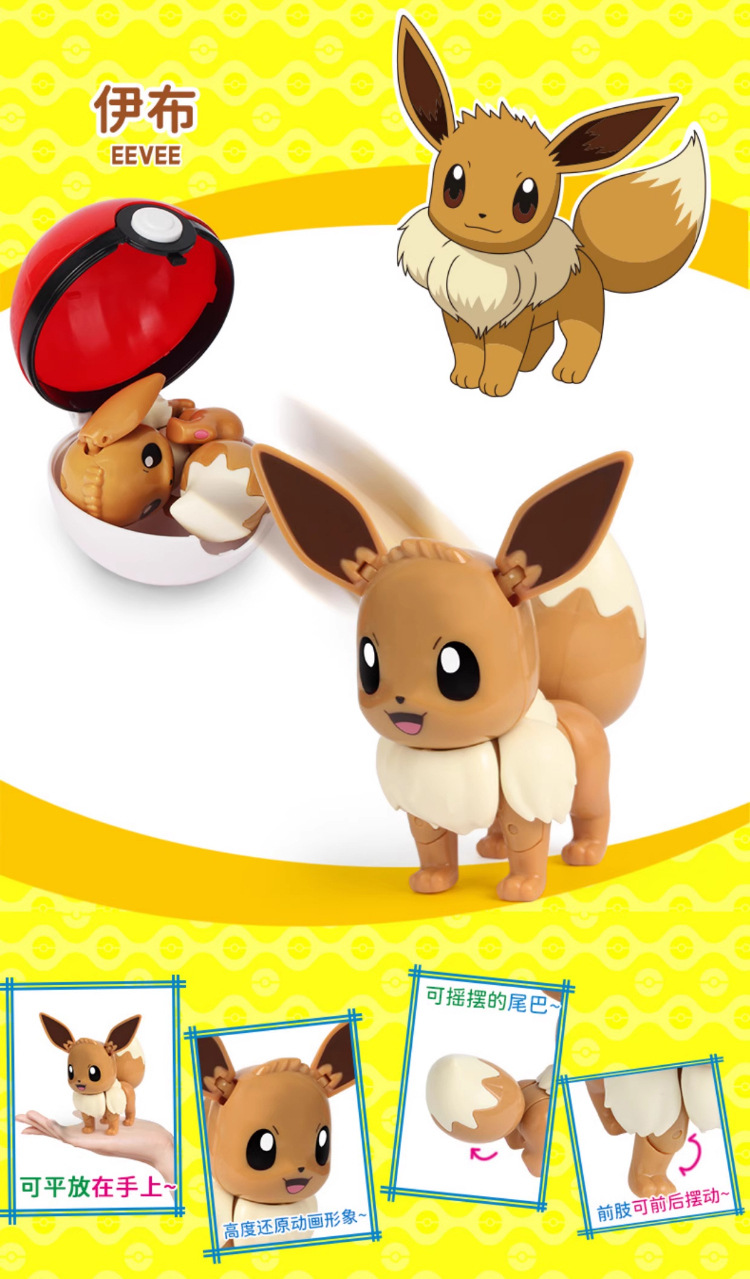 宝可梦变形精灵球关节可动玩具皮卡丘伊布玩具玩偶宠物公仔小摆件