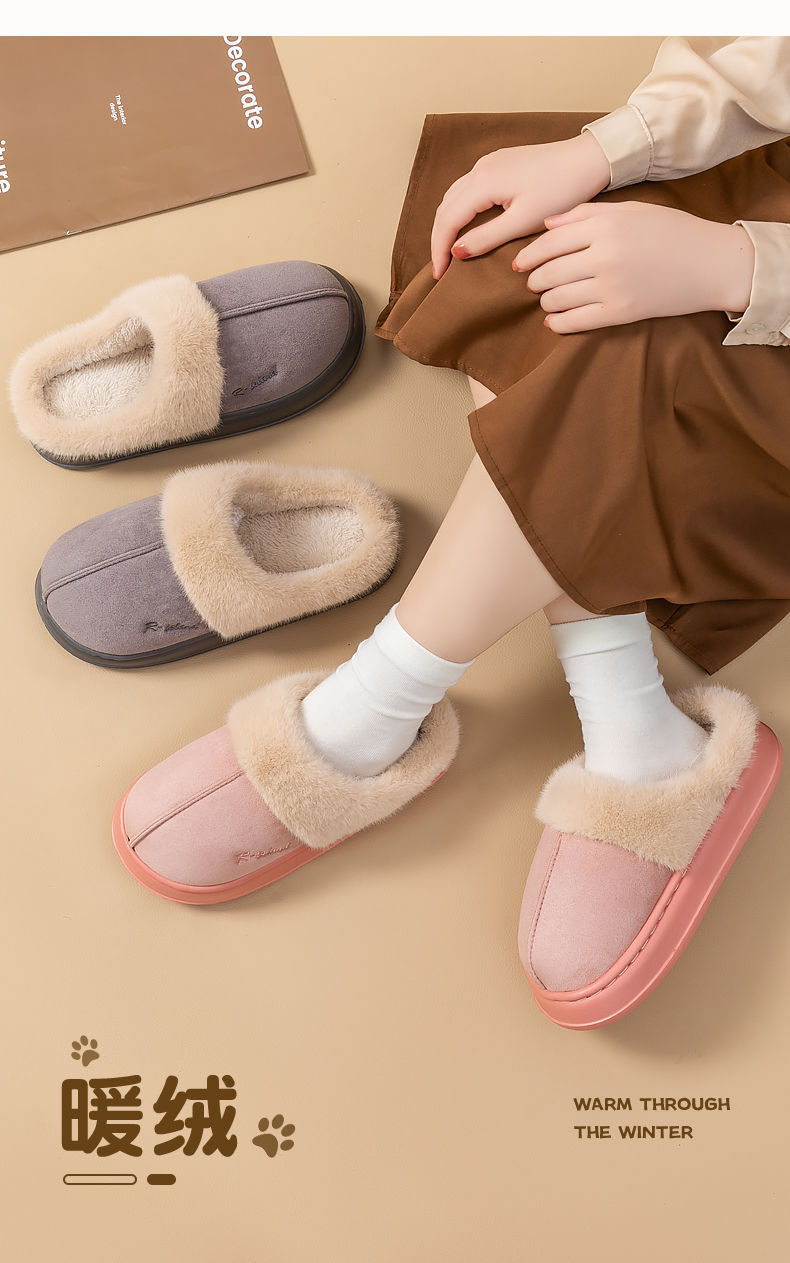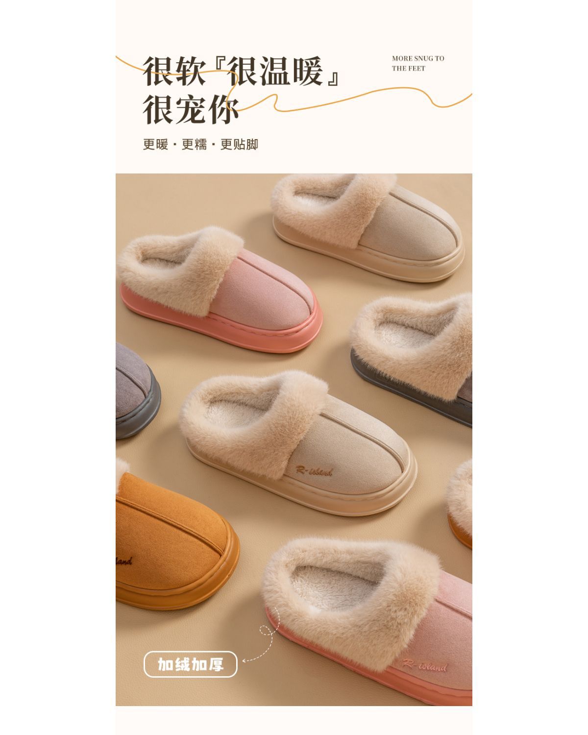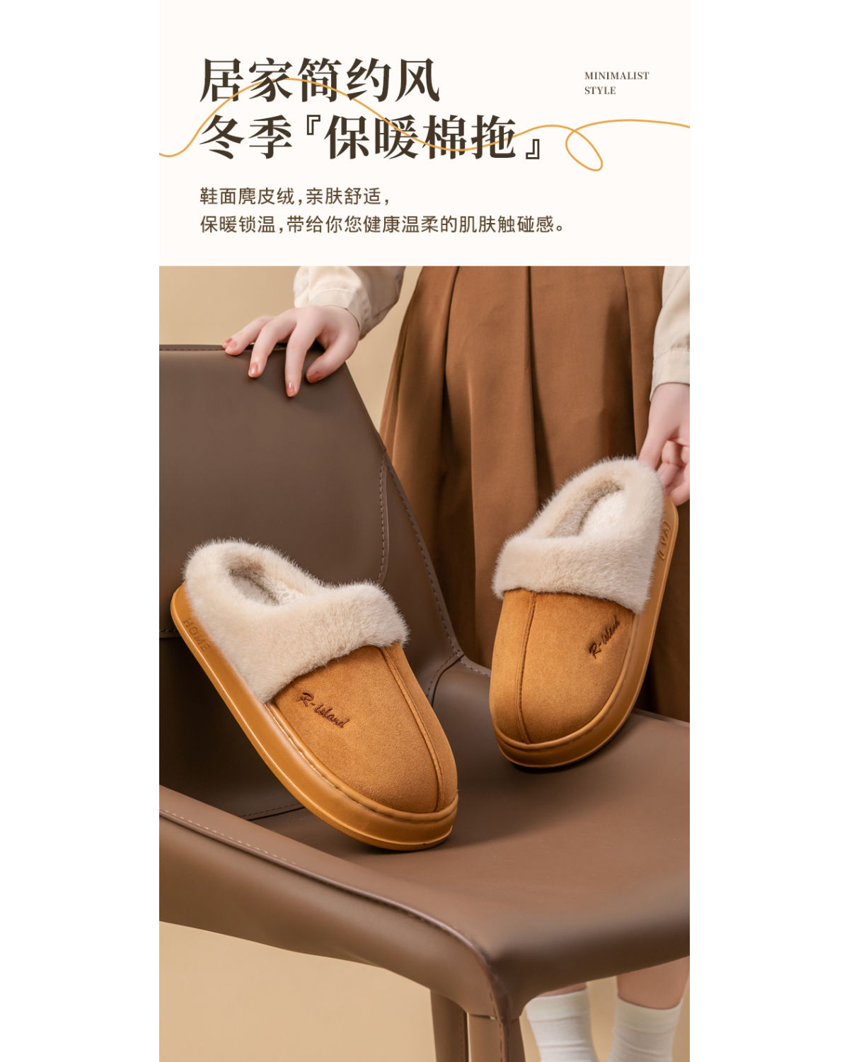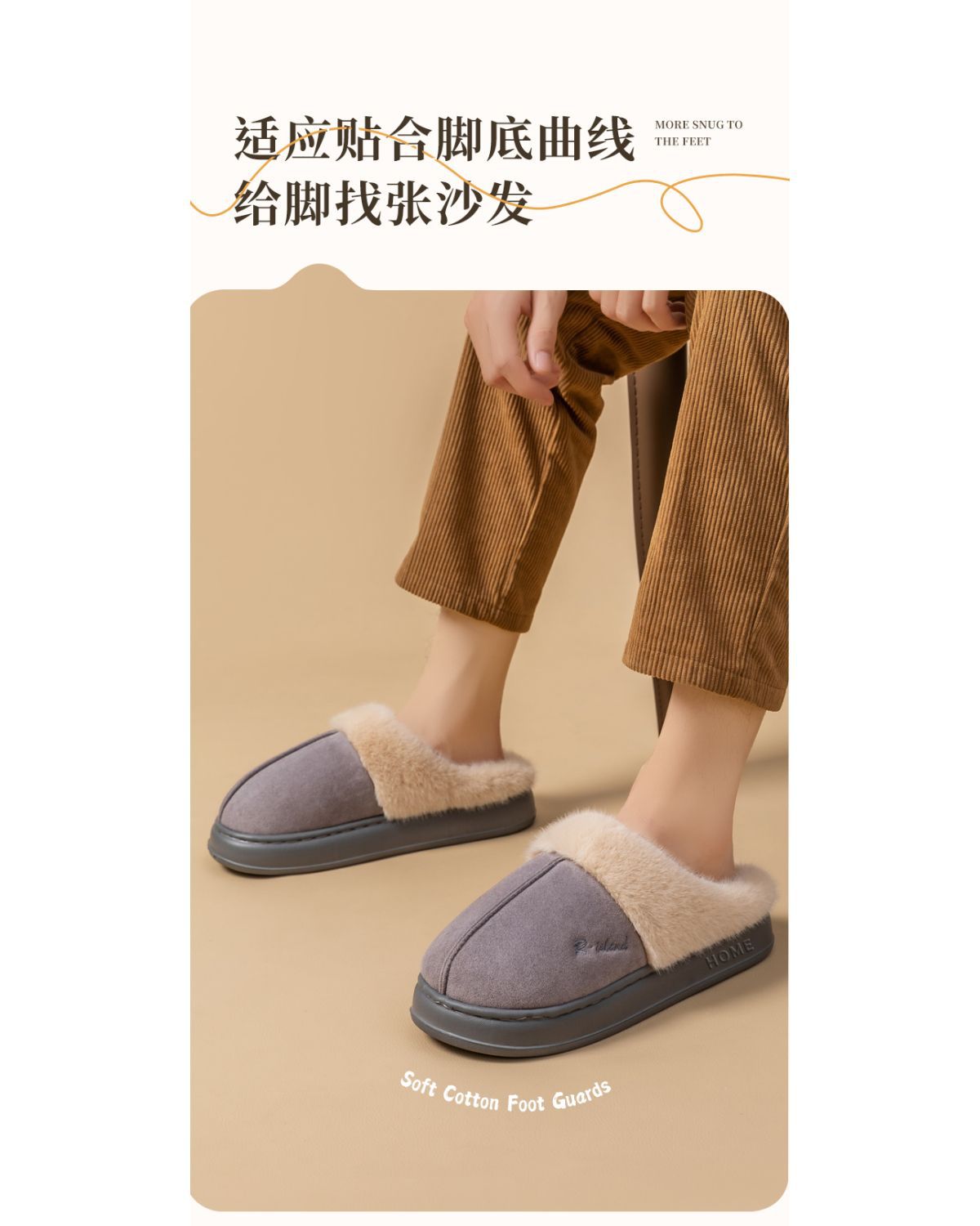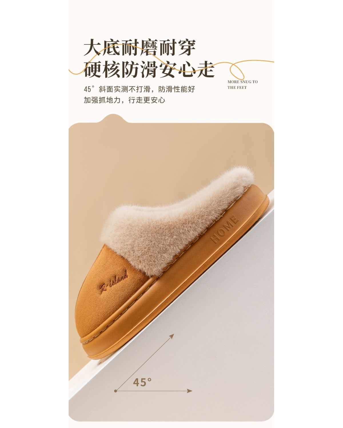 毛绒棉拖鞋女2024新款秋冬季居家用室内厚底防滑加绒保暖冬天男士