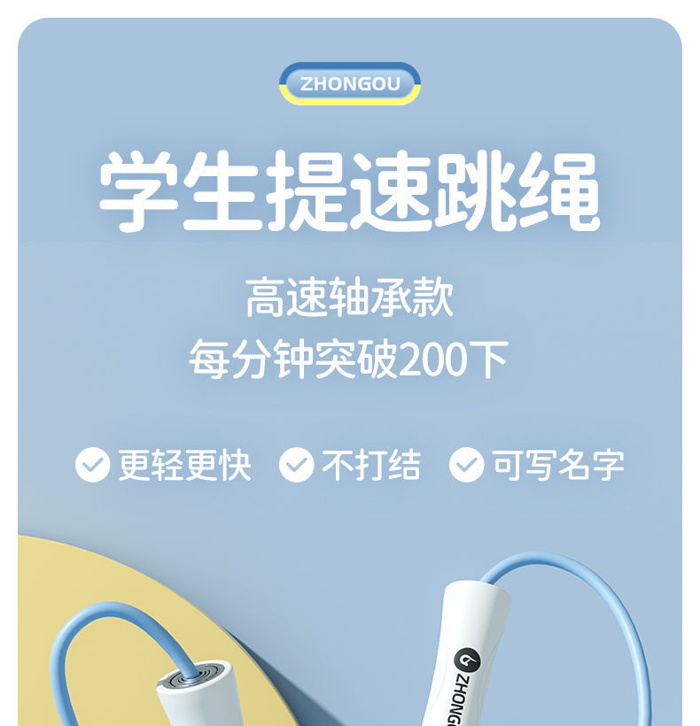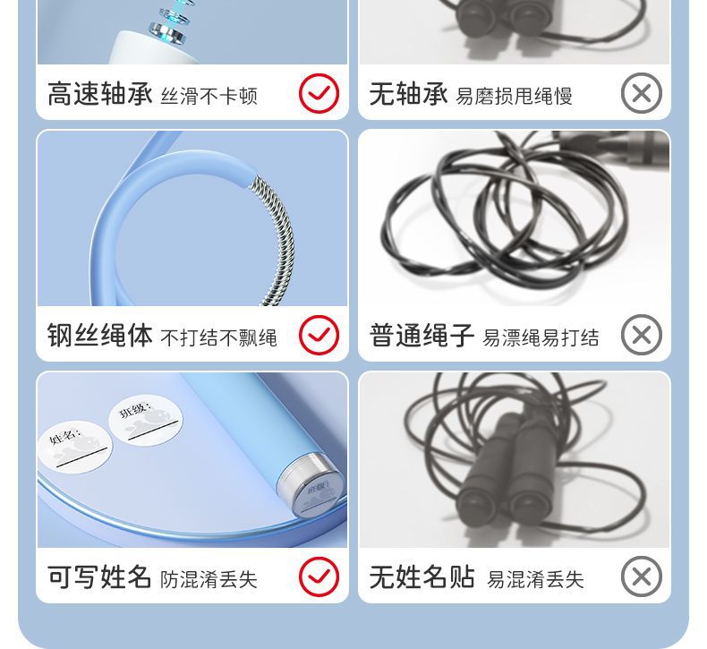 竞速跳绳儿童小学生中考用宝宝健身加粗钢丝绳一年级体测用有氧