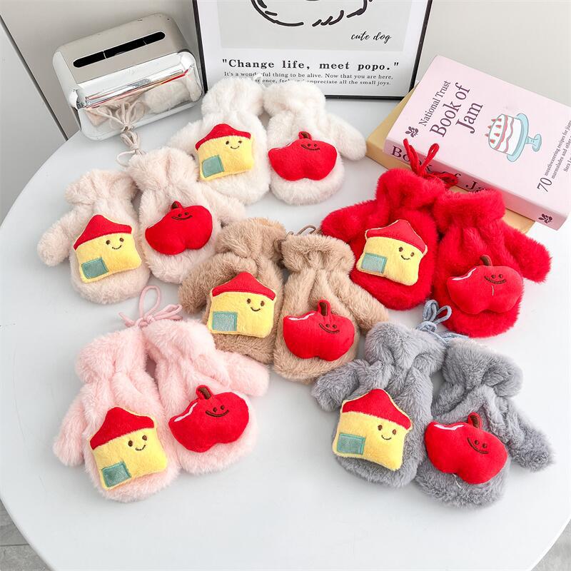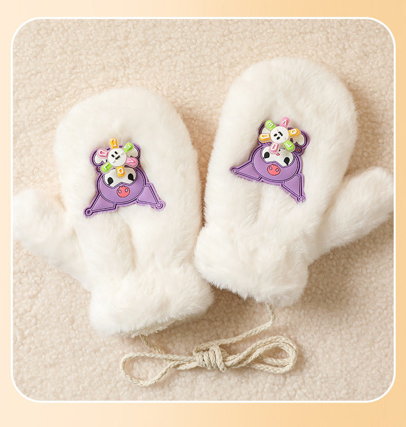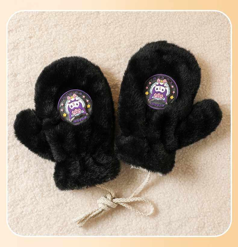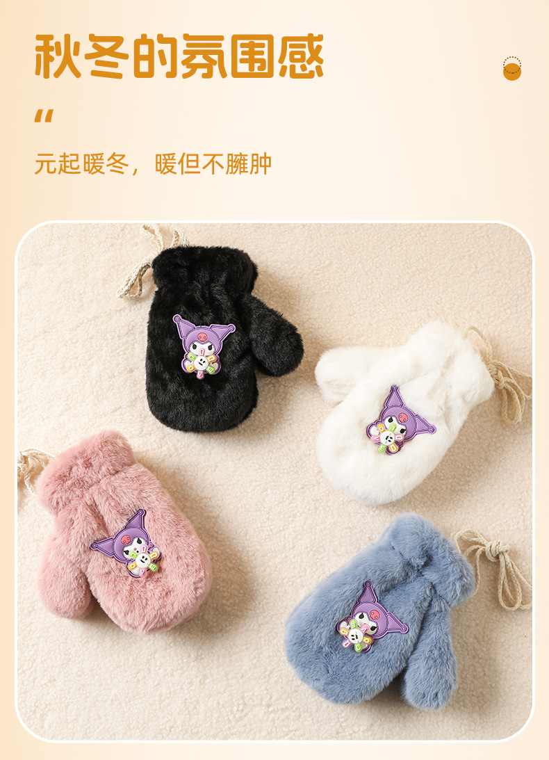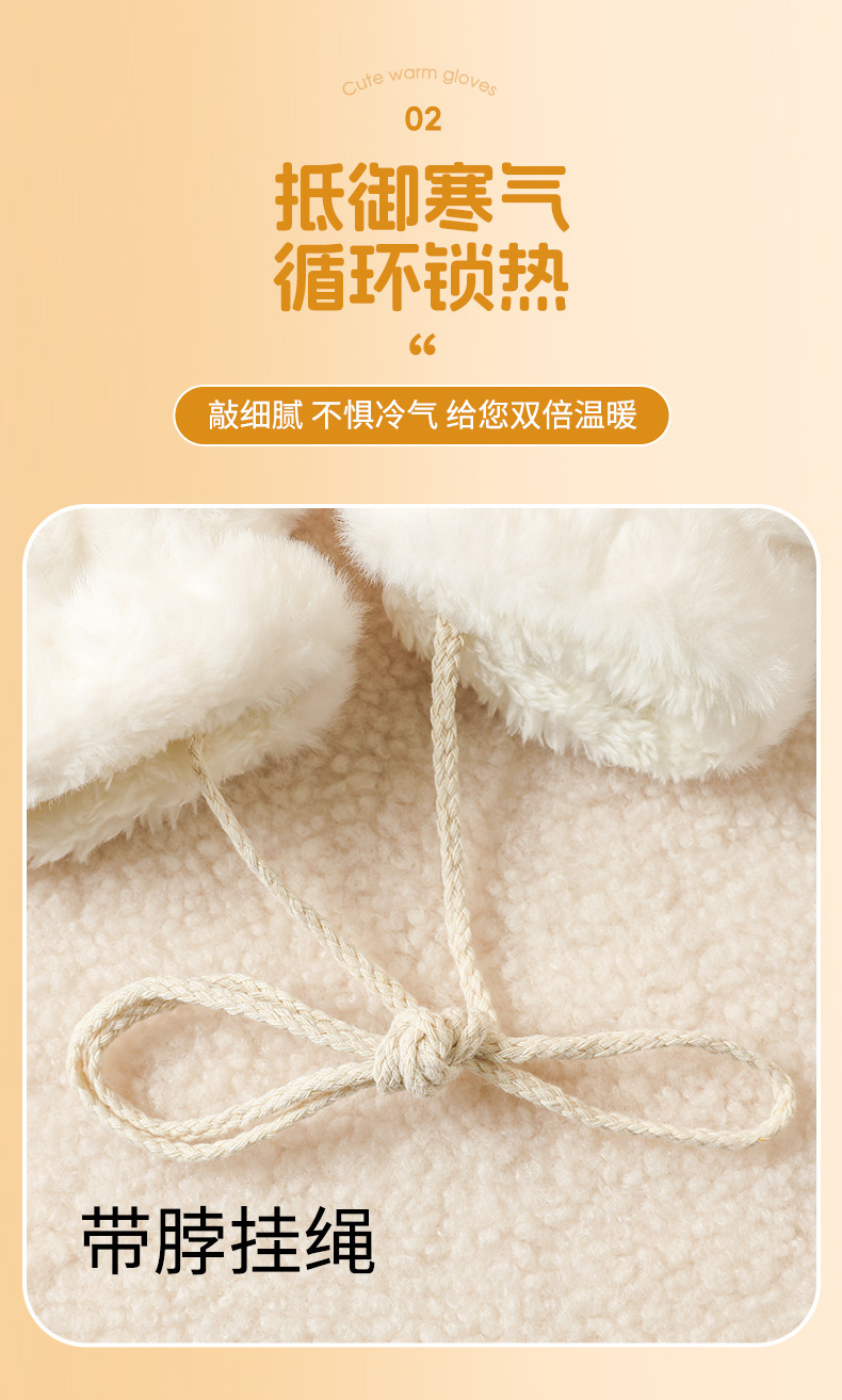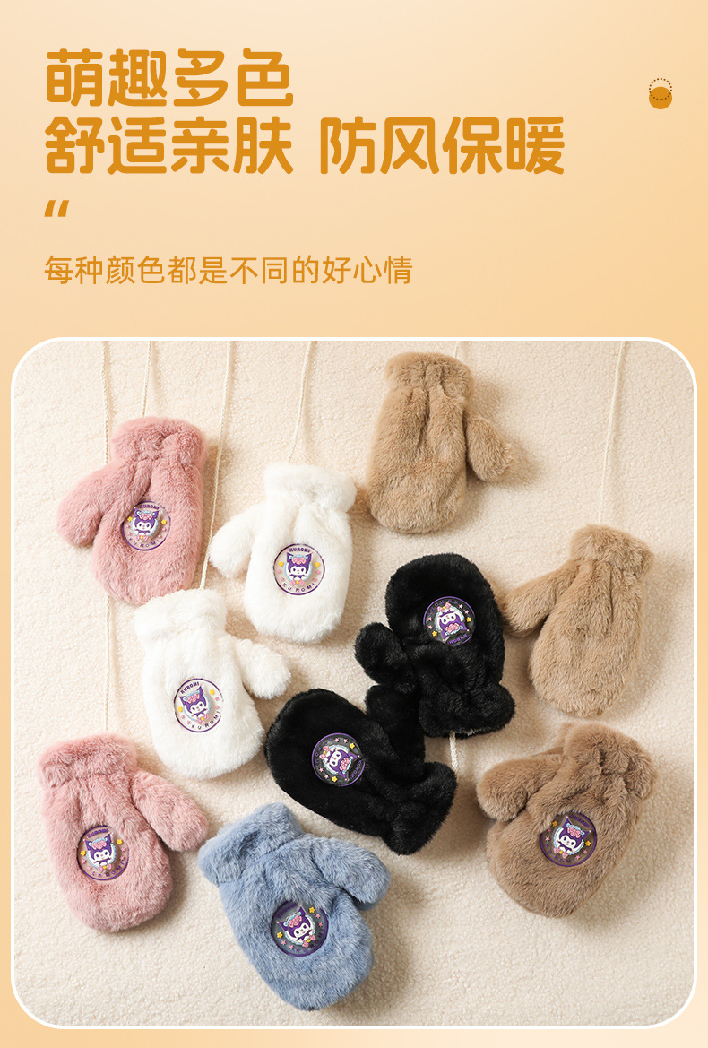 儿童手套秋冬保暖加绒加厚宝宝全包挂脖连指男童女童冬天防寒可爱