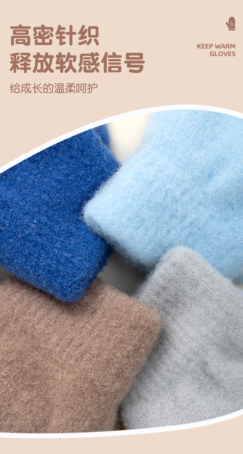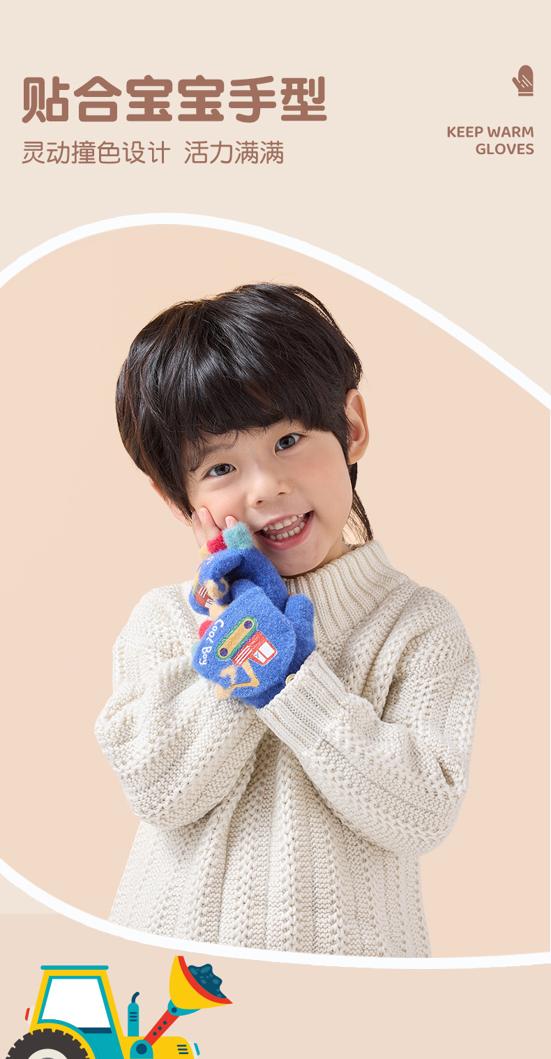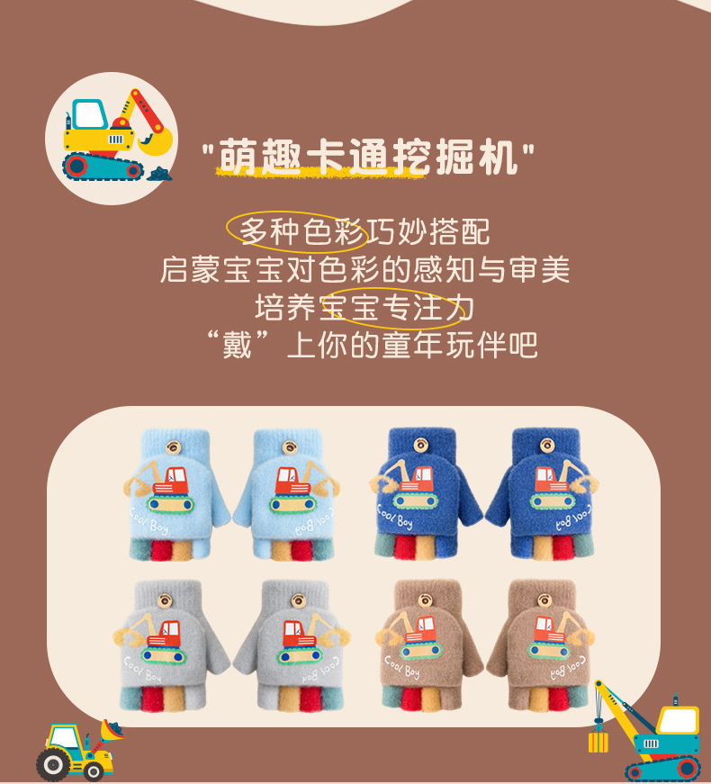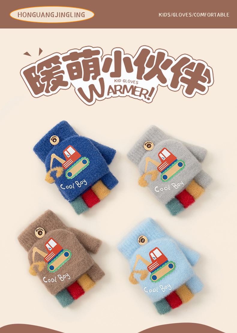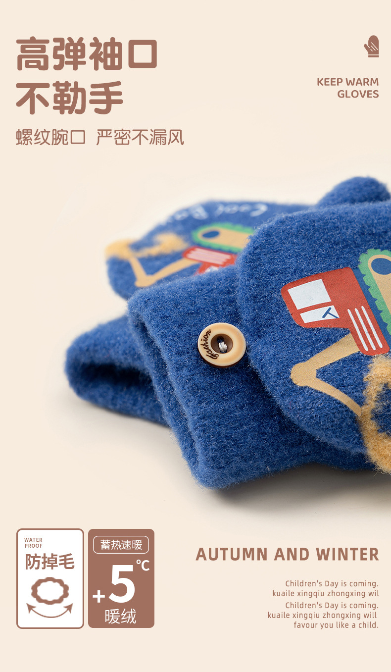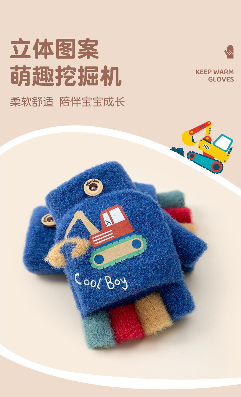 儿童冬季手套男童幼儿半指露指翻盖保暖针织毛线加绒可爱卡通批发