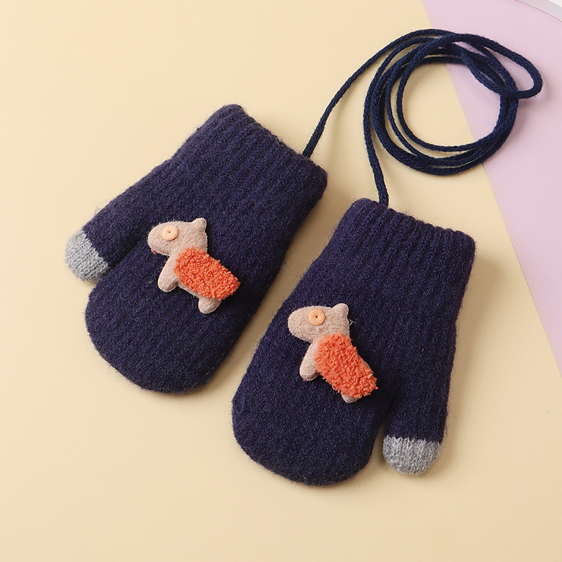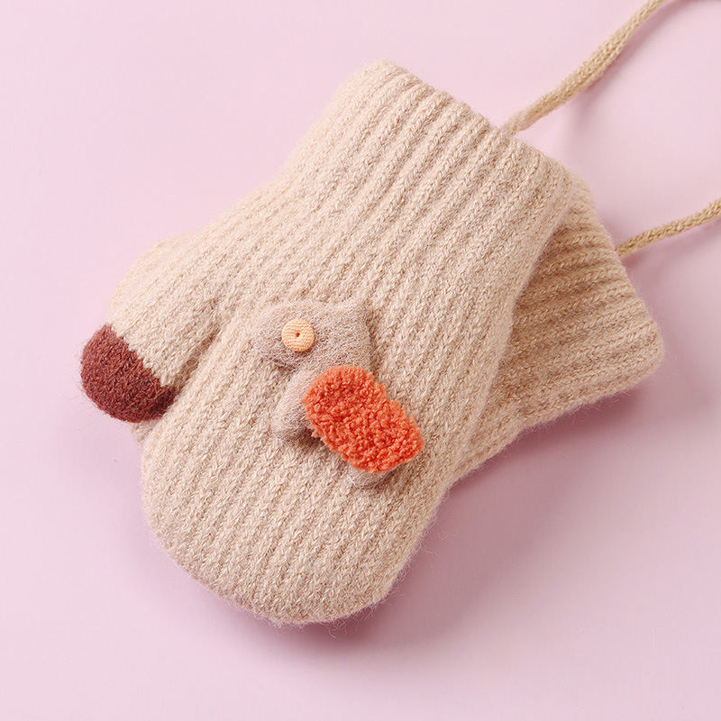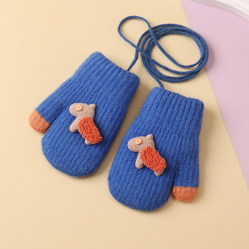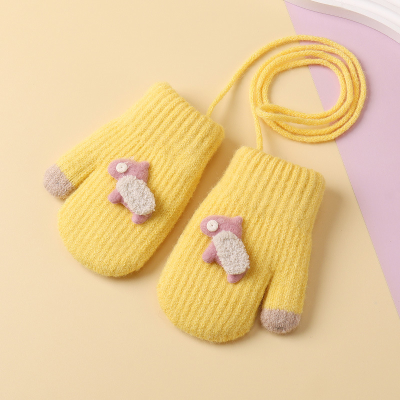 儿童可爱卡通冬季手套女童宝宝加绒保暖手套挂脖连指防寒小童手套