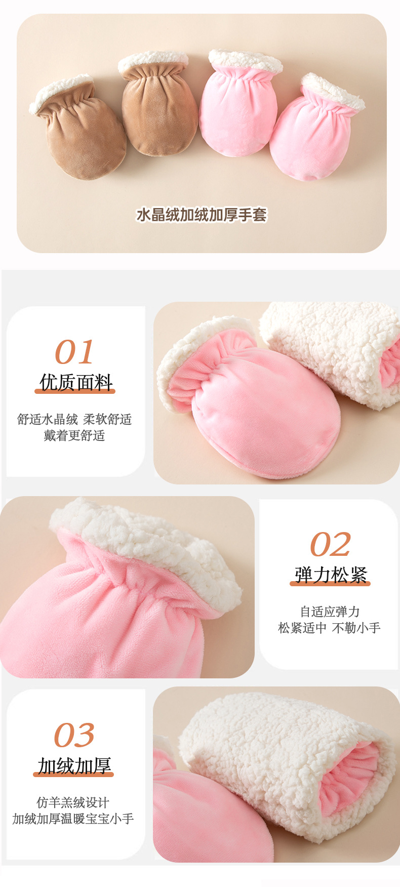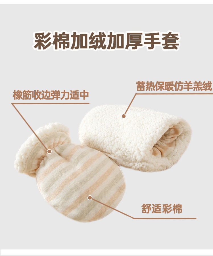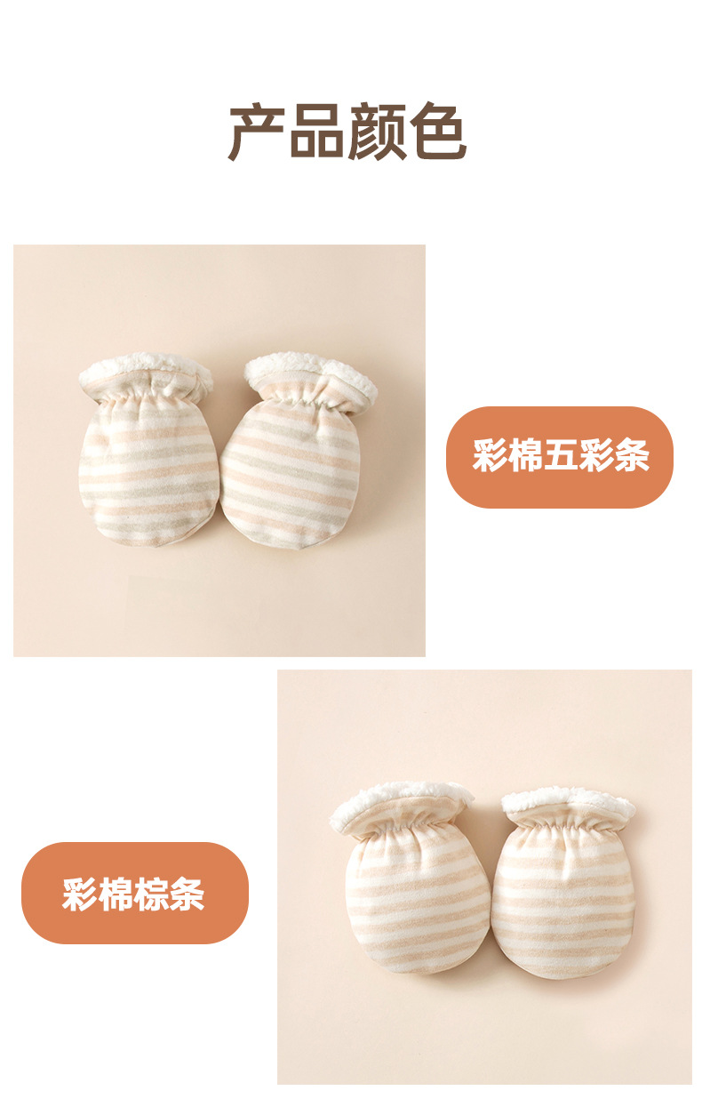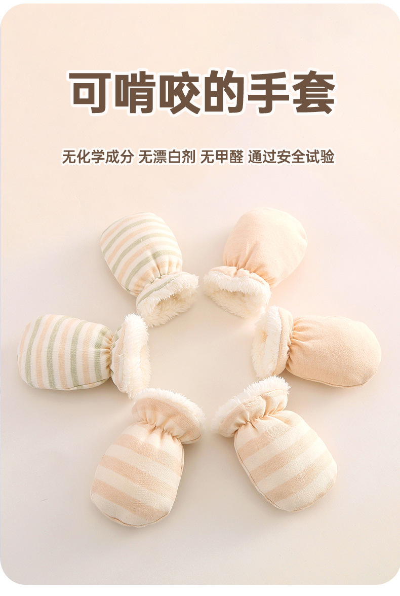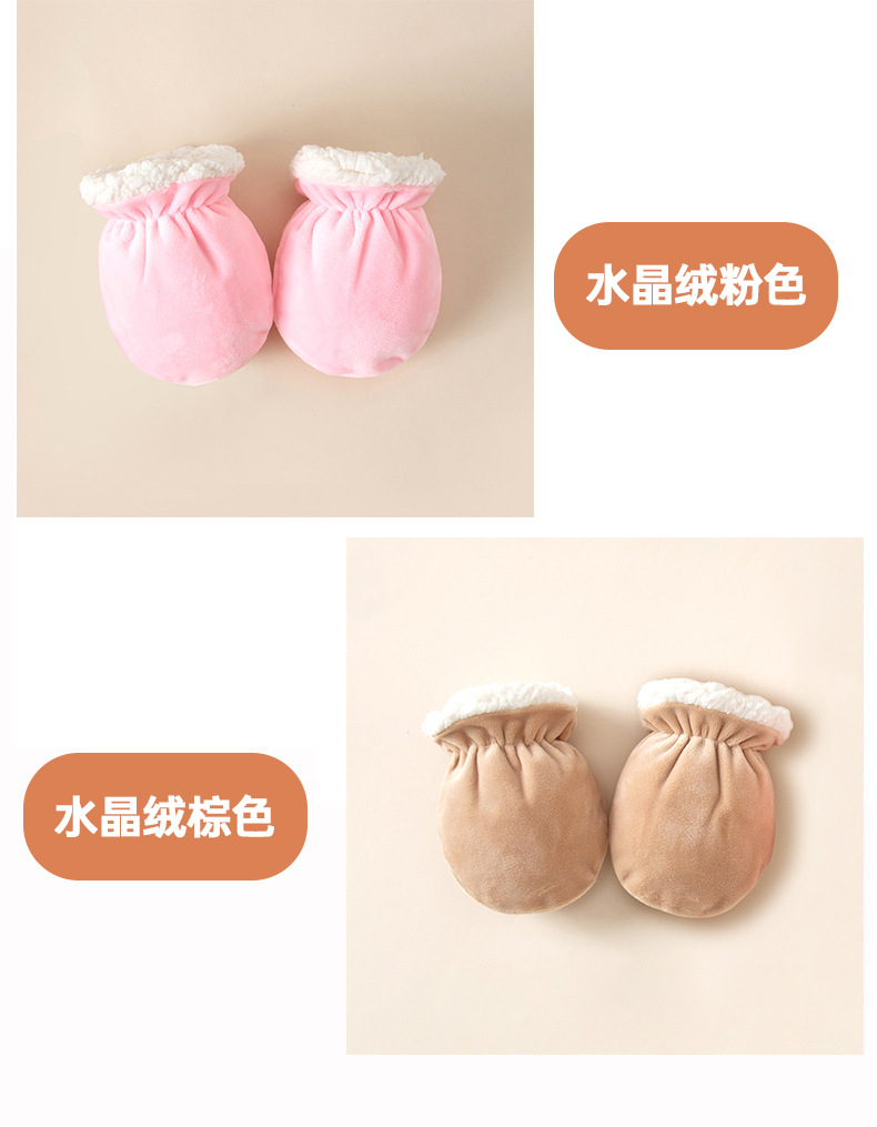 婴儿手套冬季保暖新生儿宝宝 0-12个月防抓脸彩棉可啃咬防吃手套