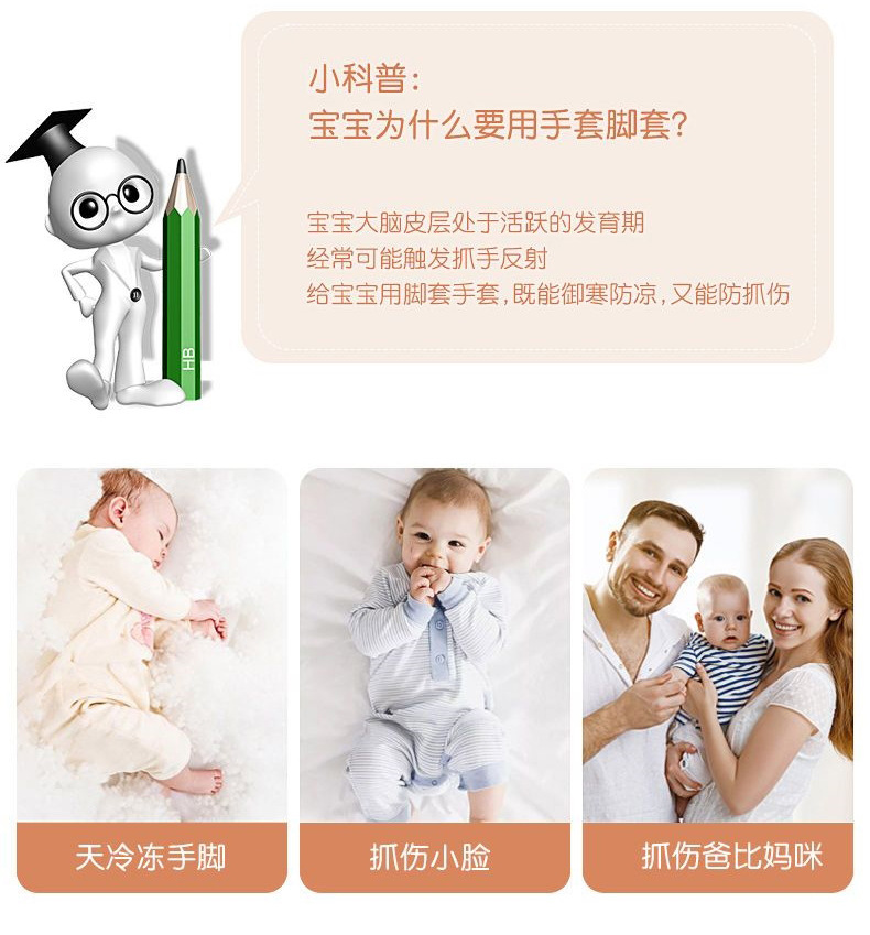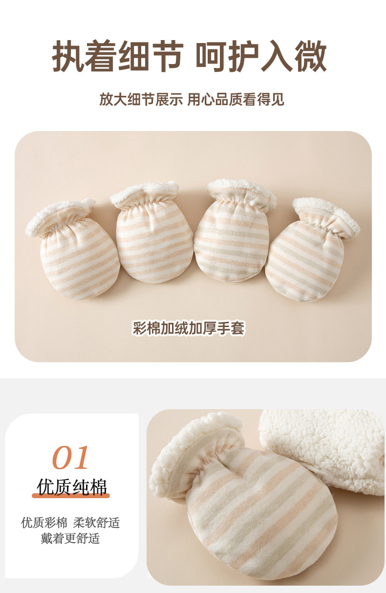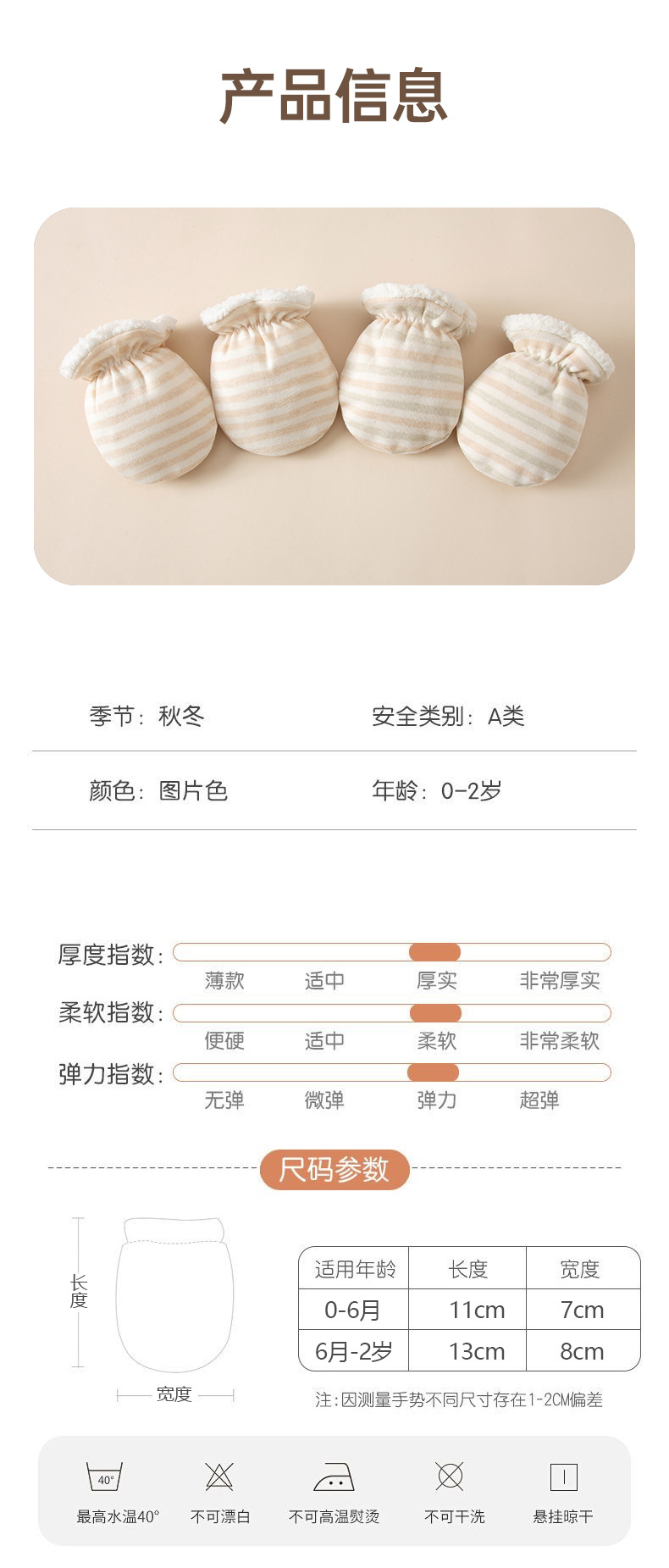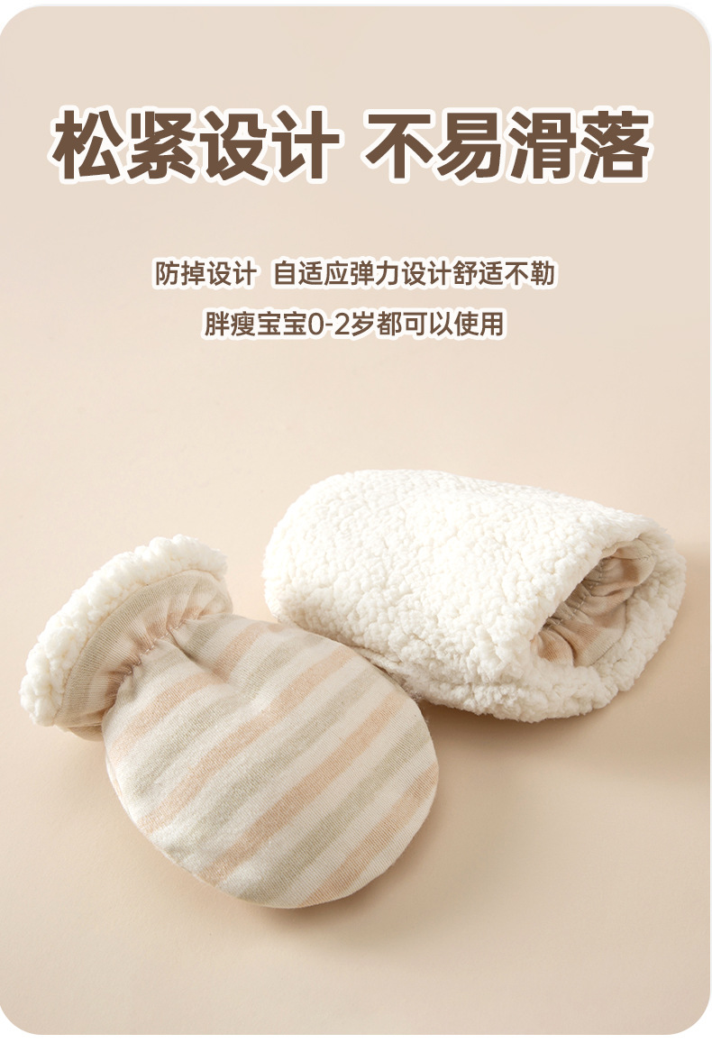 婴儿手套冬季保暖新生儿宝宝 0-12个月防抓脸彩棉可啃咬防吃手套