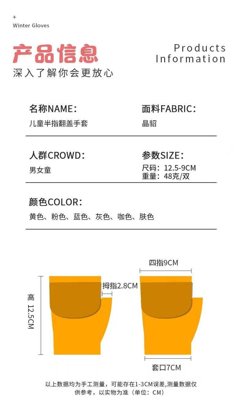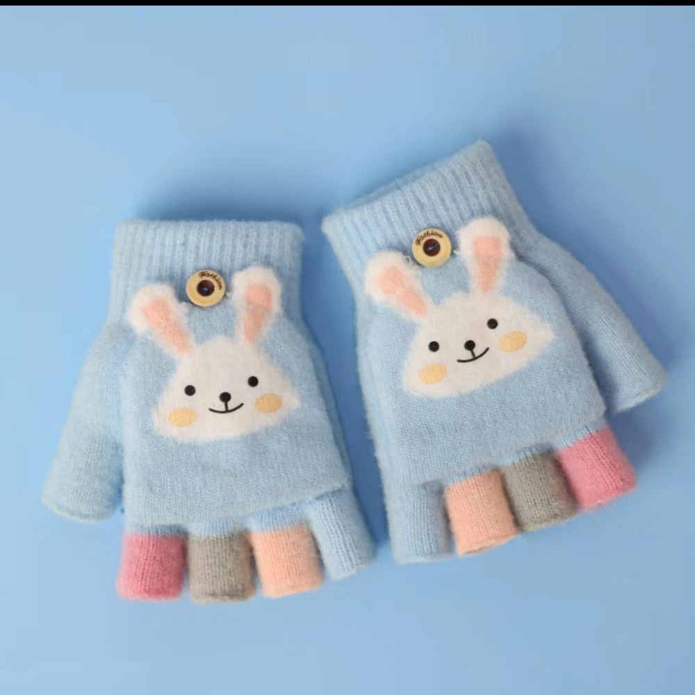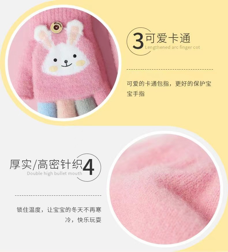 儿童手套秋冬季男女宝宝保暖手套幼儿五指小学生写字半指翻盖手套