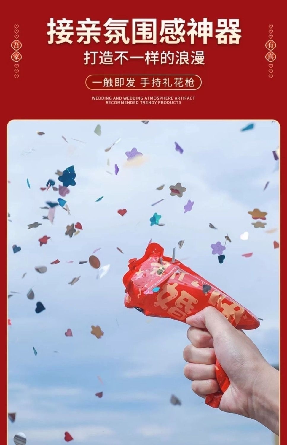 结婚礼炮婚礼手枪充气礼花枪礼筒炮手持喷花枪婚庆用品大全厂家