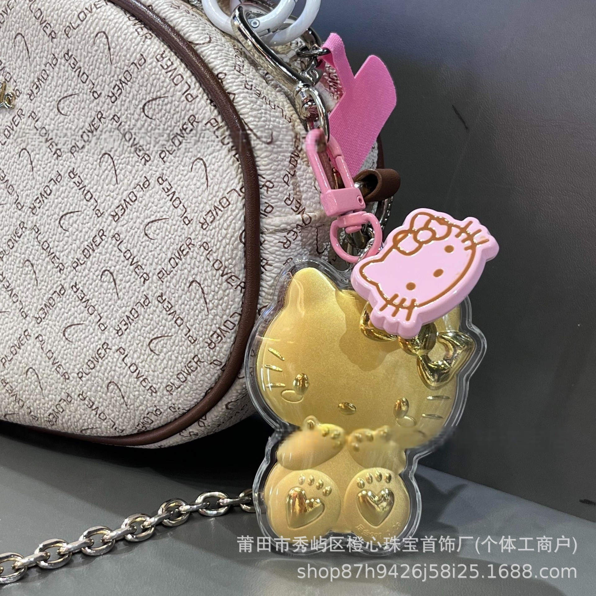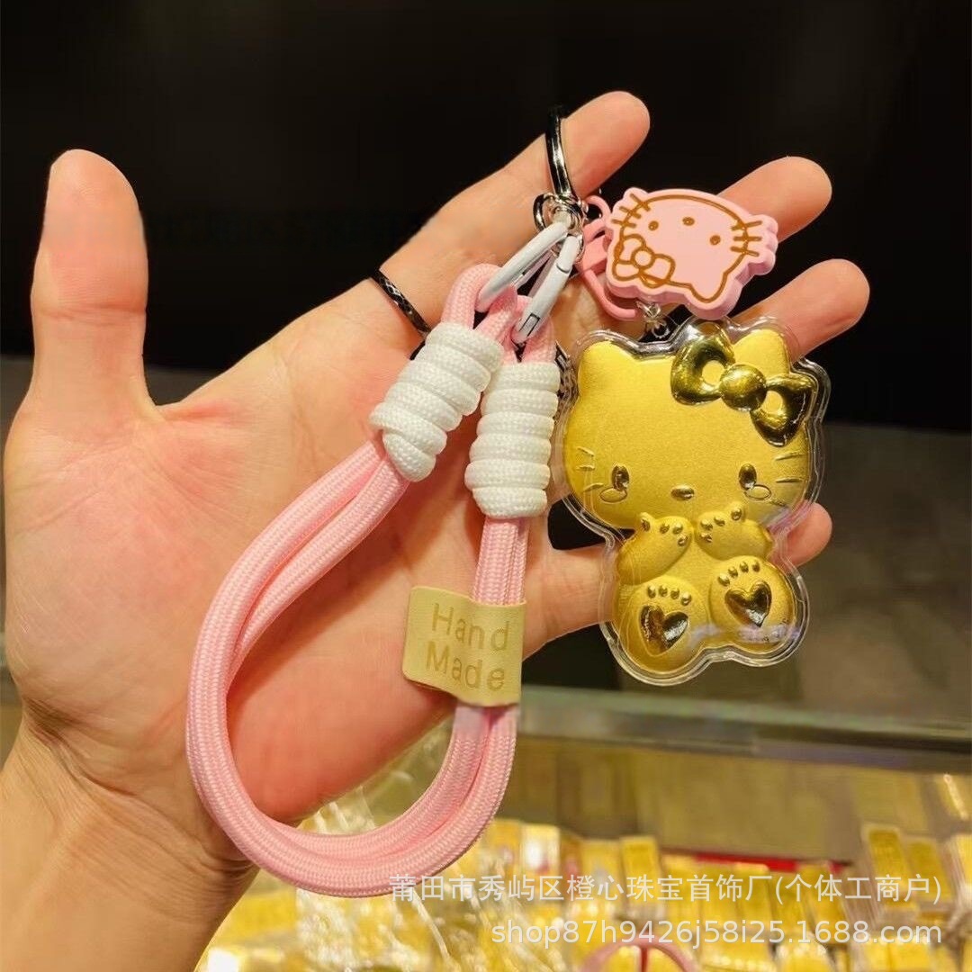 卡通足金999K猫挂件黄金Hello手机挂件钥匙扣手机链包包挂饰Kitty