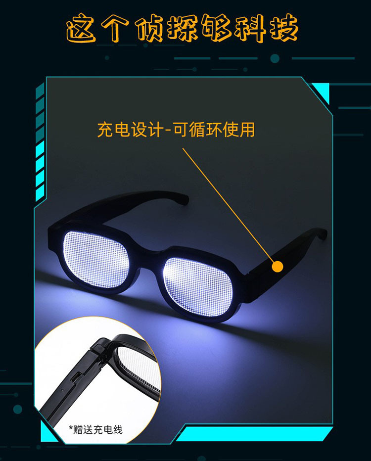 LED科技发光眼镜抖音柯南同款沙雕搞笑个性搞怪舞会表演眼镜礼品
